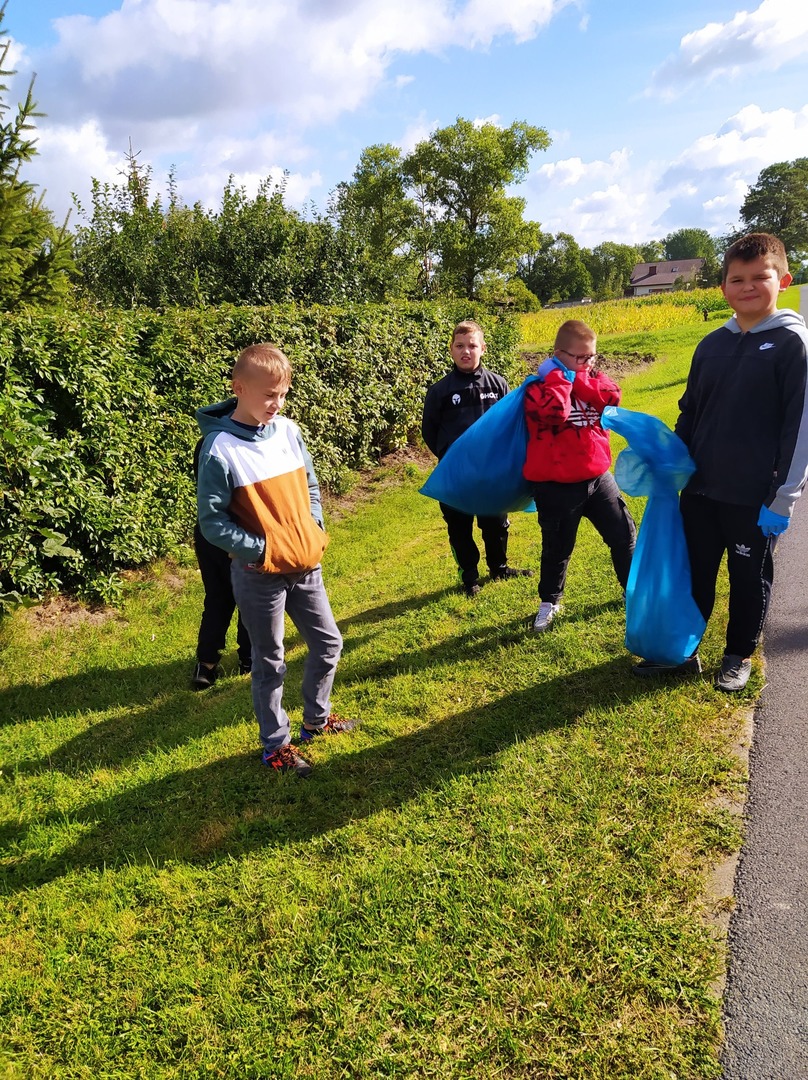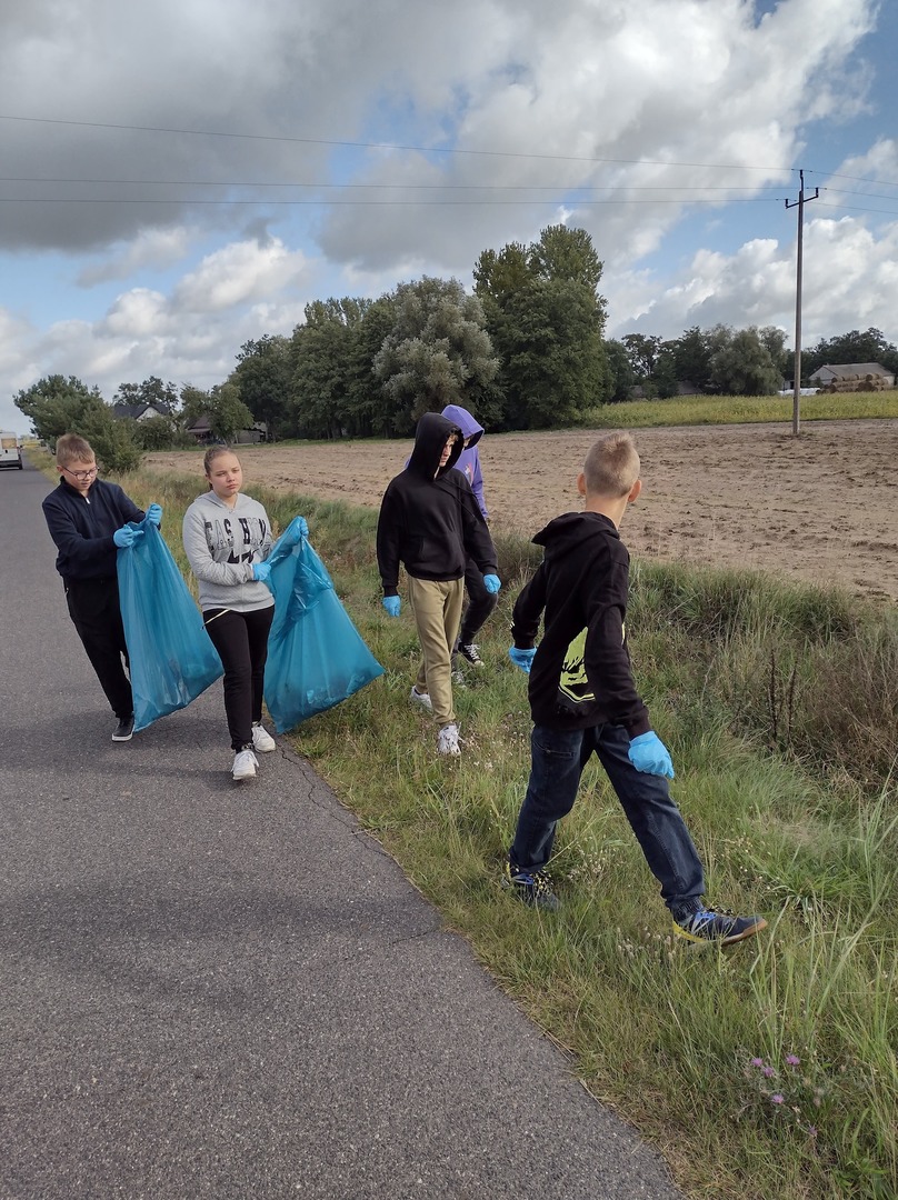 Uczniowie podzieleni na klasy, z workami i w rękawiczkach sprzątali śmieci w wyznaczonych obszarach szkoły i wsi. Najwięcej zebrano opakowań szklanych, które stanowią nie tylko niechlubny element naszego krajobrazu, ale zagrażają człowiekowi, zwierzętom i roślinności. Prowadzona jest segregacja odpadów, za którą płacimy. Segregujemy śmieci: papier, plastik, szkło. Dlaczego więc śmieci te znajdujemy przy drodze, w rowie, w lesie, na polu? Ochrona naszego środowiska zaczyna się w koszu na śmieci i należy o tym pamiętać.