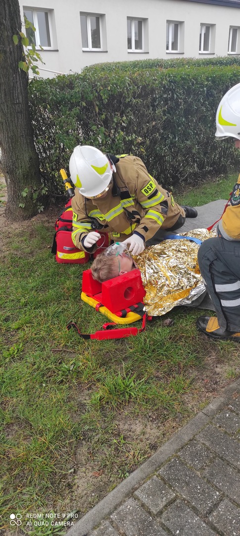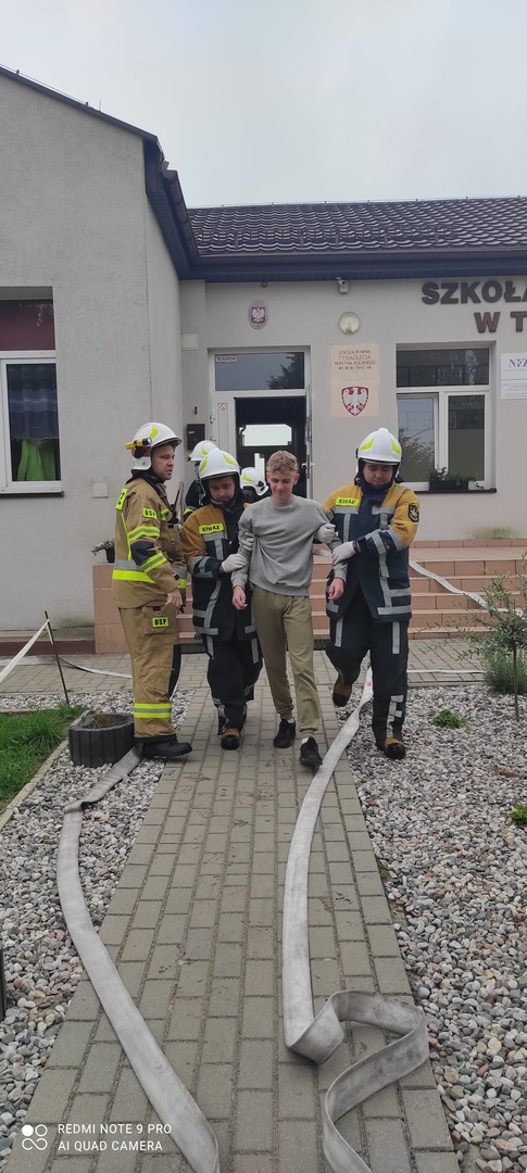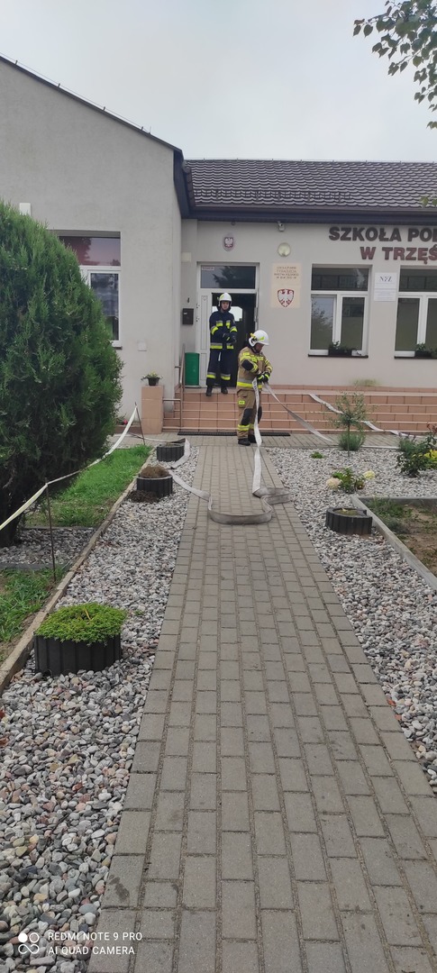 W związku z powyższym 27 września 2022 r. na terenie Szkoły Podstawowej w Trzęśniewie została przeprowadzona ewakuacja z próbnym alarmem przeciwpożarowym. Po wyprowadzeniu wszystkich uczniów i pracowników z budynku szkolnego zgodnie z drogą ewakuacyjną. Została wezwana straż pożarna. W próbnej akcji wzięły udział dwie jednostki straży pożarnej: OSP Trzęśniew i OSP Gąsiorów. Nastąpiło poszukiwanie jednej osoby „pozostającej w miejscu zagrożenia”. Chłopiec został wyprowadzony ze szkoły, ułożony na noszach oraz opatrzony. Działania zakończyły się instruktażem dotyczącym postępowania w sytuacjach zagrożenia. przeprowadzonym przez pracownika Powiatowej Państwowej Straży Pożarnej w Kole, pana Radosława Rossę. Bardzo dziękujemy OSP Trzęśniew i OSP Gąsiorów za udział w akcji.