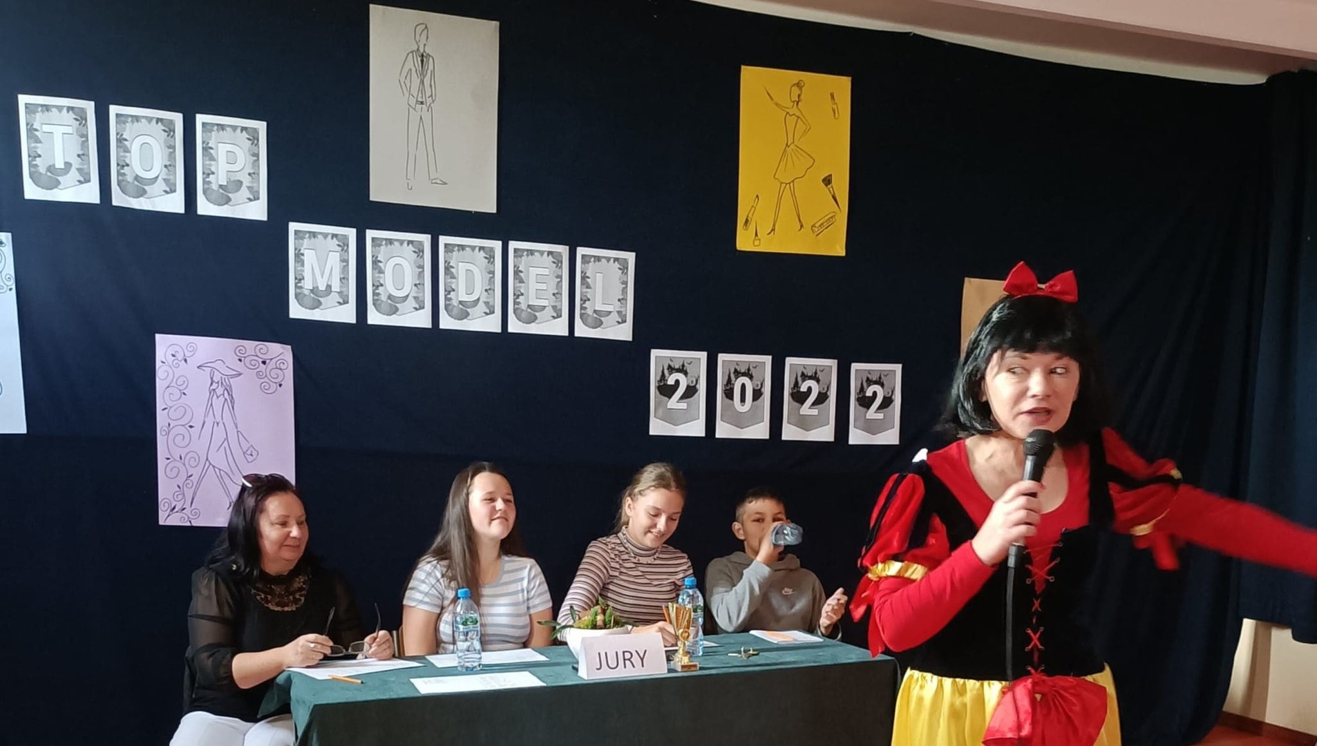 28 października 2022r - dzięki kreatywności, dobrej organizacji uczniów klasy VIII – Mateusza Kołodzieja, Mariki Cichej, Natalii Rybickiej oraz Oliwii Krych w naszej szkole odbył się po raz pierwszy TOP MODEL. Na wybiegu zawitały różne postacie z bajek i baśni: Księżniczki, Czarodzieje, Krasnale i wiele, wiele innych. Była też Cyganka, która chętnie wróżyła z kart. Na uczestników uroczystości czekały nagrody i wyróżnienia. Wszyscy zebrani bawili się świetnie.