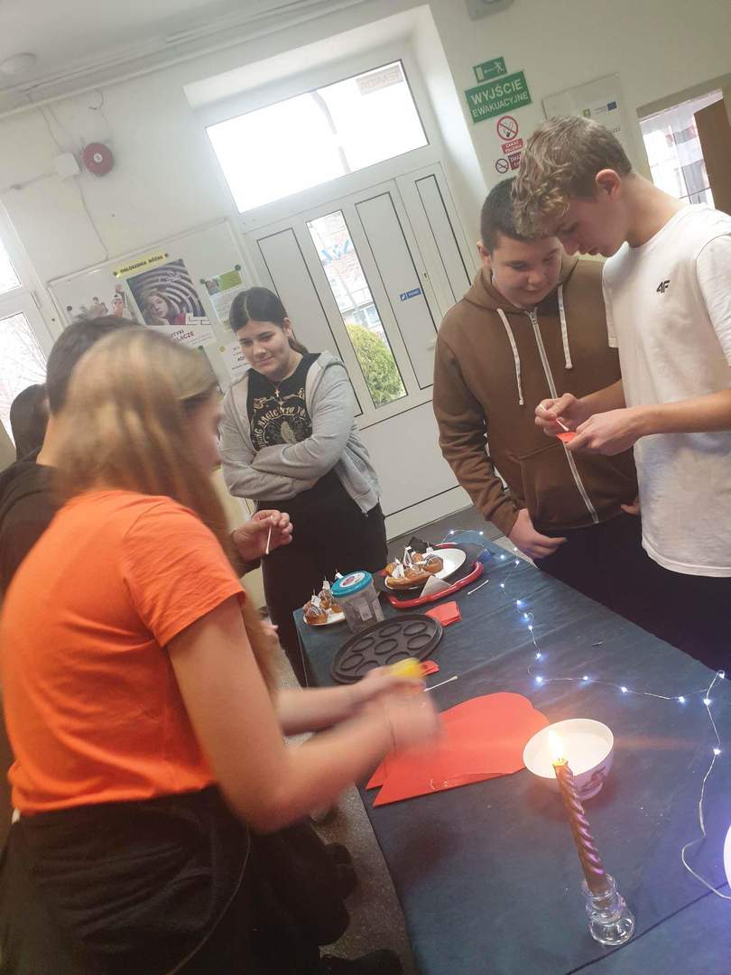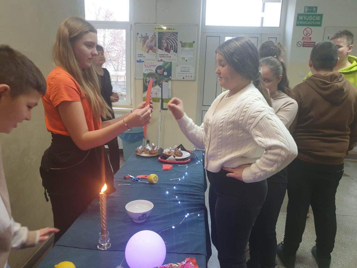 Andrzejki to taki dzień w roku, kiedy możemy oderwać się od codzienności oraz zanurzyć się w sferze wróżb i prawdziwej magii. Z tej okazji Samorząd Uczniowski zorganizował w naszej szkole zabawę andrzejkową. Uczniowie mogli dowiedzieć się, co czeka ich w przyszłości: szczęście, pieniądze, czy może jakaś inna niespodzianka. Każdy, kto chcial uchylić rąbka zasłony spowijającej przyszłość mógł również zakupić babeczkę z wróżbą. Wszyscy świetnie się bawili podczas zabaw z przewidywaniem przyszłości.