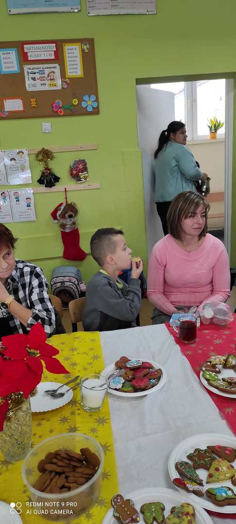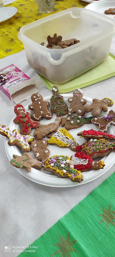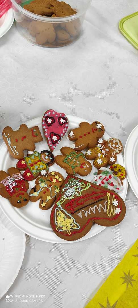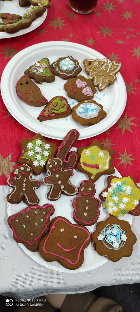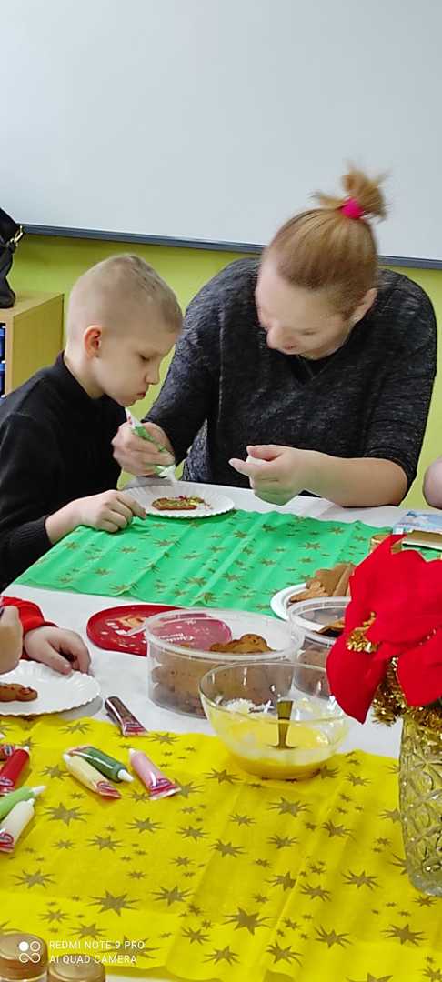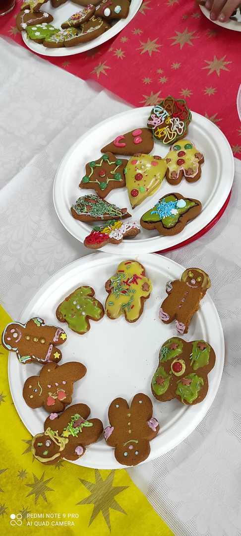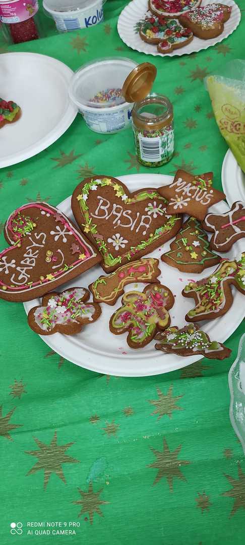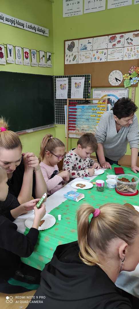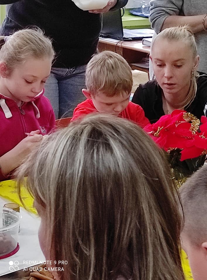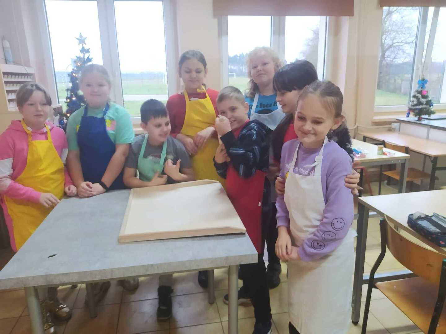 Uczniowie klasy 0, I, II i III rozpoczęli przygotowania do świąt na słodko. Już 13 grudnia wspólnie ze swoimi mamami i babciami dekorowali pierniczki. Wcześniej mamy i babcie upiekły je. Dzieci z zapałem i radością ozdabiały choinki, gwiazdy, serduszka i inne kształty. Do ozdoby pierniczków użyły kolorowego lukru i kolorowych posypek, słuchając świątecznych piosenek. Uczniowie klasy IV samodzielnie wykonali pierniki, wałkowali ciasto, wykrawali z ciasta różne figurki. Po upieczeniu dekorowali pierniki, a w szkole unosił się korzenny zapach, zapach nadchodzących świąt.