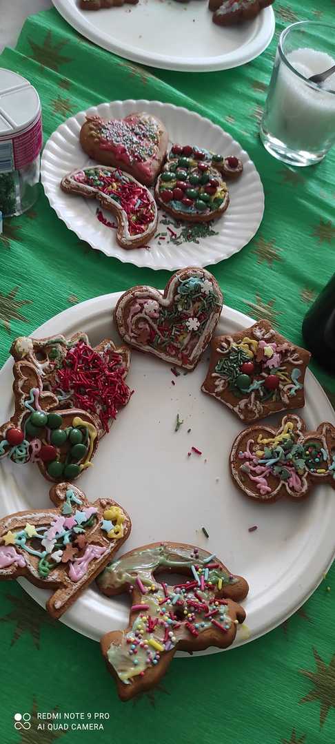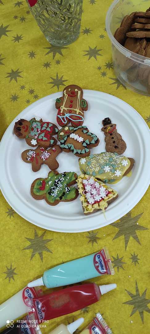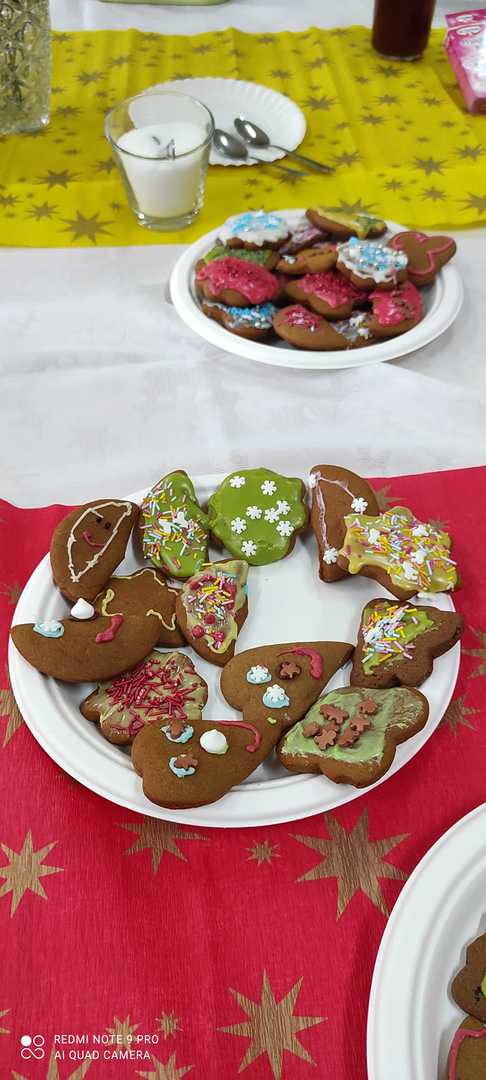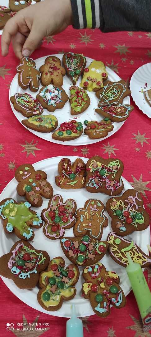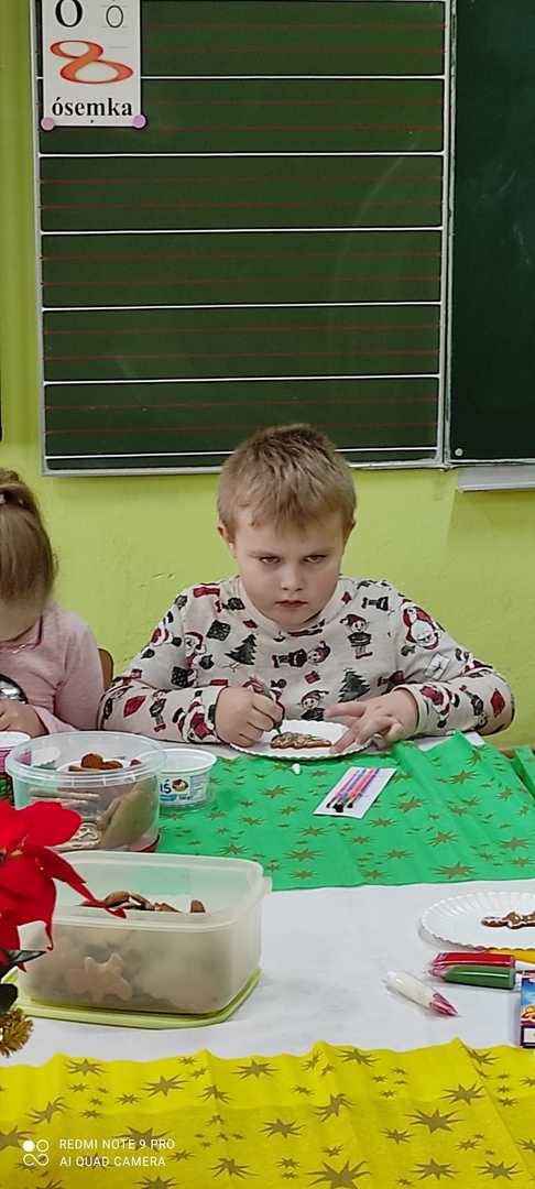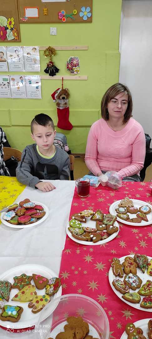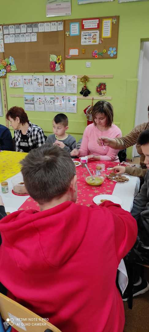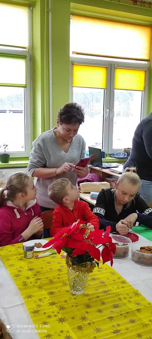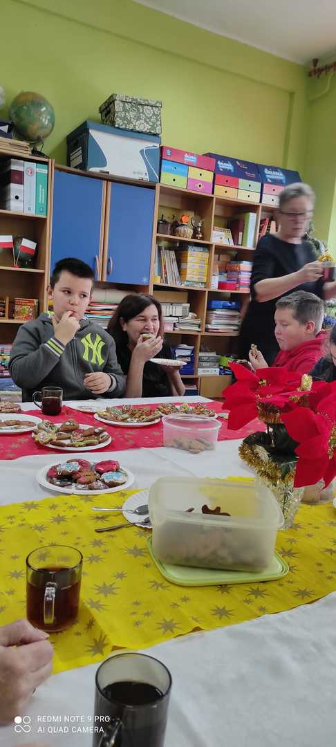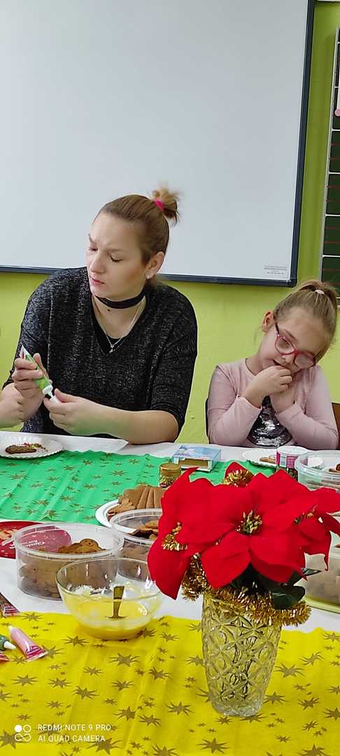 Uczniowie klasy 0, I, II i III rozpoczęli przygotowania do świąt na słodko. Już 13 grudnia wspólnie ze swoimi mamami i babciami dekorowali pierniczki. Wcześniej mamy i babcie upiekły je. Dzieci z zapałem i radością ozdabiały choinki, gwiazdy, serduszka i inne kształty. Do ozdoby pierniczków użyły kolorowego lukru i kolorowych posypek, słuchając świątecznych piosenek. Uczniowie klasy IV samodzielnie wykonali pierniki, wałkowali ciasto, wykrawali z ciasta różne figurki. Po upieczeniu dekorowali pierniki, a w szkole unosił się korzenny zapach, zapach nadchodzących świąt.
