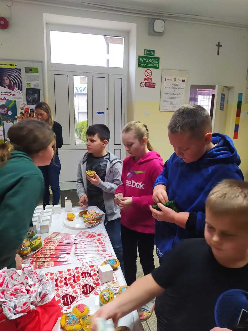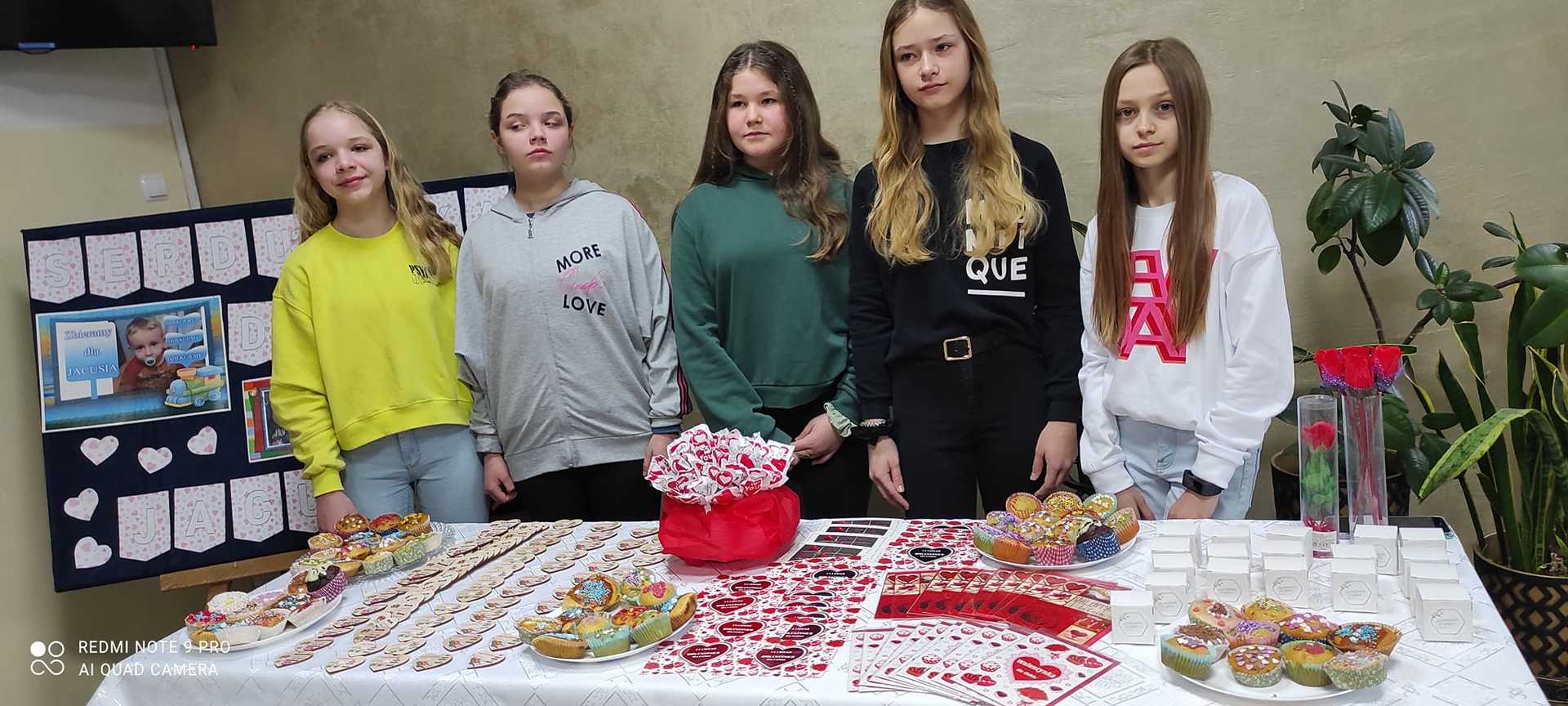 Szkolny Klub Wolontariatu zorganizował 18 stycznia kolejną akcję charytatywną pod hasłem „Serduszka dla Jacusia". Można było na niej zakupić magnesy na Dzień Babci i Dziadka”, kartki i lizaki walentynkowe, róże z płatków mydlanych, długopisy w kształcie róży i babeczki. Wolontariusze zebrali łącznie kwotę 800 zł. Pieniądze zostaną przekazane dla Jacusia Wróblewskiego na dalszą rehabilitację.
