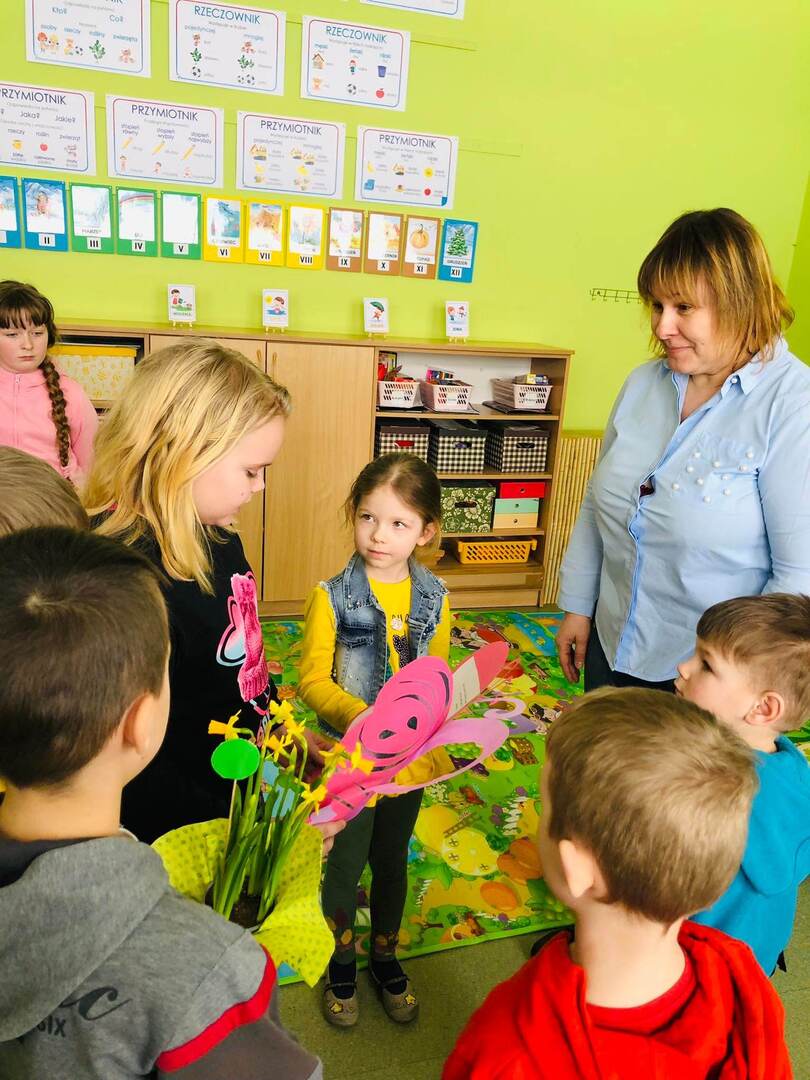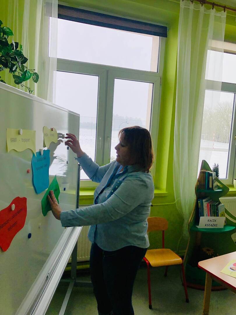 Czym jest teatrzyk KAMISHIBAI ? Odpowiedzi na to pytanie udzieliła naszym uczniom Pani Anna Zawadzka Dyrektor Gminnej Biblioteki Publicznej w Kościelcu wraz z Filią w Dobrowie. Pani Ania wyjaśniła jak tworzy się teatrzyk Kamishibai. Jest to technika opowiadania, czytania wywodząca się z Japonii, wykorzystująca kartonowe plansze z obrazkami i tekstem (37x27 cm) oraz drewnianą lub kartonową skrzynkę, – na wzór parawanu z teatrzyków marionetkowych - w której przedstawiane są kolejne fragmenty historii, bajki, opowiadania. Wykorzystując tę technikę, Pani Ania przeczytała bajkę J.Ch. Andersena "Brzydkie kaczątko". Uczniowie wysłuchali ją z ciekawością przenosząc się w świat sztuki japońskiej. Spotkanie odbyło się 9 marca, było związane z projektem „CZYTMA Z KLASĄ, lekturki spod chmurki”. Dziękujemy za sympatyczne spotkanie.
