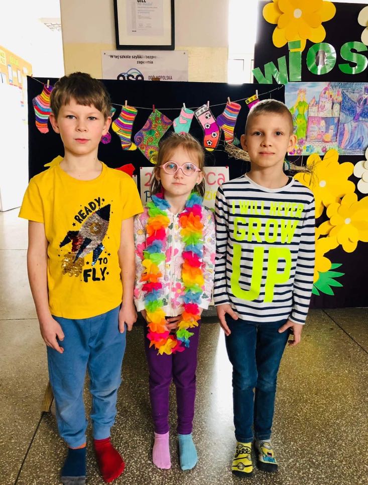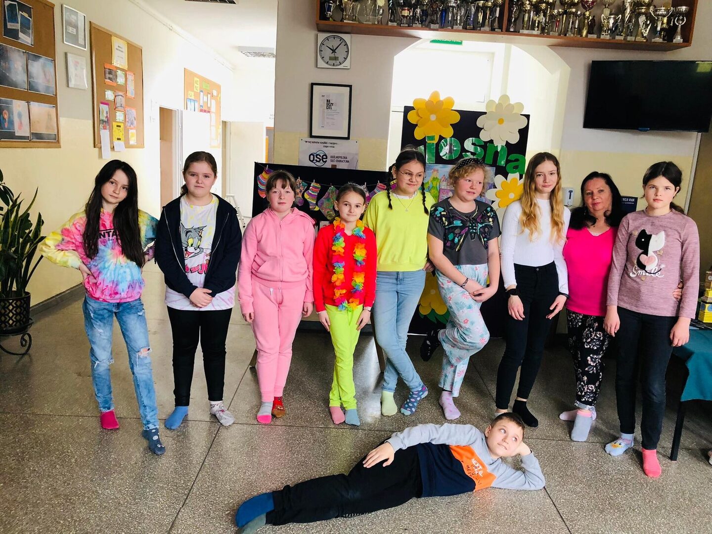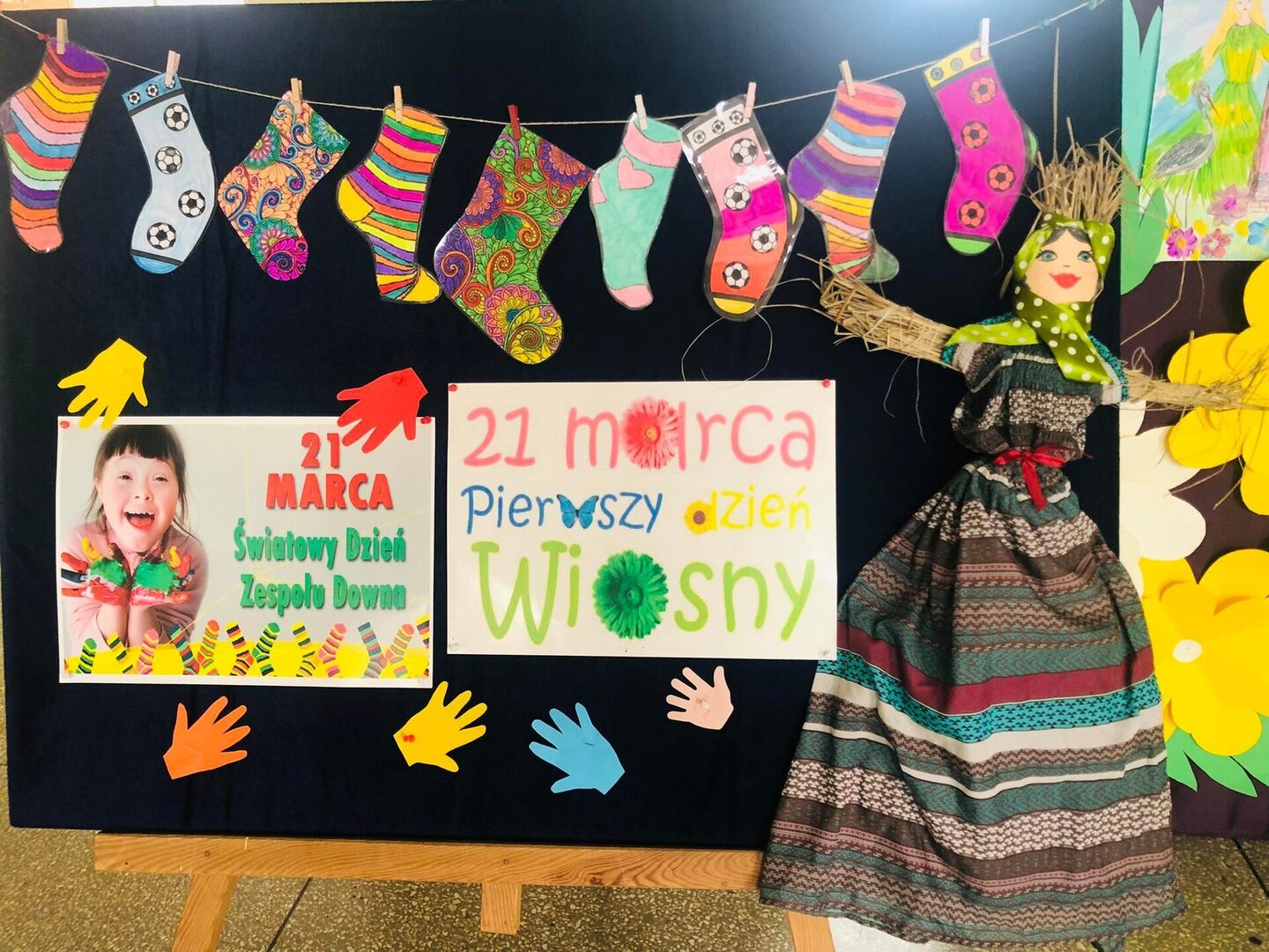 Wiosna to najpiękniejsza pora roku, dlatego PIERWSZY DZIEŃ WIOSNY jest bardzo radosny i wyczekiwany przez uczniów naszej szkoły. 21 marca wspólnie pożegnaliśmy zimę i powitaliśmy upragnioną wiosnę. W tym dniu również obchodzimy Dzień Kolorowej Skarpetki, czyli Światowy Dzień Osób z Zespołem Downa, dlatego uczniowie przyszli ubrani w różnokolorowe skarpety. Tego dnia w szkole obowiązywały kolorowe wiosenne stroje, swoje tornistry i plecaki zamieniliśmy na koszyki, kosze, walizki , worki itp. Uczniowie przynieśli wykonane w grupach i indywidualnie Marzanny, które są symbolem odchodzącej zimy. Cała społeczność szkolna zgromadziła się w salce gimnastycznej, gdzie odbyły się różne konkurencje sportowe i zabawy takie jak: skoki żabek do stawu, rzuty jajkami do koszyka, łowienie rybek. Były również rebusy, zagadki, odgadywanie odgłosów zwierząt, wyszukiwanie w tekście nazw kwiatów wiosennych. Wszystkie zabawy były przeplatane występami muzycznym naszych uczniów. Na koniec pożegnaliśmy zimę paląc przyniesione Marzanny w ogrodzie szkolnym.