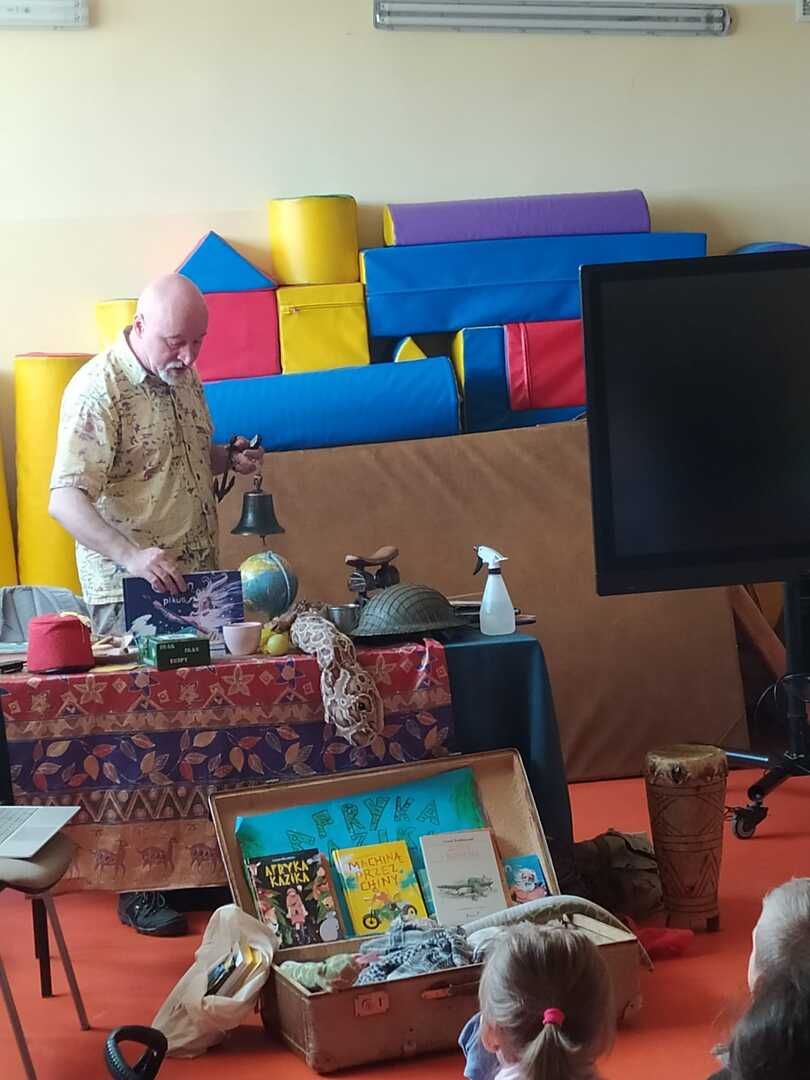 24 kwietnia 2023 roku w naszej szkole odbyło się fantastyczne, pełne ciekawych opowieści spotkanie z autorem książek dla dzieci i młodzieży panem Łukaszem Wierzbickim. Pisarz w swoich książkach opisuje przygody, jakie spotkały polskich podróżników wędrujących po całym świecie. Dzięki ekspresji w opowiadaniu i małych niespodzianek, mogliśmy przeżyć wspaniałe chwile, które na długo zapadną w naszej pamięci. Spotkanie odbyło się dzięki pani Annie Zawadzkiej, dyrektorowi Gminnej Biblioteki Publicznej w Kościelcu z Filią w Dobrowie. Serdecznie dziękujemy.