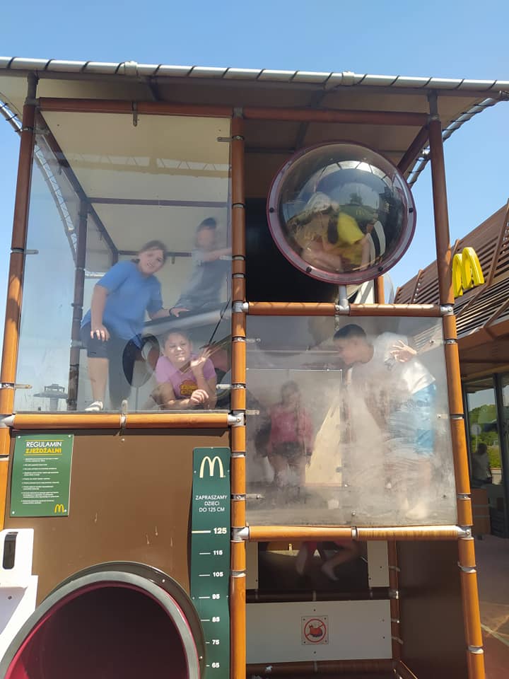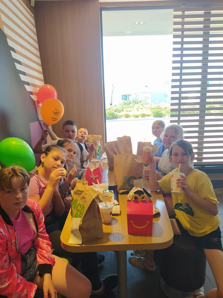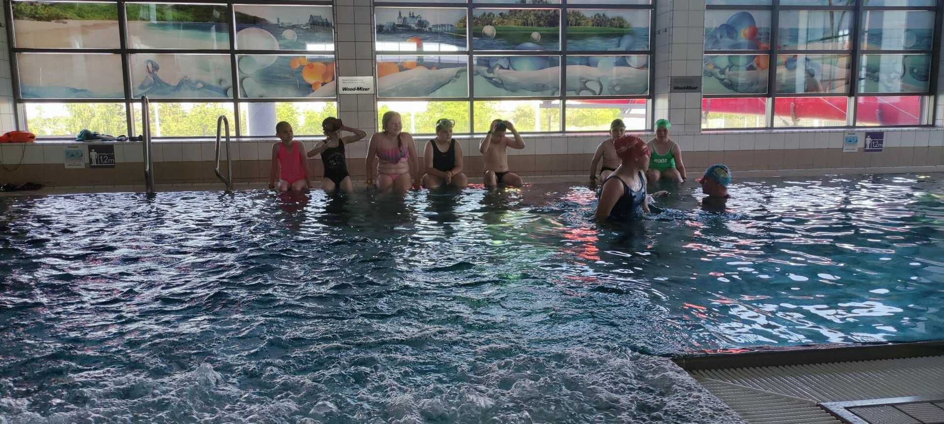 W dniu 1 czerwca uczniowie klasy czwartej uczestniczyli w wyjeździe do Pływalni Miejskie w Kole. Wycieczka była prezentem od rodziców na Dzień Dziecka. Zajęcia na basenie poprowadził pan Michał, który w bardzo przystępny sposób pokazał jak pokonać strach i opór przed wodą. Na początku przeprowadził krótką rozgrzewkę, następnie były różne gry i zabawy w wodzie oraz praktyczne wskazówki dotyczące pływania. Uczniowie skorzystali również ze zjeżdżalni i jaccusi. Dzieciom bardzo spodobała się taka forma spędzania wolnego czasu. Było dużo śmiechu i zabawy. Po wodnym szaleństwie uczniowie udali się na posiłek do restauracji McDonald’s. Zmęczeni, ale zrelaksowani i zadowoleni wrócili do domów.