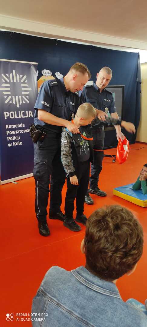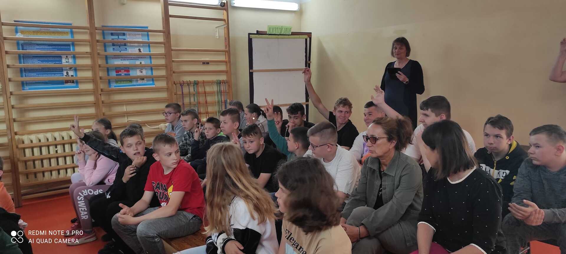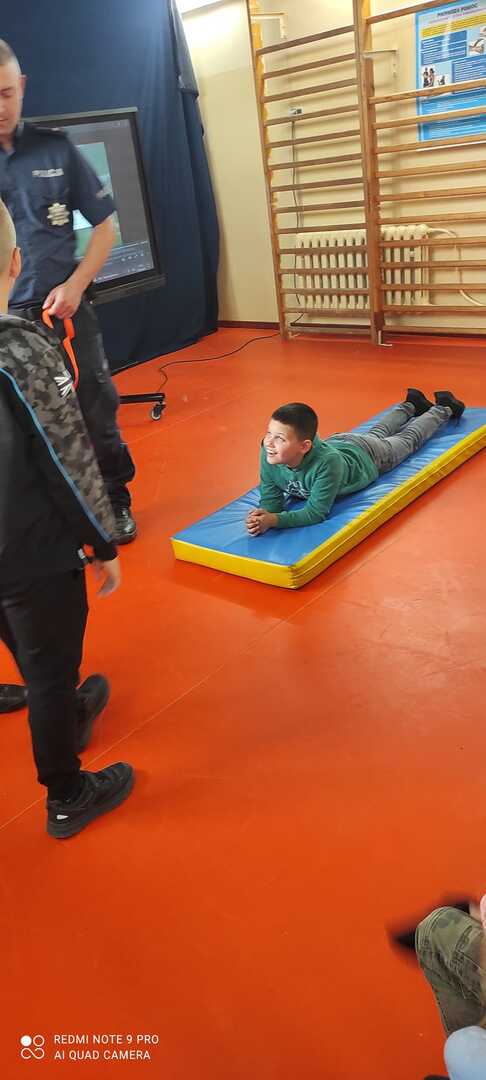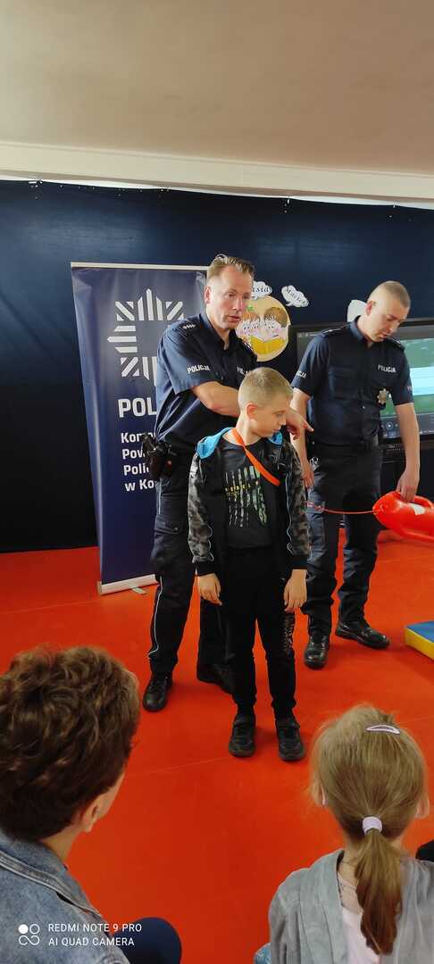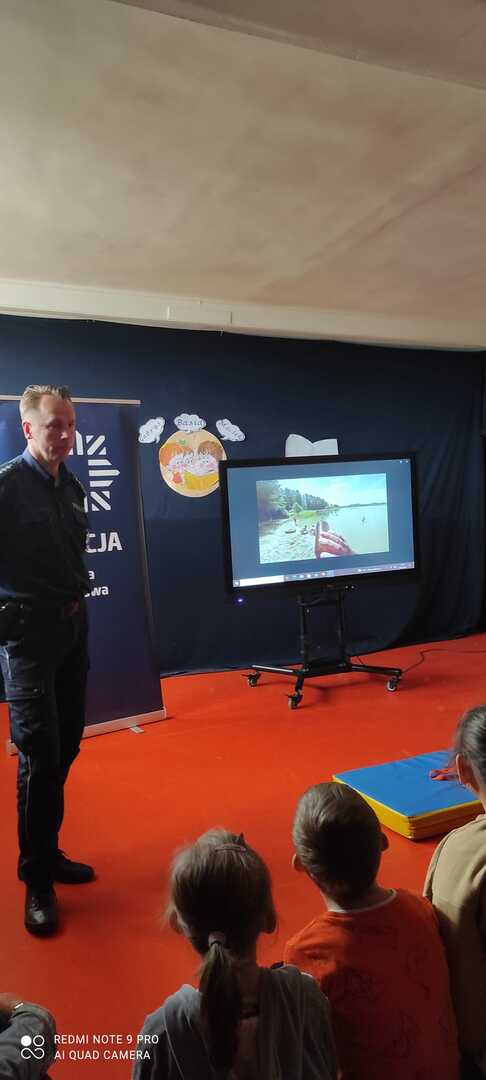 Zbliżają się wakacje, dlatego naszą szkołę dzisiaj odwiedzili policjanci Powiatowej Komendy Policji w Kole, aby przypomnieć uczniom zasady bezpiecznego zachowania się podczas letniego wypoczynku. Prowadzący spotkanie policjant, odpowiedzialny za prewencję, przypomniał dzieciom zasady bezpiecznych zabaw nad wodą, w tym zakazie kąpieli na niestrzeżonych akwenach wodnych lub bez opieki osób dorosłych. Opowiedział, jak należy zachowywać się podczas wypoczynku w górach oraz jak się bronić przed niebezpiecznymi zwierzętami. Na koniec uczniowie obejrzeli sugestywny film, na którym zobaczyli emocje tonącego człowieka. Wskazówki od Policjantów spotkały się z dużym zainteresowaniem ze strony naszych uczniów. Chętnie odpowiadali na pytania i aktywnie uczestniczyli w scence instruktażowej. Dziękujemy za wartościową prelekcję 🙂.