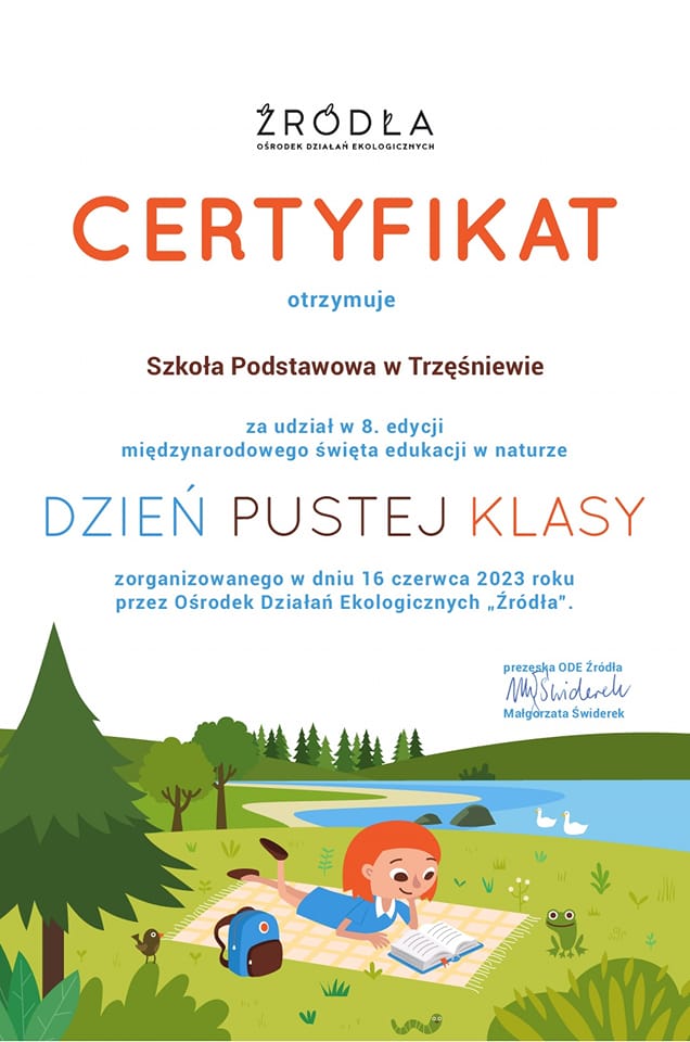 Dzień Pustej Klasy to święto edukacji w naturze obchodzone co roku w czerwcu, którego inicjatorem w Polsce jest Ośrodek Działań Ekologicznych „Źródła”. Tego dnia dzieci i młodzież, wspólnie ze swoimi nauczycielami, porzucają naukę w klasie na rzecz nauki w naturze. W tym roku po raz pierwszy nasza szkoła dołączyło do Dnia Pustej Klasy – ogólnopolskiej akcji promującej edukację w terenie. Las, łąka czy leśna polana to najlepiej wyposażone sale lekcyjne jakie możemy sobie wyobrazić. Jest tu wszystko, czego możemy potrzebować do efektywnego nauczania, bez względu na przedmiot. Natura uczy, dotlenia, aktywizuje, pobudza wyobraźnię, wzrusza i zadziwia. Przyroda naszej okolicy pozwala na realizację takich działań. #dzienpustejklasy2023.