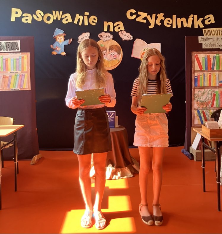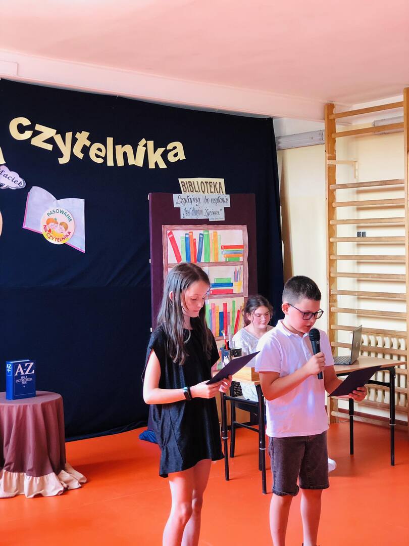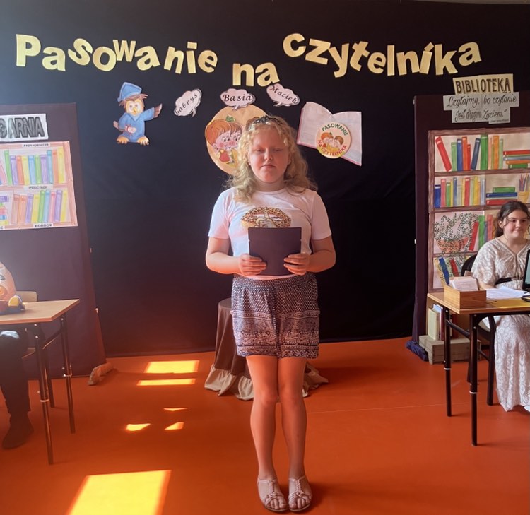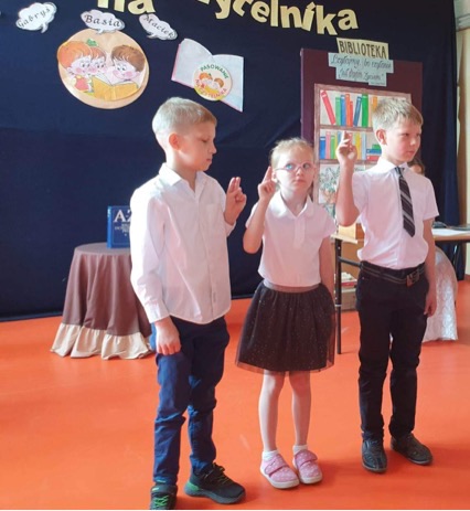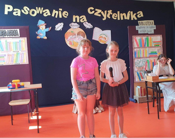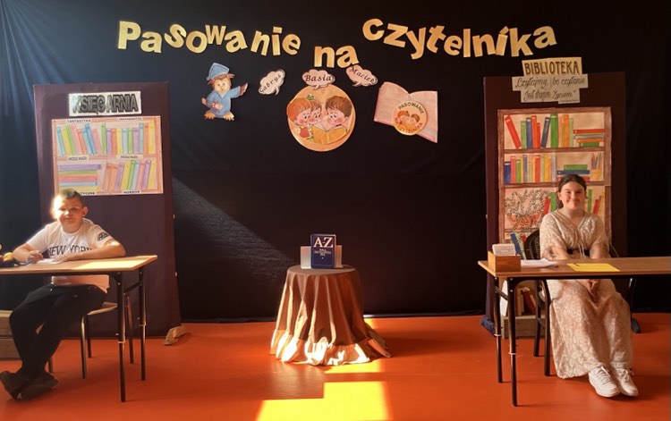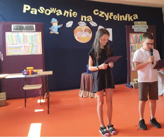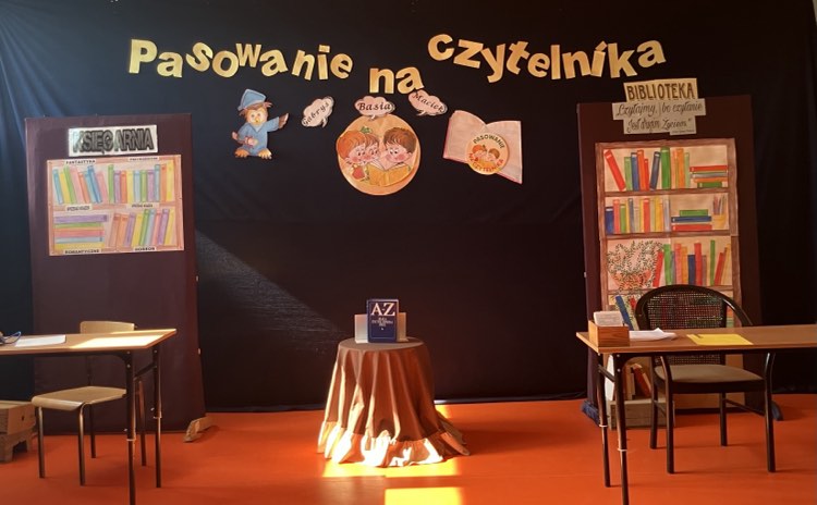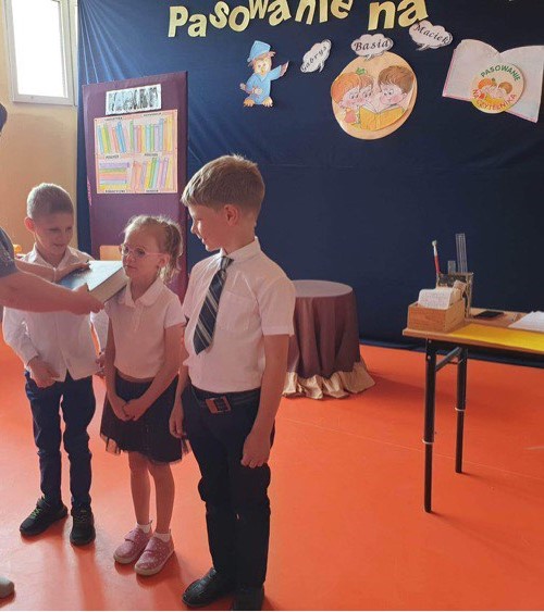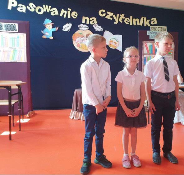 Uczniowie pierwszej klasy – Barbara Spych, Maciej Olejniczak i Gabriel Jankiewicz – zostali pasowani przez panią dyrektor - Katarzynę Czartek, na czytelników biblioteki Szkoły Podstawowej w Trzęśniewie. Pasowanie na czytelnika to ważny dzień w życiu każdego ucznia. Otworzył przed naszymi pierwszoklasistami nową drogę, ponieważ to właśnie książka pozwala nam uciec od rzeczywistości, poznać nadzwyczajne historie i przeżyć niesamowite przygody. W tym ważnym dniu starsi koledzy i koleżanki przygotowali humorystyczne scenki z życia biblioteki szkolnej oraz księgarni. Dziękujemy aktorom za dostarczanie nam dużej dawki humoru. Mamy nadzieję, że po takim wspólnym spotkaniu biblioteka będzie kojarzyła się pierwszakom z miejscem bezpiecznym, przyjaznym, takim, gdzie uczniowie są zawsze mile widziani.
