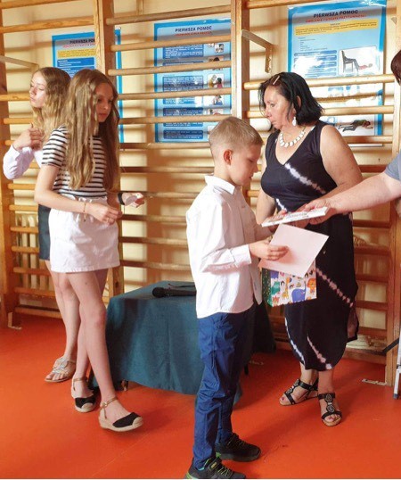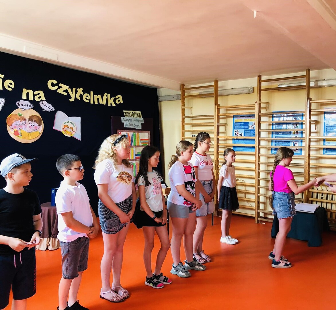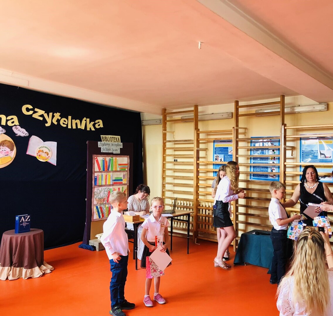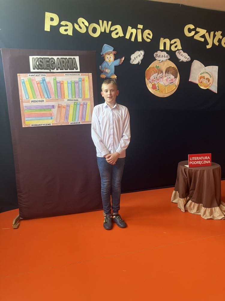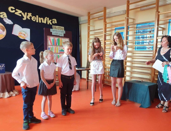 Uczniowie pierwszej klasy – Barbara Spych, Maciej Olejniczak i Gabriel Jankiewicz – zostali pasowani przez panią dyrektor - Katarzynę Czartek, na czytelników biblioteki Szkoły Podstawowej w Trzęśniewie. Pasowanie na czytelnika to ważny dzień w życiu każdego ucznia. Otworzył przed naszymi pierwszoklasistami nową drogę, ponieważ to właśnie książka pozwala nam uciec od rzeczywistości, poznać nadzwyczajne historie i przeżyć niesamowite przygody. W tym ważnym dniu starsi koledzy i koleżanki przygotowali humorystyczne scenki z życia biblioteki szkolnej oraz księgarni. Dziękujemy aktorom za dostarczanie nam dużej dawki humoru. Mamy nadzieję, że po takim wspólnym spotkaniu biblioteka będzie kojarzyła się pierwszakom z miejscem bezpiecznym, przyjaznym, takim, gdzie uczniowie są zawsze mile widziani.
