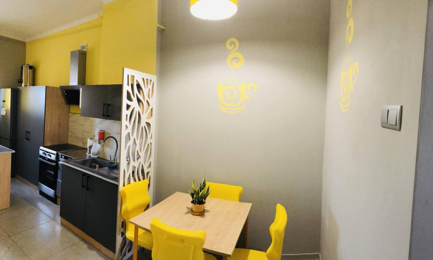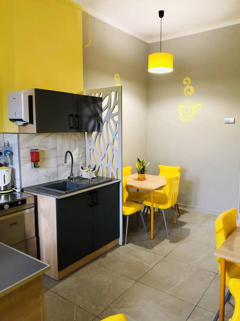 W naszej placówce zostało zaadaptowane jedno z pomieszczeń na potrzeby stworzenia szkolnej jadalni. Zostały wyrównane ściany, położone płytki na ściany i podłogę, stworzone nowe punkty elektryczne, kanalizacyjne i wodne. Zakupiliśmy niezbędne szafki, stoliki i krzesła oraz sprzęty kuchenne (kuchnia indukcyjna, zmywarko-wyparzarka, szafa chłodnicza, zlewozmywak i umywalka). Pomieszczenie zachęca swoim nowym wyglądem do odwiedzania w celu spożywania posiłku. Całkowity koszt stworzenia jadalni to 30 400 złotych (20 % wkład własny Gminy Kościelec).