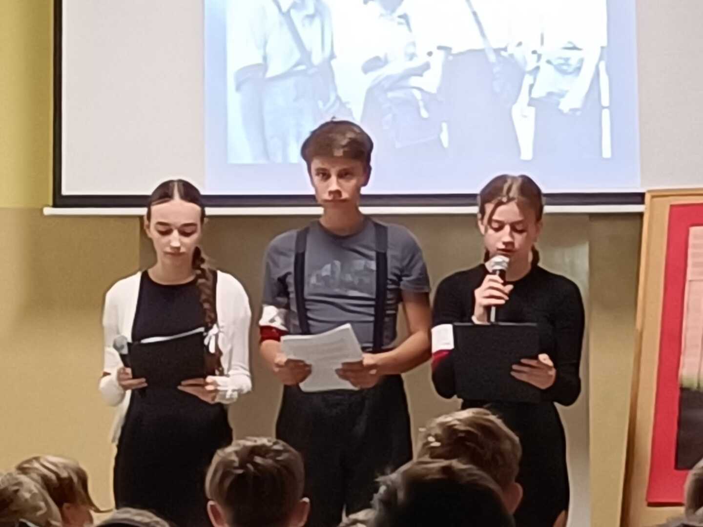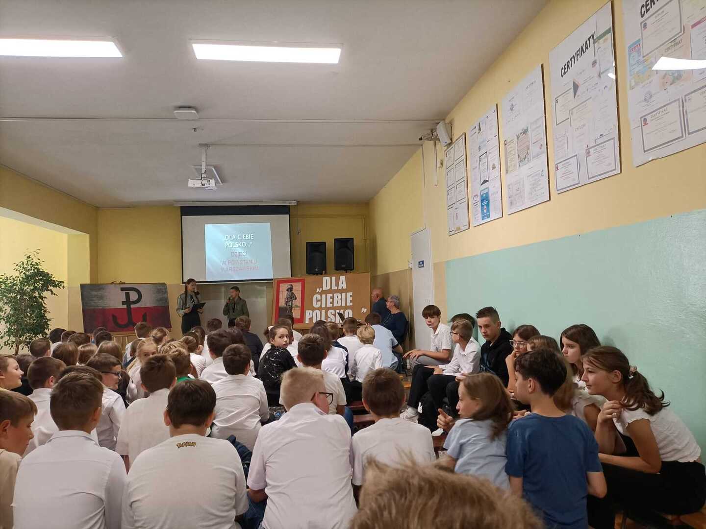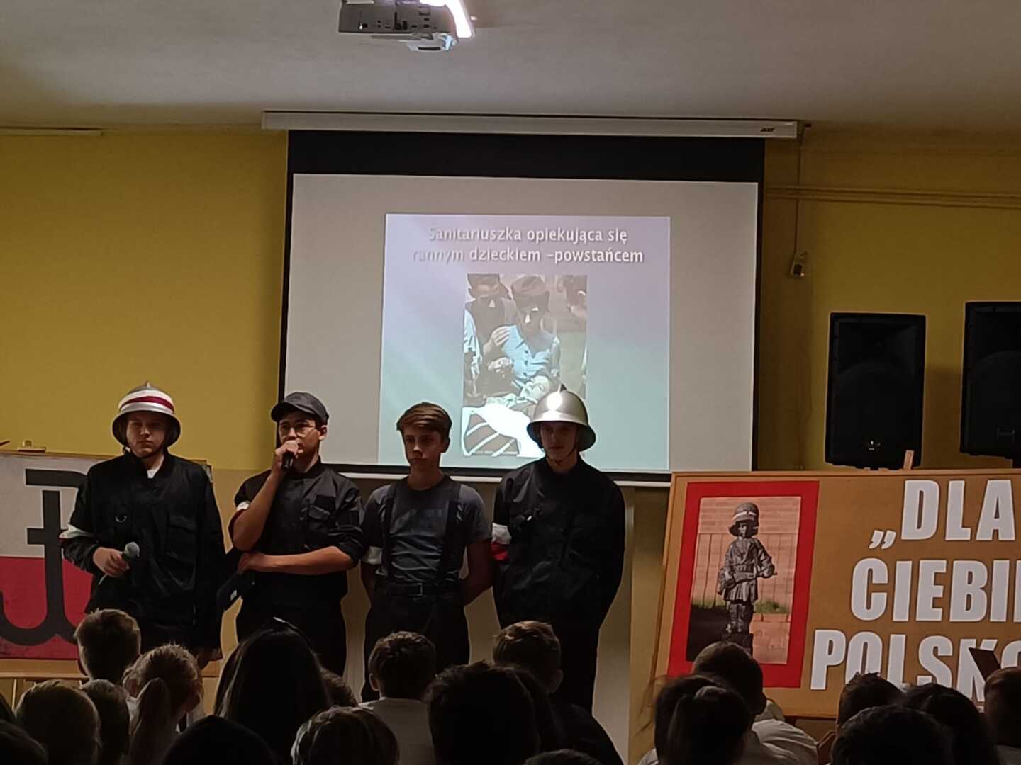 3 października 2023 r. w Zespole Szkolno- Przedszkolnym w Kościelcu odbył się uroczysty apel upamiętniający najmłodszych uczestników powstania warszawskiego pt. "DLA CIEBIE POLSKO...",w którym na zaproszenie organizatorów uczestniczyli uczniowie klasy VII i VIII naszej szkoły wraz z opiekunami. Uroczystości towarzyszyła także okolicznościowa wystawa prezentująca sylwetki dzieci, które brały udział w powstaniu warszawskim. Dziękujemy paniom: Ilonie Anteckiej , Agacie Grabowskiej i Wioletcie Kołuckiej za zaproszenie. Było to wspaniałe i pouczające wydarzenie dla nas wszystkich.