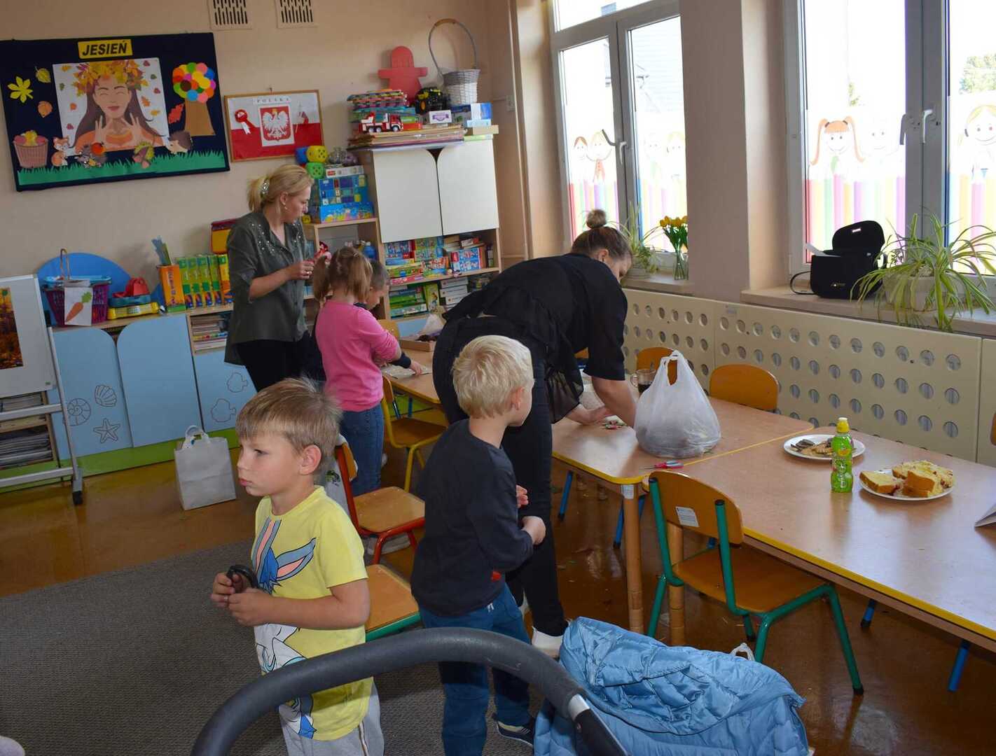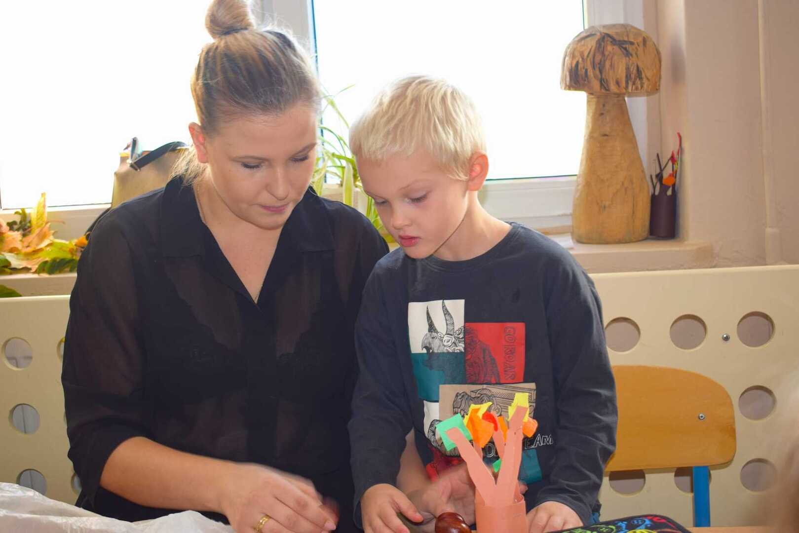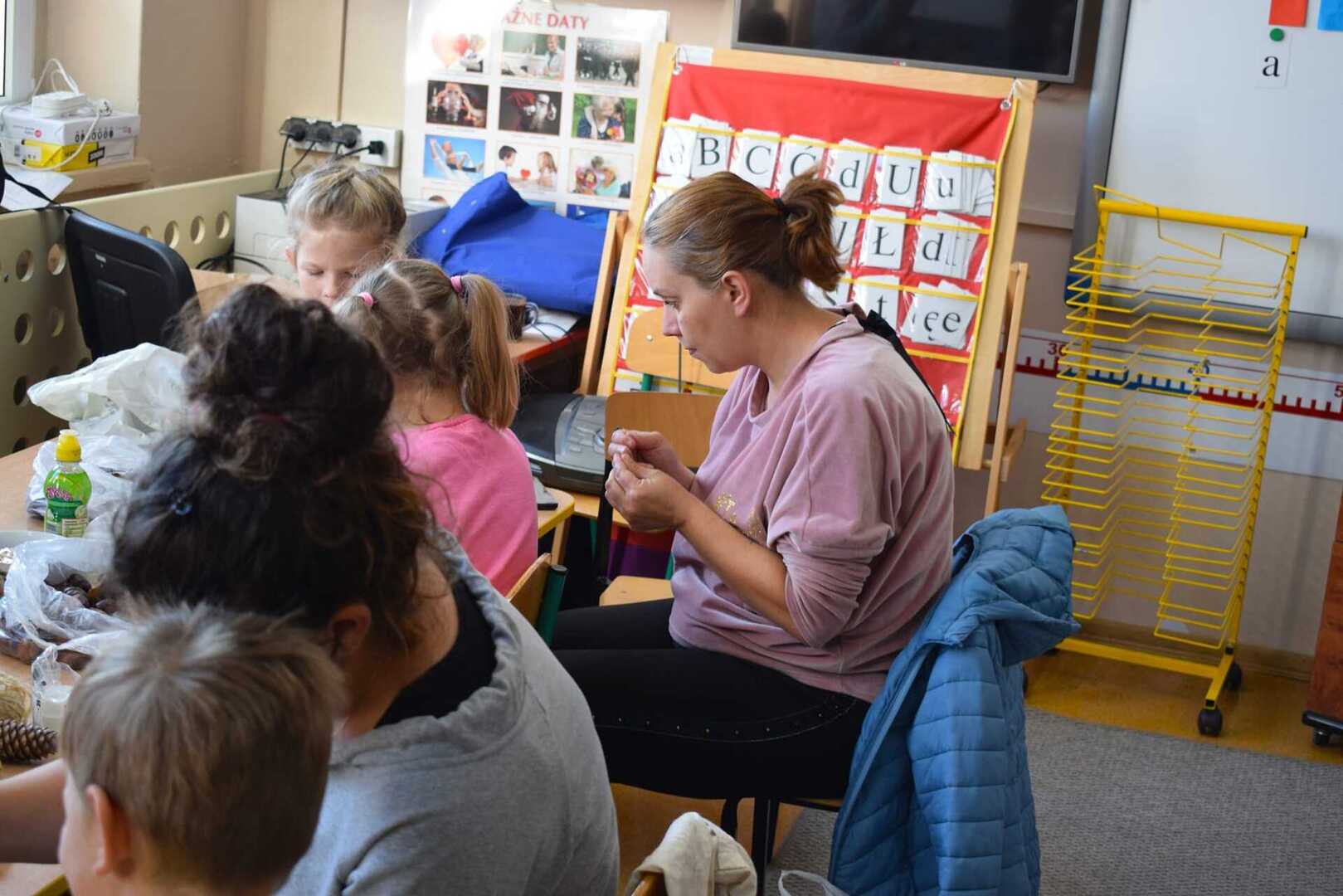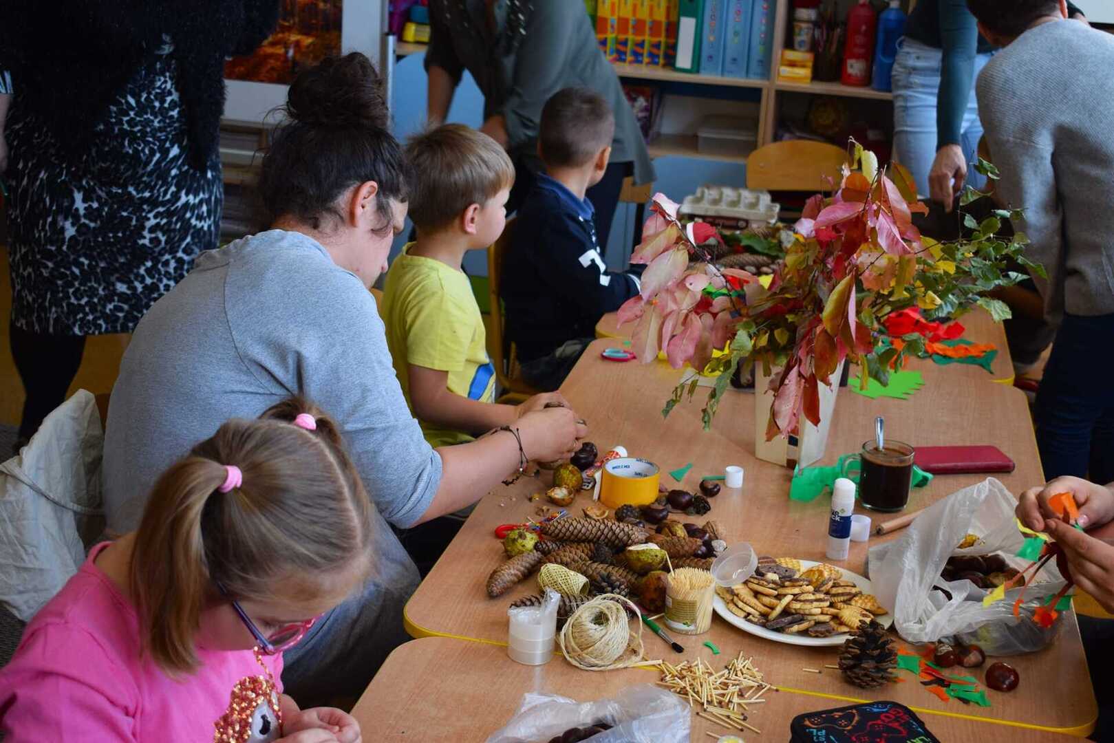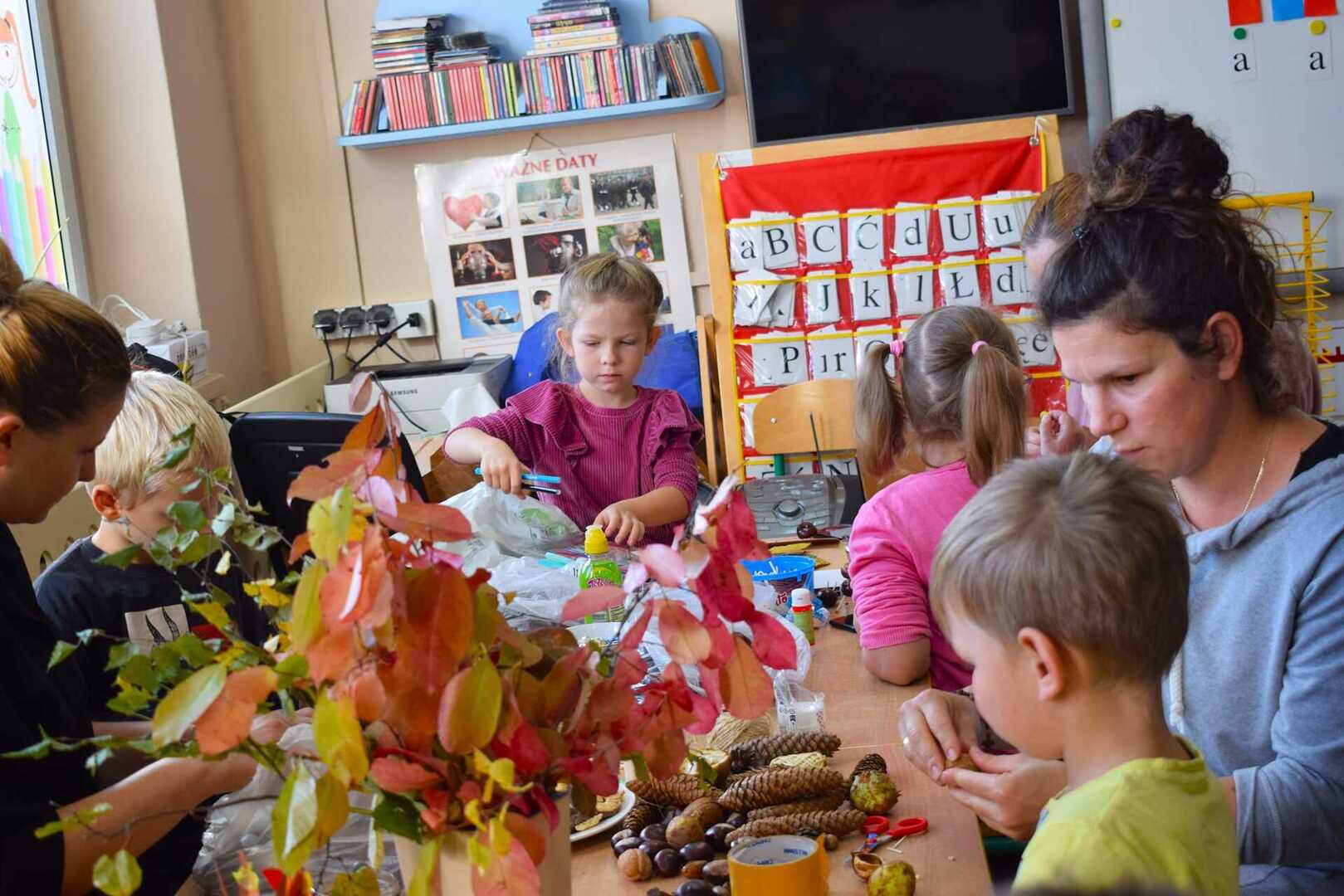 10.10.2023 r. w oddziale przedszkolnym dzieci wraz z wychowawczynią, zaprosiły swoich rodziców do wspólnej zabawy podczas zajęć otwartych. Przygotowywaliśmy "jesienne ludziki" ze zgromadzonych materiałów przyrodniczych; liści , kasztanów, szyszek, żołędzi itp. Wszyscy ochoczo zabraliśmy się do pracy! Efektem naszych wspólnych działań powstała makieta w przepięknych barwach jesiennych z mnóstwem postaci, zwierząt, drzew i innych wytworów dziecięcej wyobrażni! Dziękujemy Rodzicom za wspaniałe przeżycia przy tworzeniu kompozycji oraz wspólnie spędzony czas w przemiłej atmosferze!😊