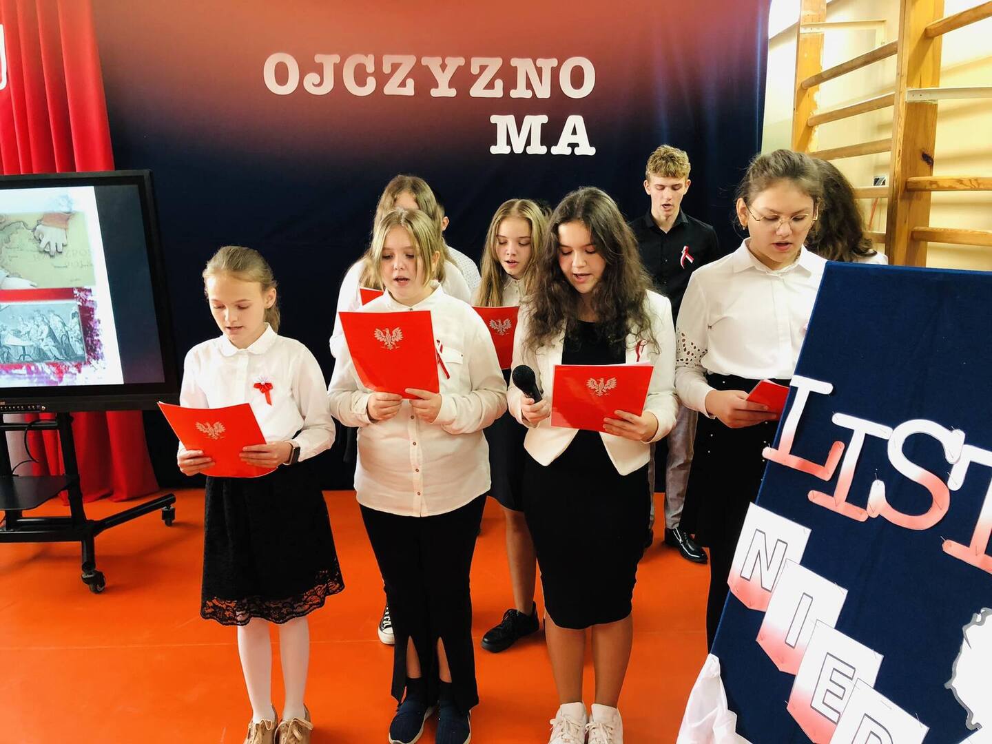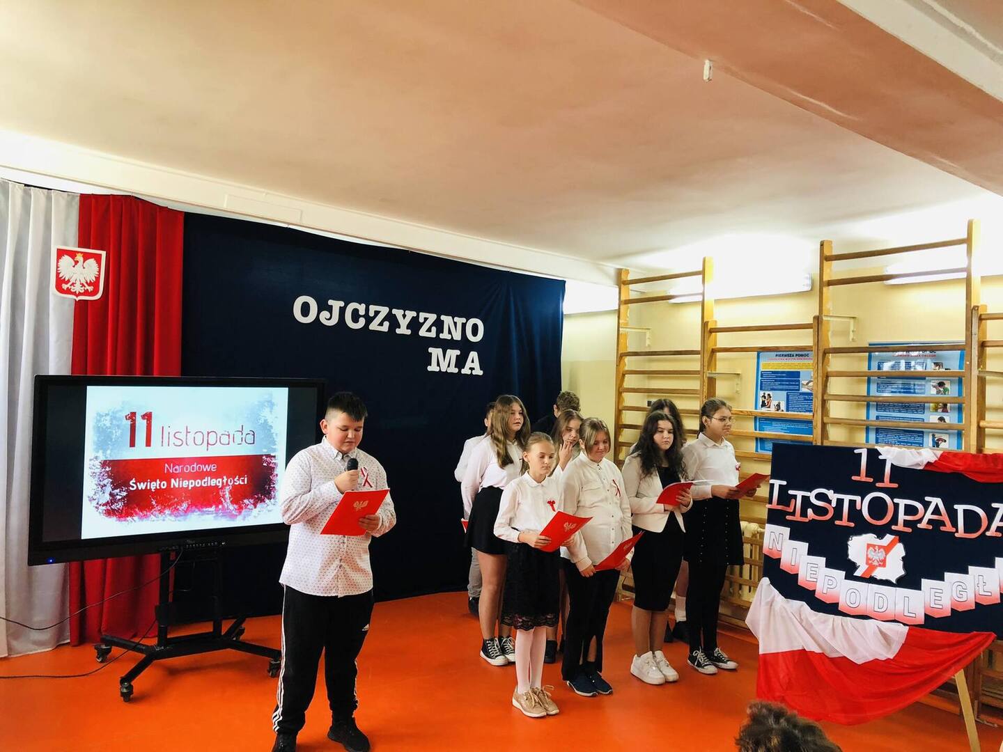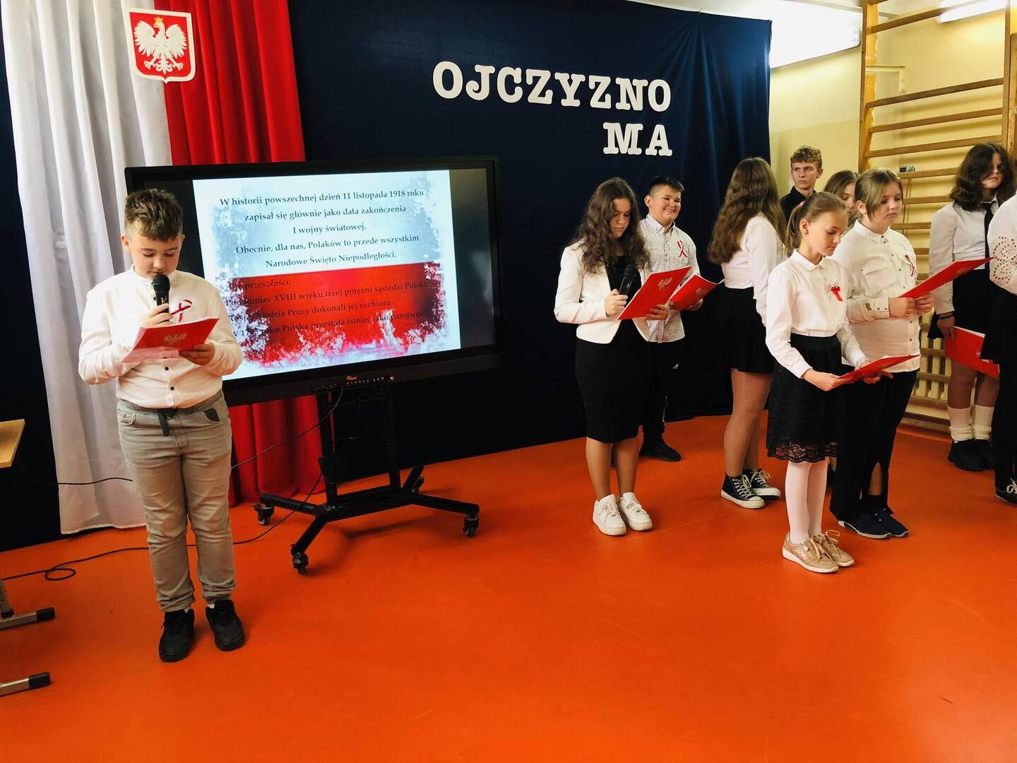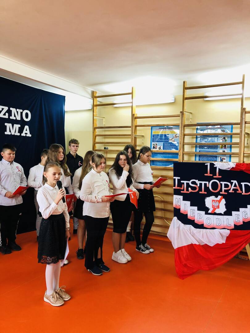 11 listopada to ważne święto dla nas - Polaków, to symbol walki o wolność, symbol wiary, miłości i symbol zwycięstwa. Po 123 latach niewoli Polska odzyskała niepodległość. Z tej okazji w dniu 10 listopada w naszej szkole odbył się uroczysty apel. Uczniowie pod opieką pani Renaty Cieślak i pani Marzanny Wszendybył przygotowali prezentację multimedialną przeplataną wierszami i pieśniami patriotycznymi. Prezentowali dzieje narodu polskiego w okresie zaborów, działania Polaków w walce o wolność. Uczniowie swoją postawą i zaangażowaniem w przygotowanie i udział w apelu pokazali, jak ważna jest dla nich OJCZYZNA i co oznacza słowo PATRIOTA.