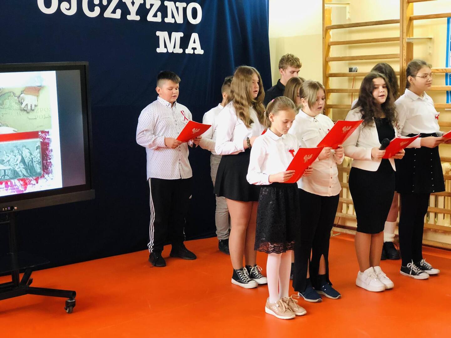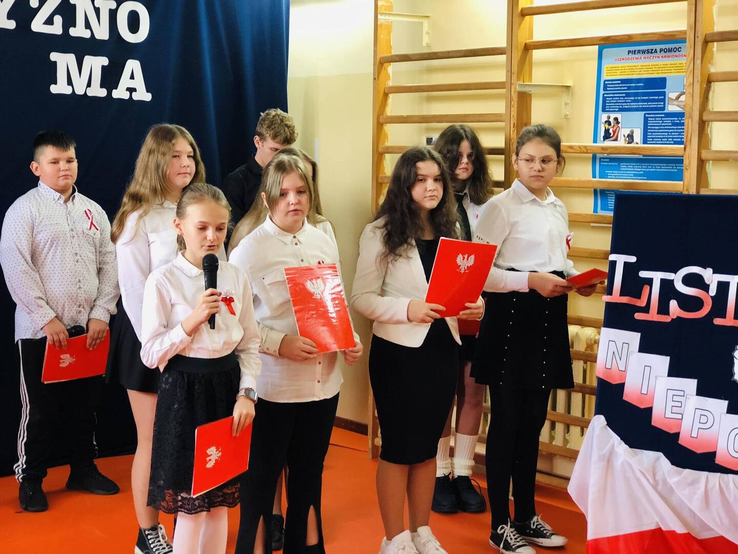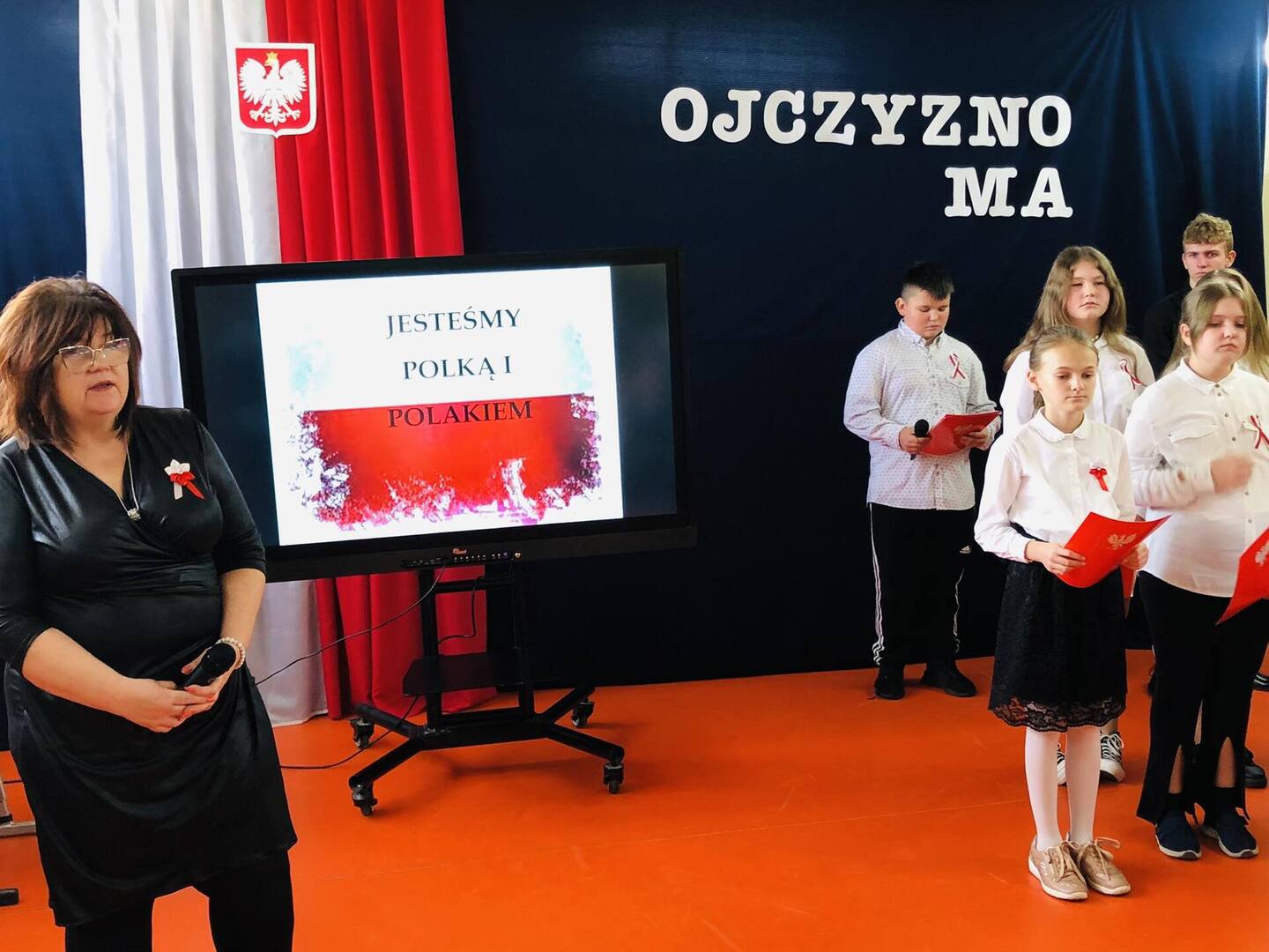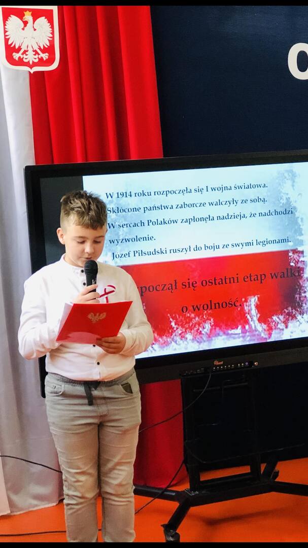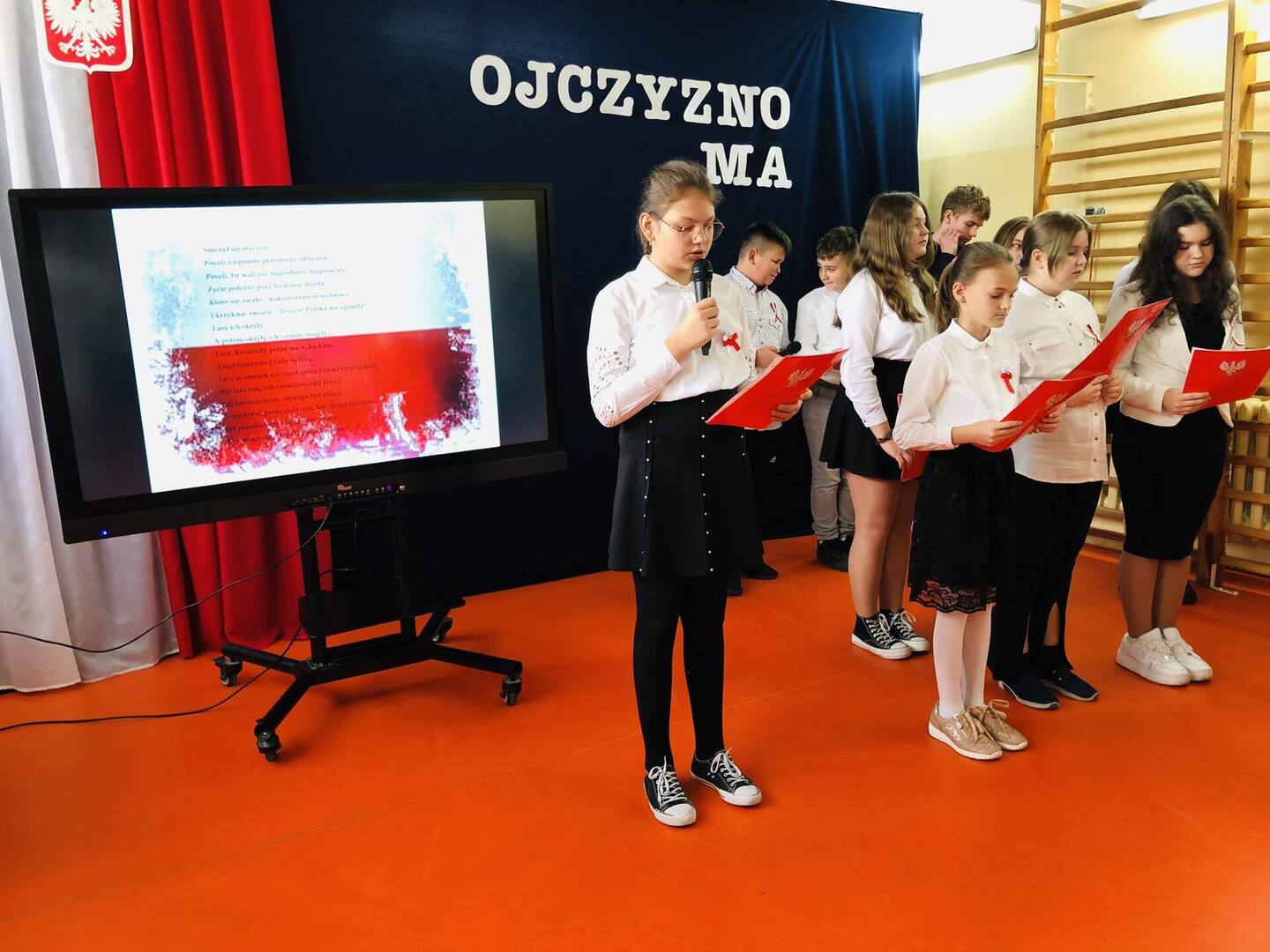 11 listopada to ważne święto dla nas - Polaków, to symbol walki o wolność, symbol wiary, miłości i symbol zwycięstwa. Po 123 latach niewoli Polska odzyskała niepodległość. Z tej okazji w dniu 10 listopada w naszej szkole odbył się uroczysty apel. Uczniowie pod opieką pani Renaty Cieślak i pani Marzanny Wszendybył przygotowali prezentację multimedialną przeplataną wierszami i pieśniami patriotycznymi. Prezentowali dzieje narodu polskiego w okresie zaborów, działania Polaków w walce o wolność. Uczniowie swoją postawą i zaangażowaniem w przygotowanie i udział w apelu pokazali, jak ważna jest dla nich OJCZYZNA i co oznacza słowo PATRIOTA.
