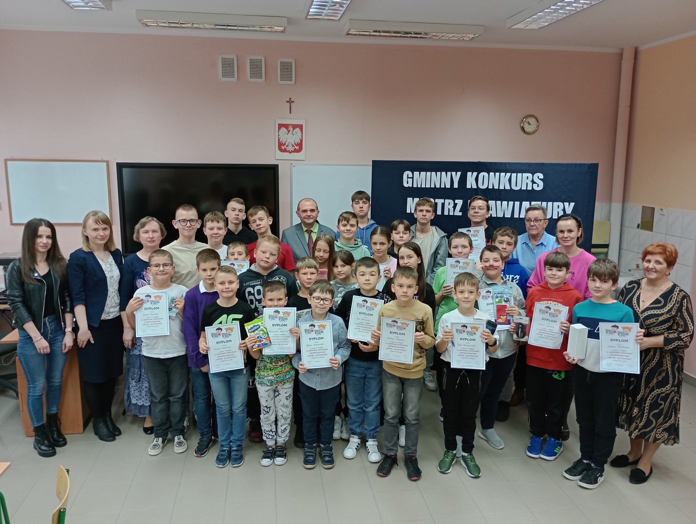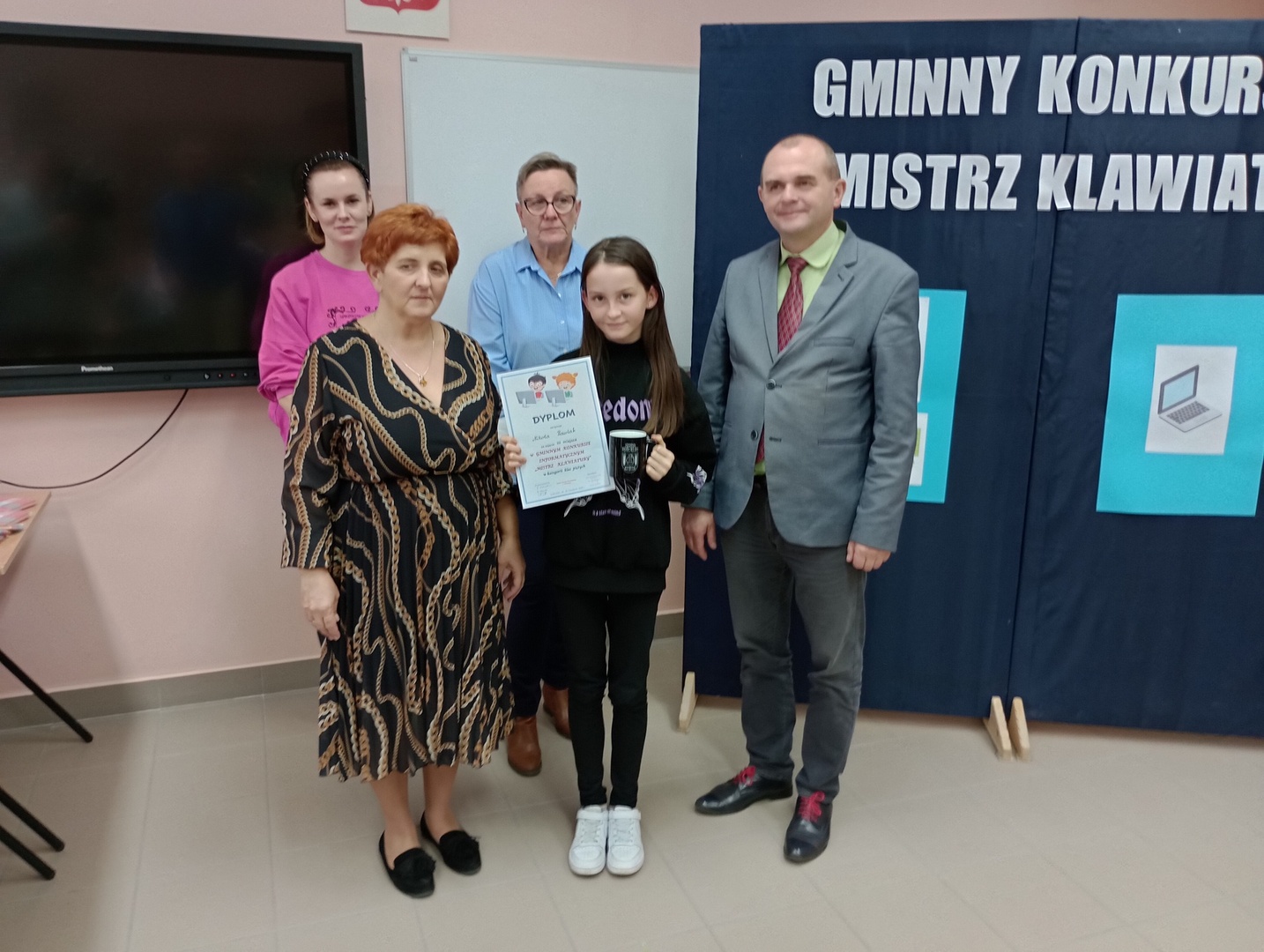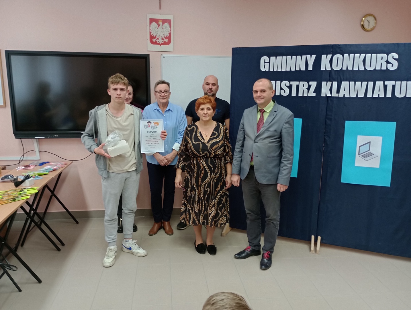 6 listopada 2023 r. siedmioro uczniów naszej szkoły wzięło udział w Gminnym Konkursie „Mistrz Klawiatury” w Zespole Szkolno – Przedszkolnym w Kościelcu. Startowali w nim przedstawiciele z trzech szkół z terenu gminy Kościelec - Szkoły Podstawowej w Ruszkowie Pierwszym, Zespołu Szkolno - Przedszkolnego w Kościelca oraz Szkoły Podstawowej w Trzęśniewie. Uczestnicy rywalizowali w 8 kategoriach: klasy I, II, III, IV, V, VI, VII, VIII. Oto lokaty, jakie zajęli uczniowie naszej szkoły: •w najstarszej kategorii (klasy VIII )– I miejsce zajął Kevin Pasternak, • w kategorii klas II – II miejsce zajął Gabriel Jankiewicz, • w kategorii klas V – III miejsce zajęła Nikola Pawlak, •w kategorii klas VI - II miejsce zajął Oskar Pasternak. Pozostali nasi reprezentanci zajęli miejsca poza podium. Wszystkim reprezentantom SP Trzęśniew dziękujemy za zaangażowanie, życząc powodzenia w przyszłorocznym konkursie.