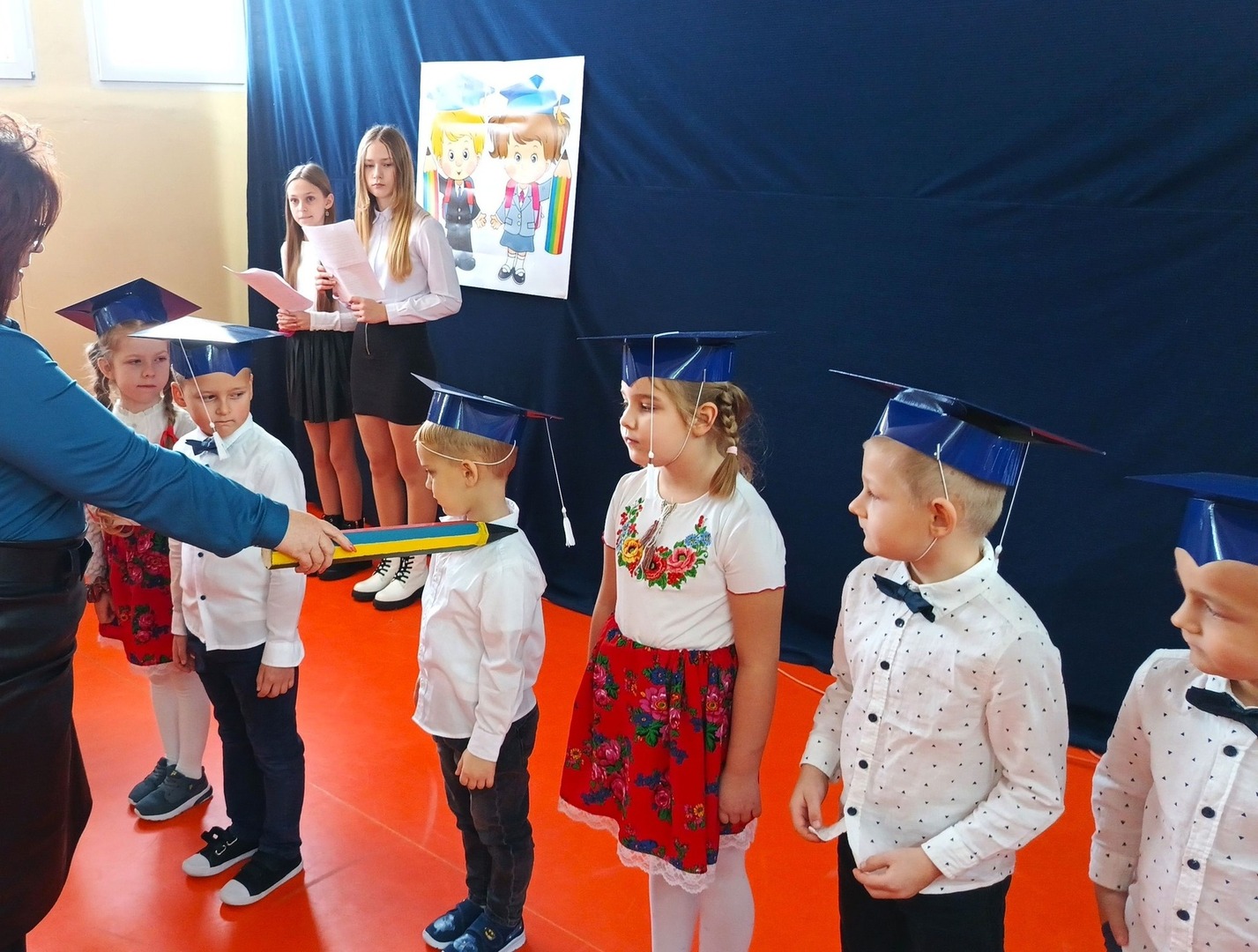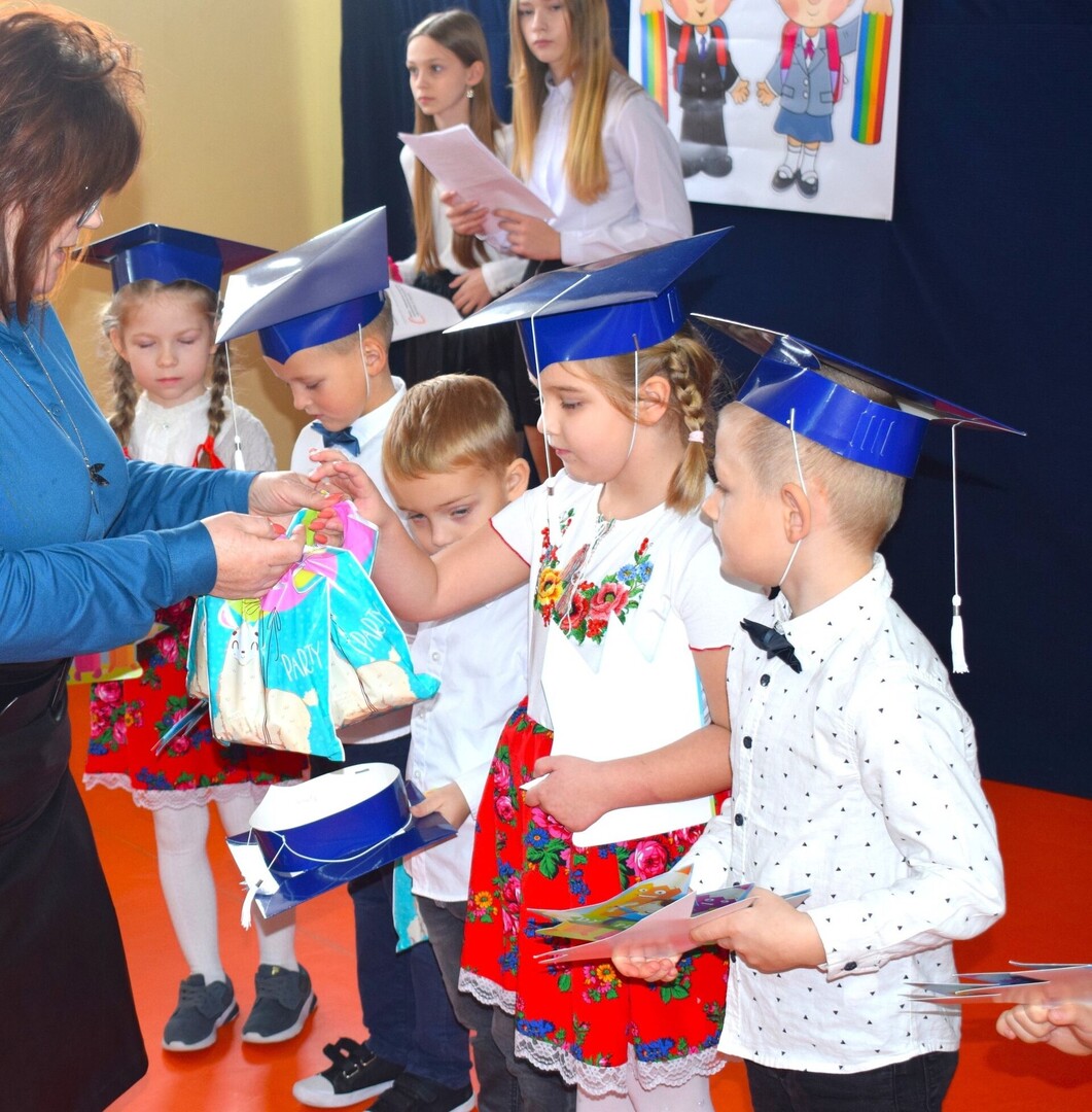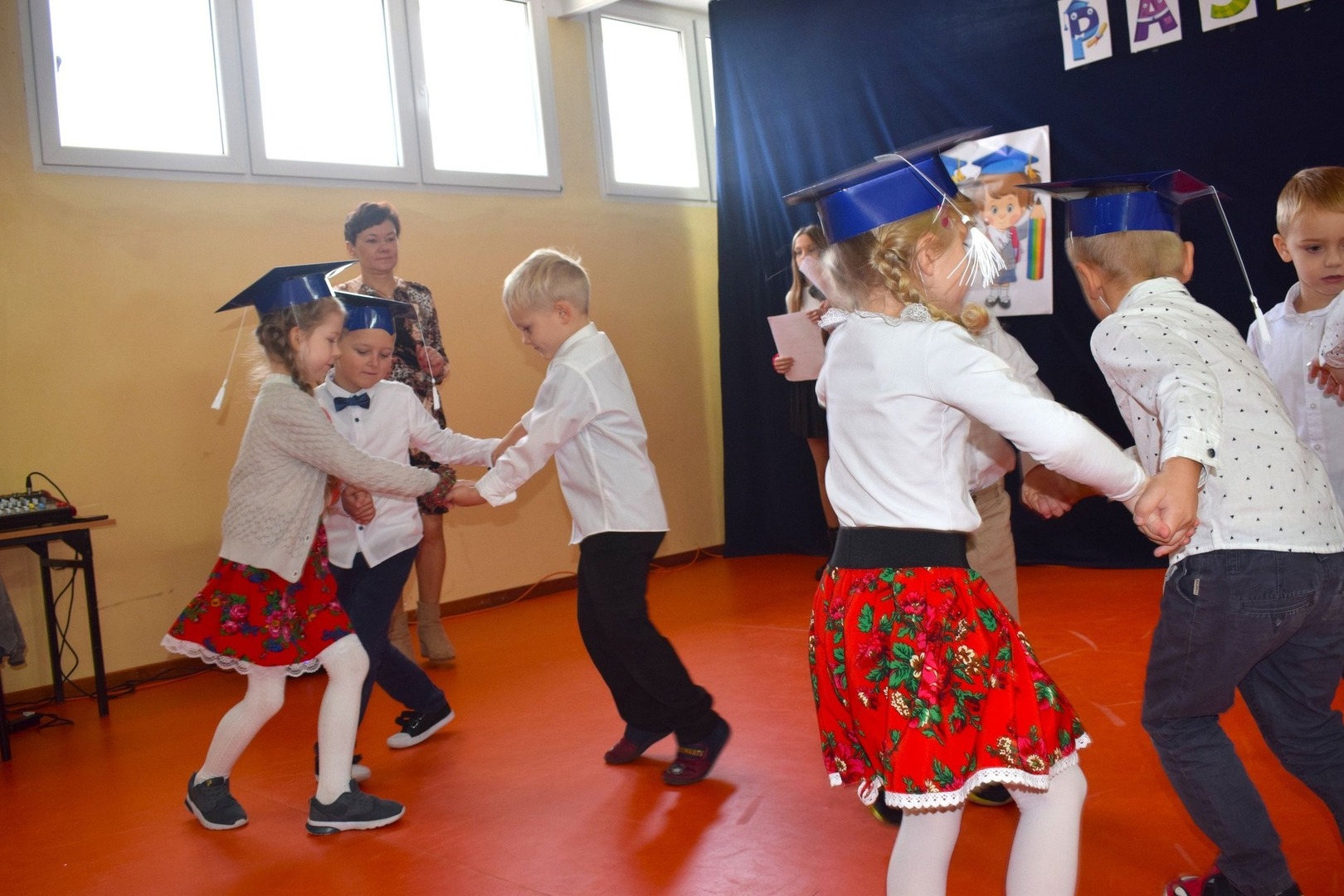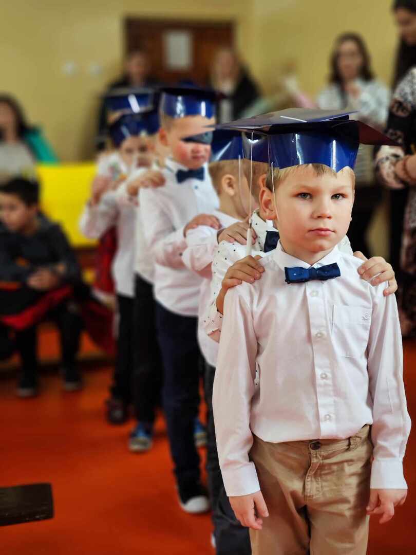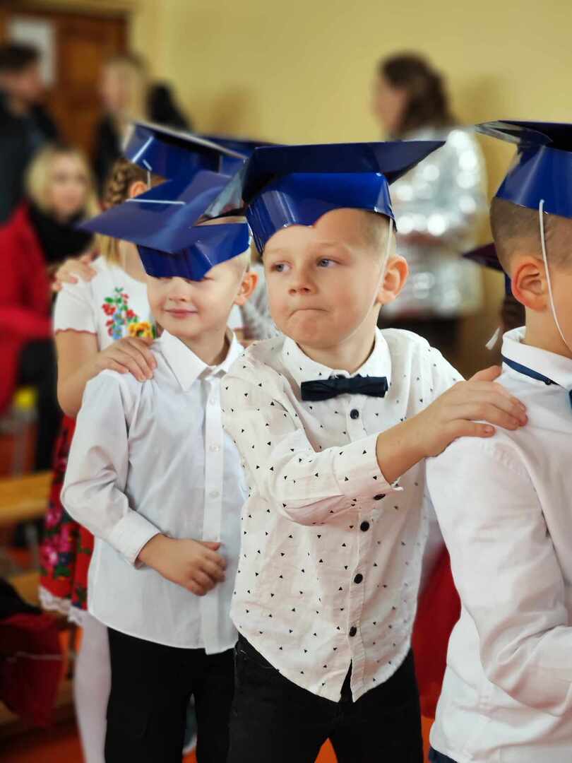 W dniu 27.11.2023 r. w naszej szkole odbyła się uroczystość pasowania na przedszkolaka. Dzieci zaprosiły rodziców, panią dyrektor - Katarzynę Czartek, kolegów z klas I - III z wychowawczyniami. Pod okiem wychowawczyni, pani Joanny Czartek, przygotowały część artystyczną, recytując okolicznościowe wierszyki, śpiewając piosenki oraz prezentując tańce. Pani Dyrektor przyjęła przyrzeczenie dzieci i rodziców, po czym nastąpiło uroczyste pasowanie na przedszkolaka. Wychowawczyni wręczyła dzieciom dyplomy, rodzice rożki ze słodyczami, a pani Dyrektor torebeczki z drobnymi upominkami. Po części artystycznej mamy przygotowały słodki poczęstunek. Do dziś wspominamy ten dzień z uśmiechem! Dziękujemy rodzicom za pomoc w przygotowaniu uroczystości oraz dziewczynkom z klasy VI, Nadii i Patrycji, za poprowadzenie uroczystości!