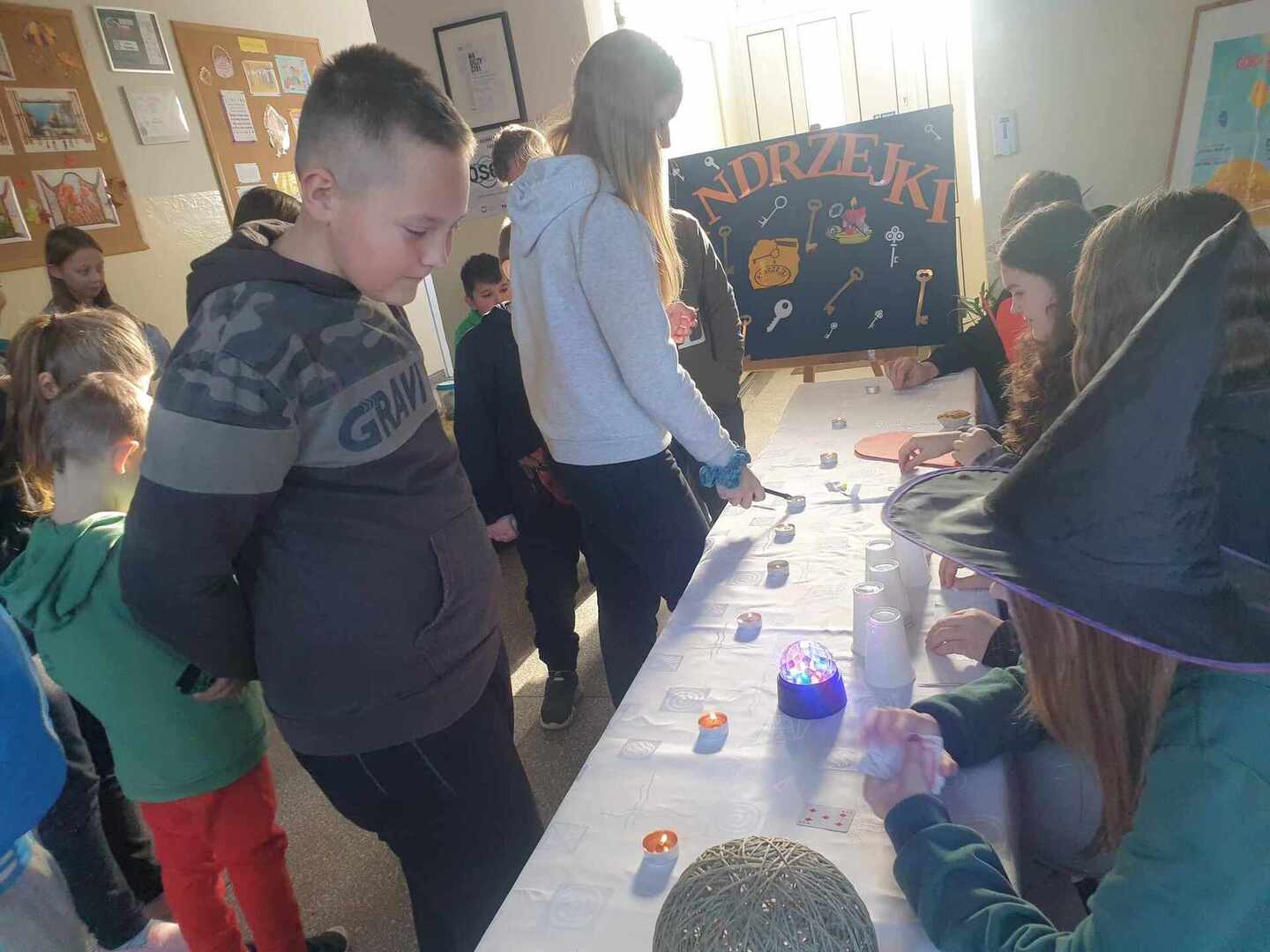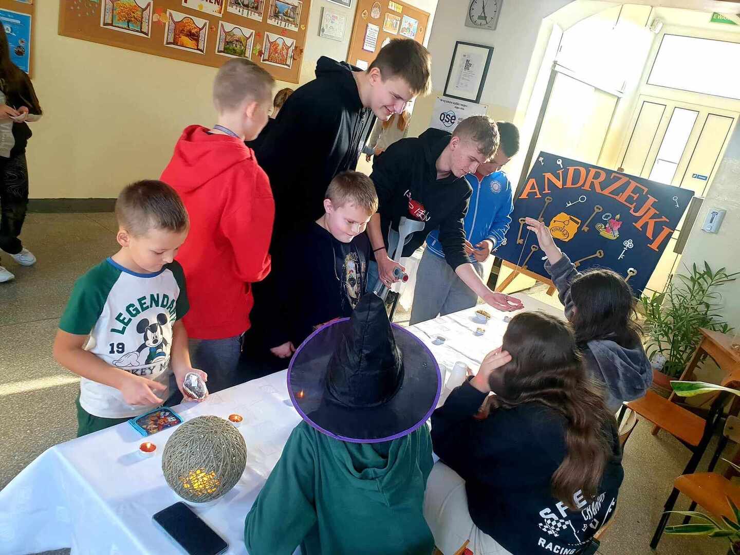 Od dawna, chwilą, kiedy można było poznać tajemnicę, jaką niesie przyszłość, był wieczór andrzejkowy. Kiedyś podchodzono do wróżb niezwykle poważnie i wierzono w to, co wskazały. Obecnie jest to zabawa z przymrużeniem oka, w której chętnie bierzemy udział. Również w naszej szkole postanowiliśmy roztoczyć tę magiczną atmosferę, biorąc udział w różnych wróżbach przygotowanych przez Samorząd Uczniowski. Tego dnia można było również zakupić babeczki z wróżbą, upieczone przez członków SU. Uczniowie, a także nauczyciele i pracownicy obsługi, mogli się przekonać, że tradycyjne andrzejki to przede wszystkim dobra zabawa, której nie zabrakło tego dnia w naszej szkole. Podziękowania dla Samorządu Uczniowskiego, który przygotował i zorganizował świetną zabawę andrzejkową oraz zadbał o porządek w szkole.