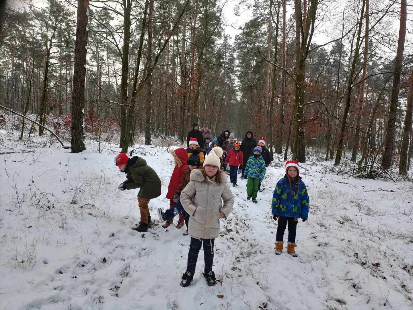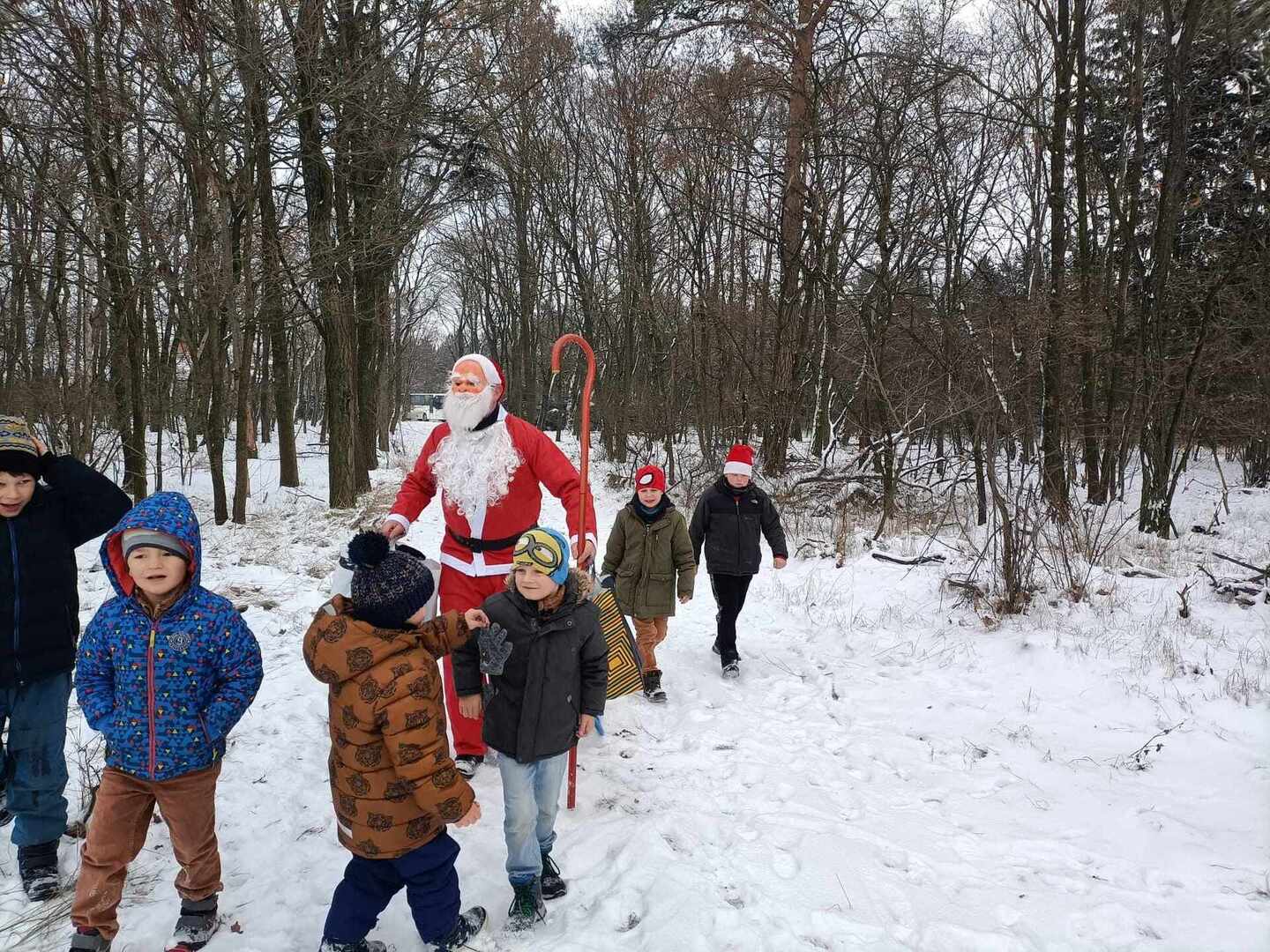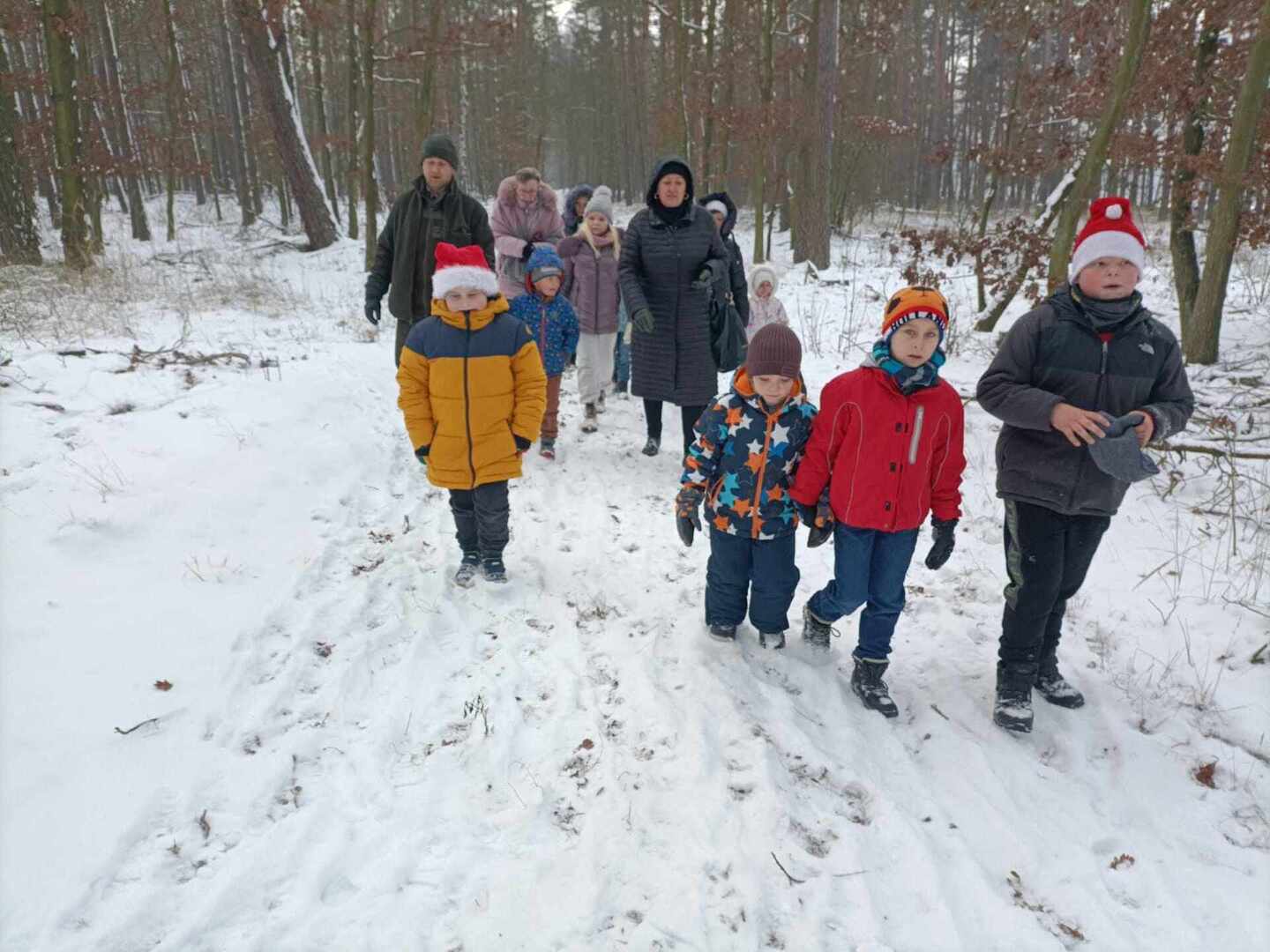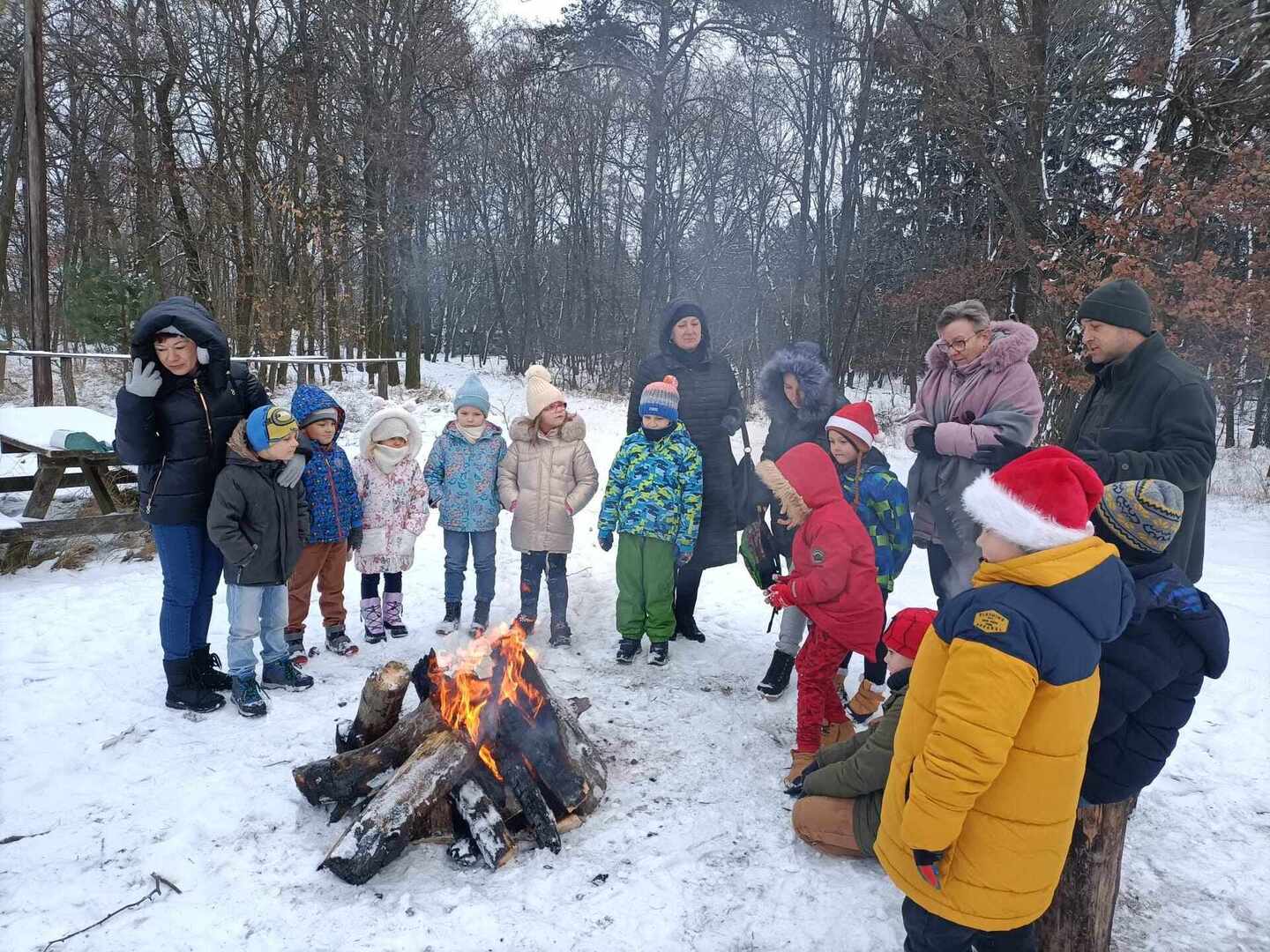 Poznanie pracy leśniczego, integrowanie się dzieci w trakcie wspólnie spędzonego czasu i pielęgnowanie zwyczajów mikołajkowych, to cele wyjazdu w dniu 6 grudnia uczniów klas 0, I, II i III wraz z wychowawczyniami do leśniczówki w Dąbrowicach Starych. Dziękujemy panu leśniczemu Bartoszowi Bekalarczyk, który opowiedział nam o swojej pracy oraz wiele ciekawostek, jakie kryją lasy w naszej najbliższej okolicy. W czasie spotkania dzieci dowiedziały się, jakie zwierzęta żyją w naszych lasach, w jaki sposób dokarmia się te zwierzęta oraz jakie gatunki drzew występują w środowisku leśnym. Na śniegu znaleźliśmy wiele śladów leśnych zwierząt. Po spacerze czekała nas niespodzianka – ognisko i pieczone kiełbasek. Wielką radość sprawił nam, w czasie tego wyjazdu, MIKOŁAJ, który odnalazł nas w lesie i obdarował wszystkich prezentami. Dziękujemy mamom z Rady Rodziców za pomoc w organizacji wyjazdu. Szczególne podziękowania kierujemy do MIKOŁAJA, który sprawił nam wielką radość. Wycieczka dostarczyła dzieciom wiele niezapomnianych wrażeń i wspomnień.