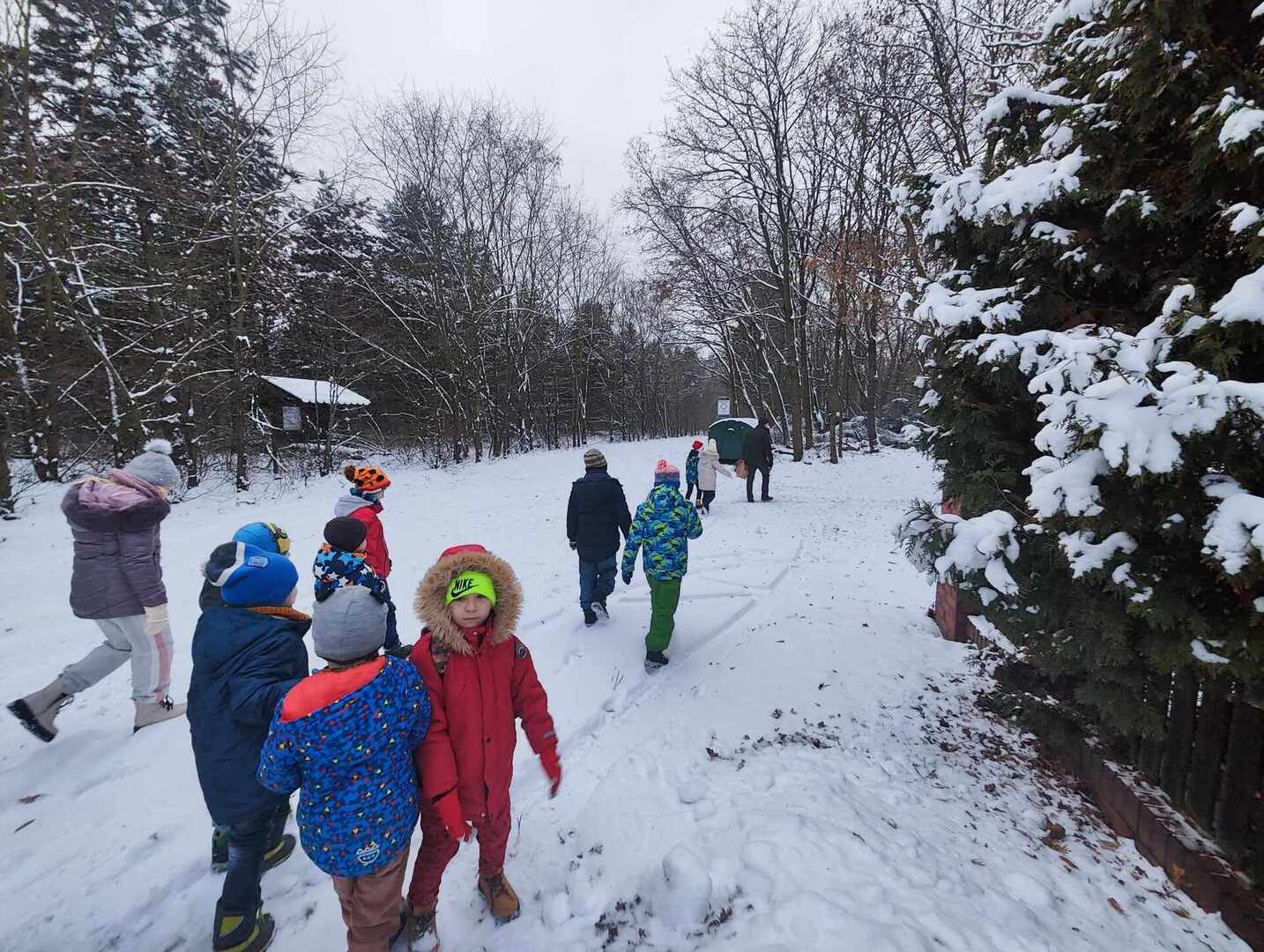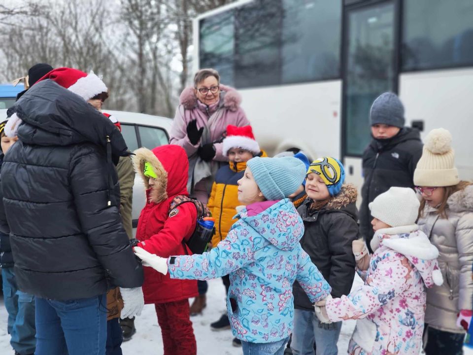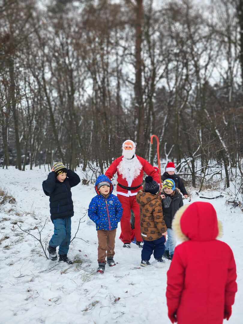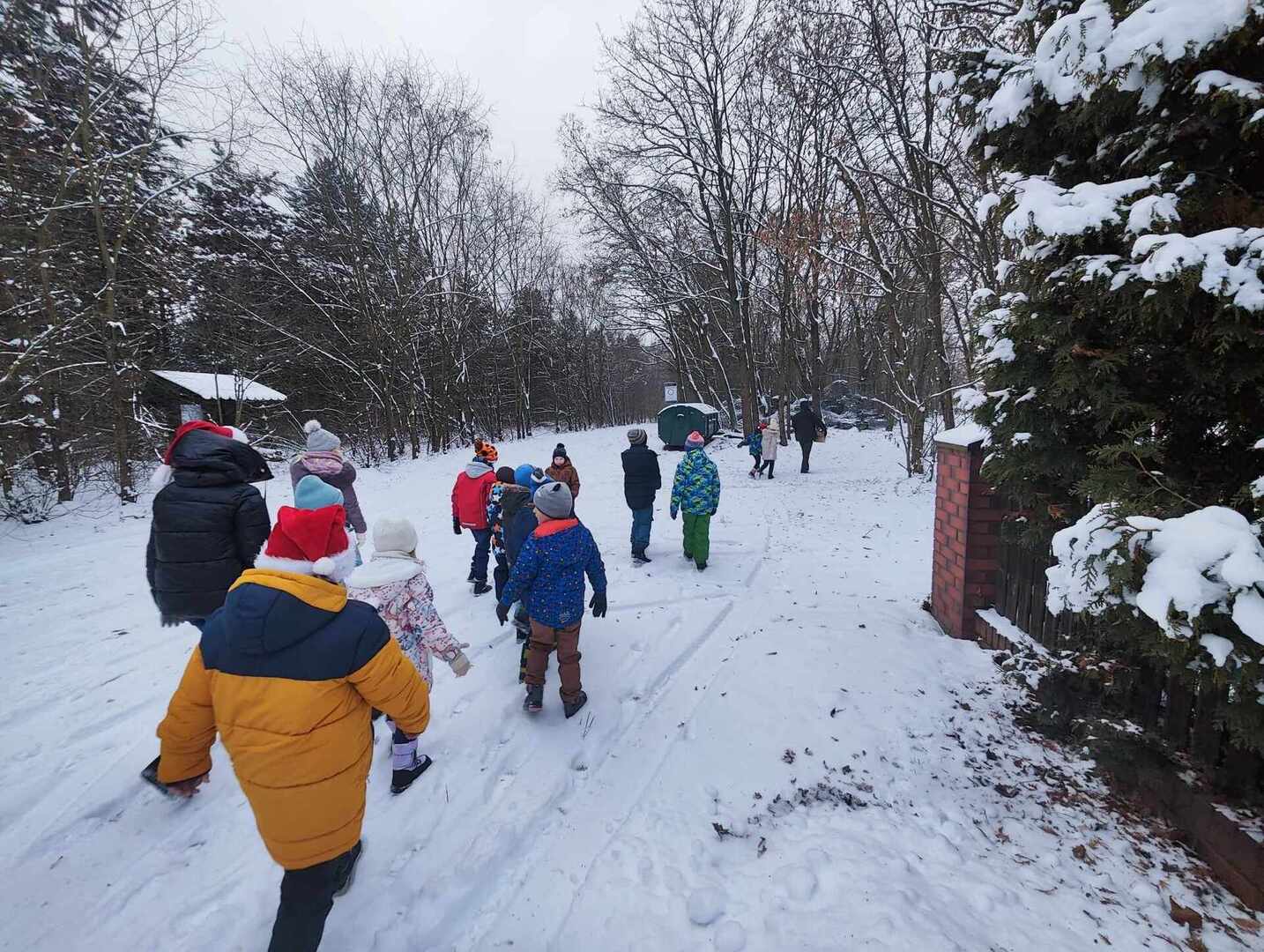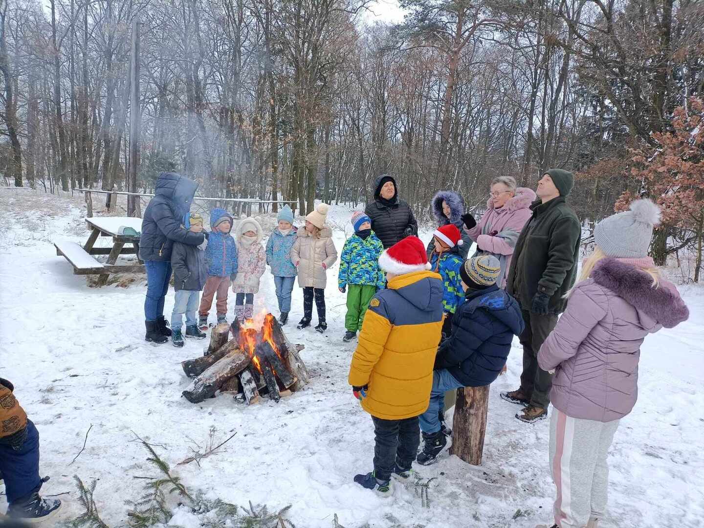 Poznanie pracy leśniczego, integrowanie się dzieci w trakcie wspólnie spędzonego czasu i pielęgnowanie zwyczajów mikołajkowych, to cele wyjazdu w dniu 6 grudnia uczniów klas 0, I, II i III wraz z wychowawczyniami do leśniczówki w Dąbrowicach Starych. Dziękujemy panu leśniczemu Bartoszowi Bekalarczyk, który opowiedział nam o swojej pracy oraz wiele ciekawostek, jakie kryją lasy w naszej najbliższej okolicy. W czasie spotkania dzieci dowiedziały się, jakie zwierzęta żyją w naszych lasach, w jaki sposób dokarmia się te zwierzęta oraz jakie gatunki drzew występują w środowisku leśnym. Na śniegu znaleźliśmy wiele śladów leśnych zwierząt. Po spacerze czekała nas niespodzianka – ognisko i pieczone kiełbasek. Wielką radość sprawił nam, w czasie tego wyjazdu, MIKOŁAJ, który odnalazł nas w lesie i obdarował wszystkich prezentami. Dziękujemy mamom z Rady Rodziców za pomoc w organizacji wyjazdu. Szczególne podziękowania kierujemy do MIKOŁAJA, który sprawił nam wielką radość. Wycieczka dostarczyła dzieciom wiele niezapomnianych wrażeń i wspomnień.