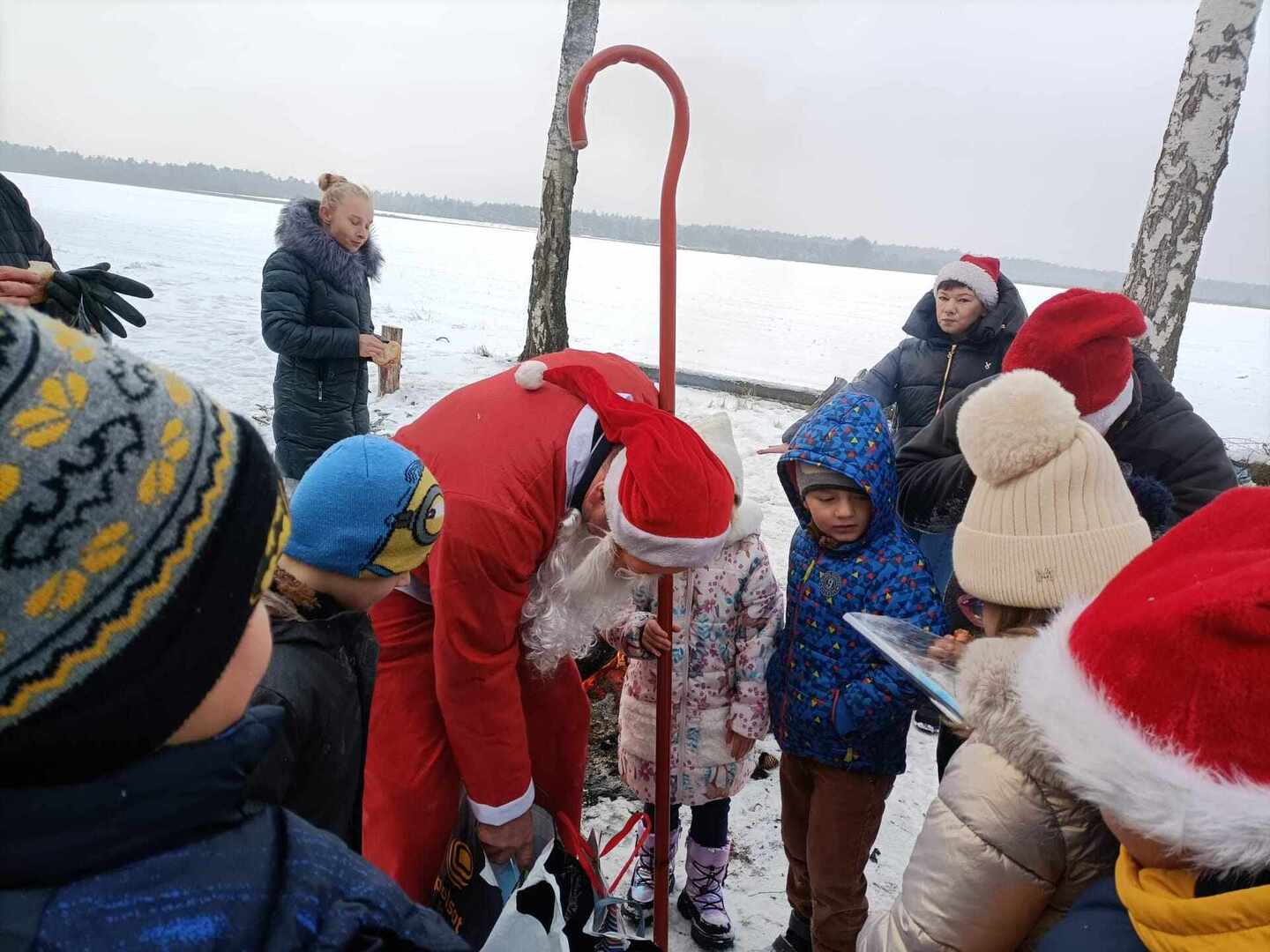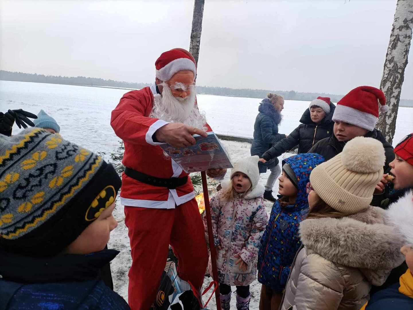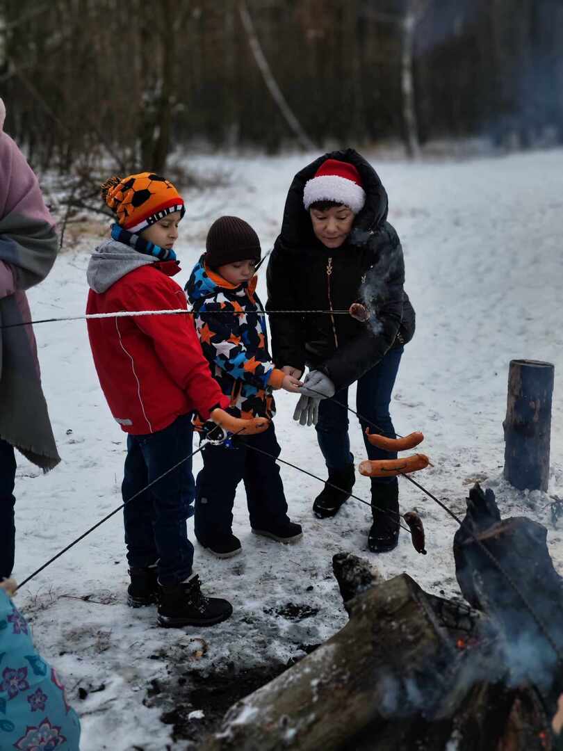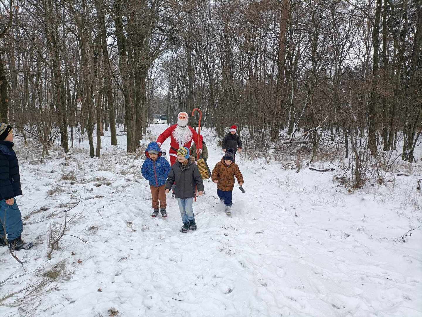 Poznanie pracy leśniczego, integrowanie się dzieci w trakcie wspólnie spędzonego czasu i pielęgnowanie zwyczajów mikołajkowych, to cele wyjazdu w dniu 6 grudnia uczniów klas 0, I, II i III wraz z wychowawczyniami do leśniczówki w Dąbrowicach Starych. Dziękujemy panu leśniczemu Bartoszowi Bekalarczyk, który opowiedział nam o swojej pracy oraz wiele ciekawostek, jakie kryją lasy w naszej najbliższej okolicy. W czasie spotkania dzieci dowiedziały się, jakie zwierzęta żyją w naszych lasach, w jaki sposób dokarmia się te zwierzęta oraz jakie gatunki drzew występują w środowisku leśnym. Na śniegu znaleźliśmy wiele śladów leśnych zwierząt. Po spacerze czekała nas niespodzianka – ognisko i pieczone kiełbasek. Wielką radość sprawił nam, w czasie tego wyjazdu, MIKOŁAJ, który odnalazł nas w lesie i obdarował wszystkich prezentami. Dziękujemy mamom z Rady Rodziców za pomoc w organizacji wyjazdu. Szczególne podziękowania kierujemy do MIKOŁAJA, który sprawił nam wielką radość. Wycieczka dostarczyła dzieciom wiele niezapomnianych wrażeń i wspomnień.