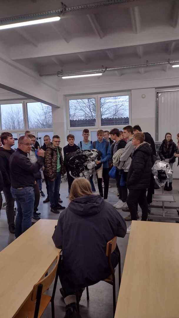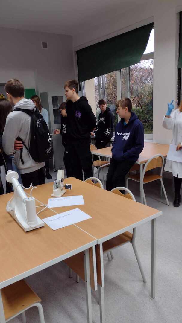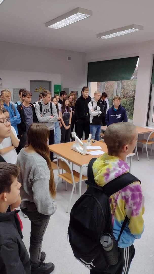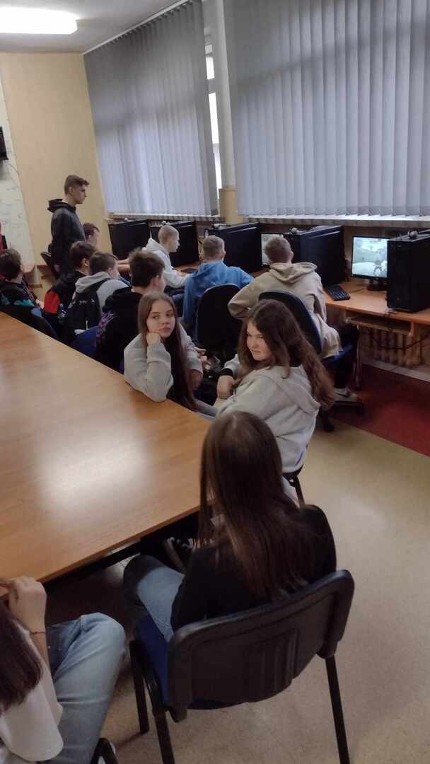 Uczniowie klasy ósmej w dniu 12.12.2023 pojechali na Drzwi Otwarte w Zespole Szkół Technicznych w Kole. Zebranych powitała pani dyrektor Katarzyna Poronin. Opowiedziała ona o wszystkich kierunkach kształcenia, jakie mogą wybrać uczniowie tejże szkoły. W trakcie zwiedzania mieli oni możliwość wzięcia udziału w wielu ciekawych zajęciach, m.in. strzelania na wirtualnej strzelnicy, doświadczeń chemicznych oraz sportowo - tanecznych. Na trasie znalazły się także warsztaty, w których odbywają się praktyki zawodowe. Dodatkowo wszyscy wspólnie śpiewali świąteczne piosenki wraz ze szkolnym zespołem muzycznym. Na koniec na uczniów czekała ciepła herbata i pyszne ciasta przygotowane przez gospodarzy spotkania.