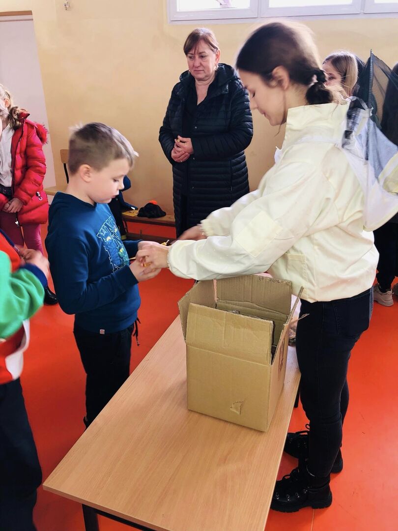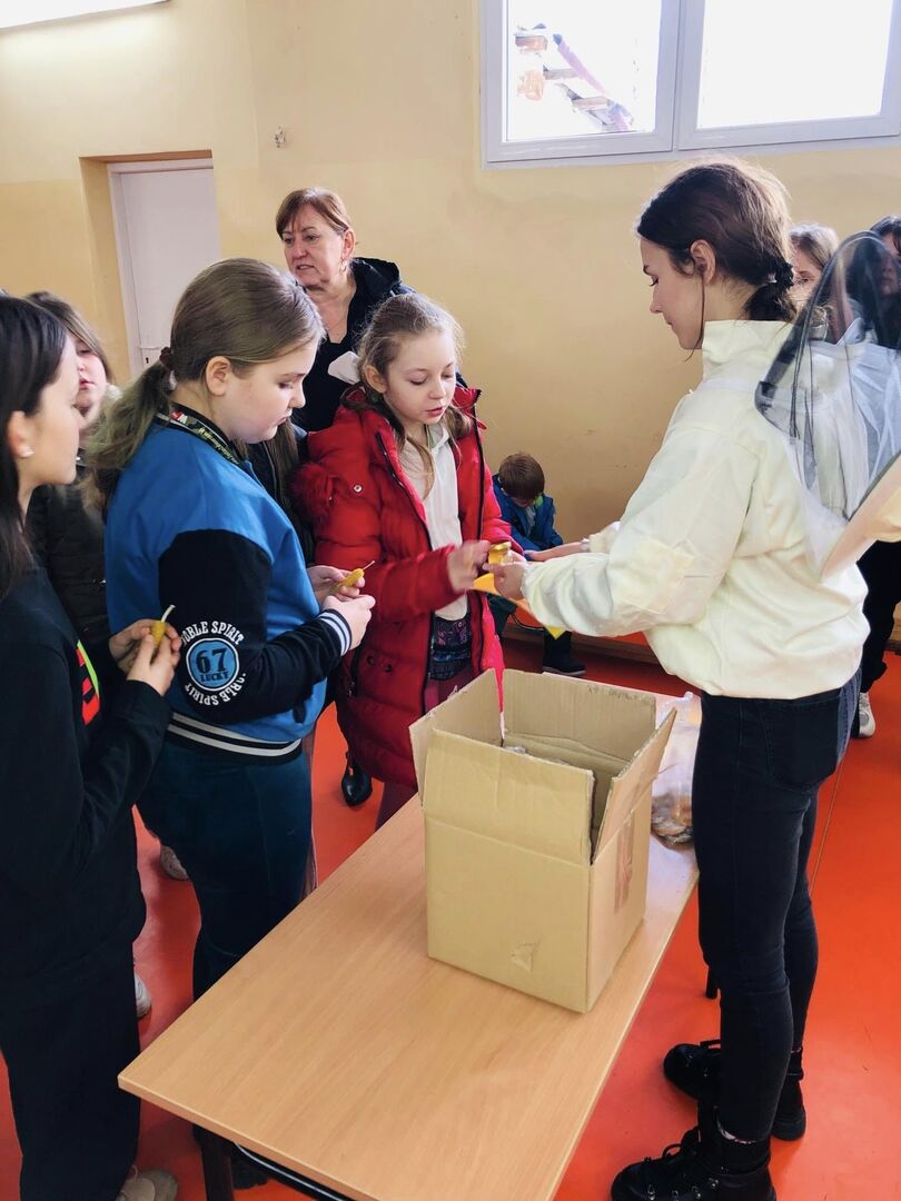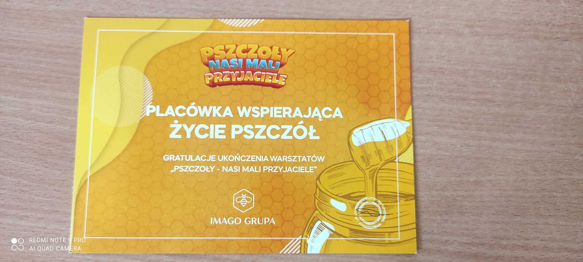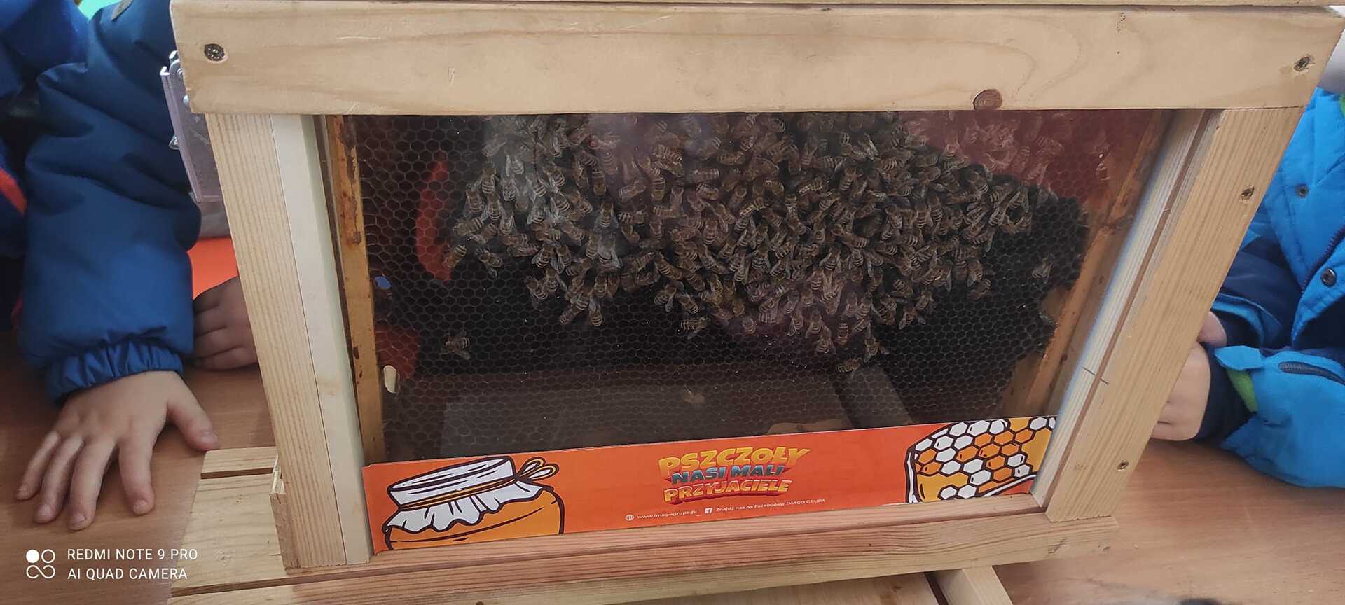 23 stycznia 2024 r. uczniowie naszej szkoły wzięli udział w warsztatach pszczelarskich zorganizowanych przez Grupę IMAGO, rodzinnie od wielu lat związaną z hodowlą pszczół. Prowadząca świetnie przeprowadzila żywą lekcję przyrody. Przybliżyła życie wymienionych owadów i role, jakie pełnią poszczególne osobniki (królowa, robotnice, trutnie). Zapoznała dzieci z procedurą powstawania miodu. Wszyscy mieli okazję obejrzenia żywych pszczół, a wśród nich królowej. Uczestnicy spotkania samodzielnie wykonali świeczki z wosku pszczelego. Na pamiątkę otrzymali dyplomy i odznaki pszczelarza. Był to pożytecznie spędzony czas w miłej atmosferze.