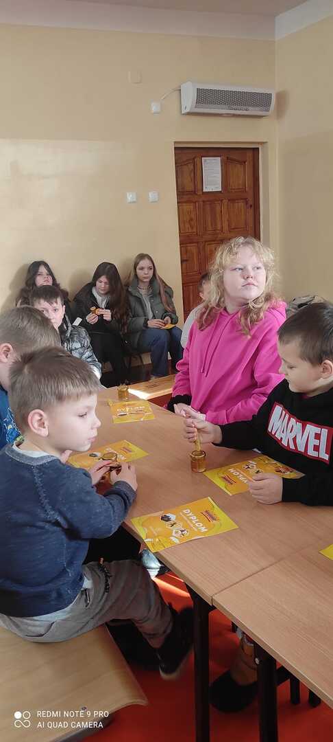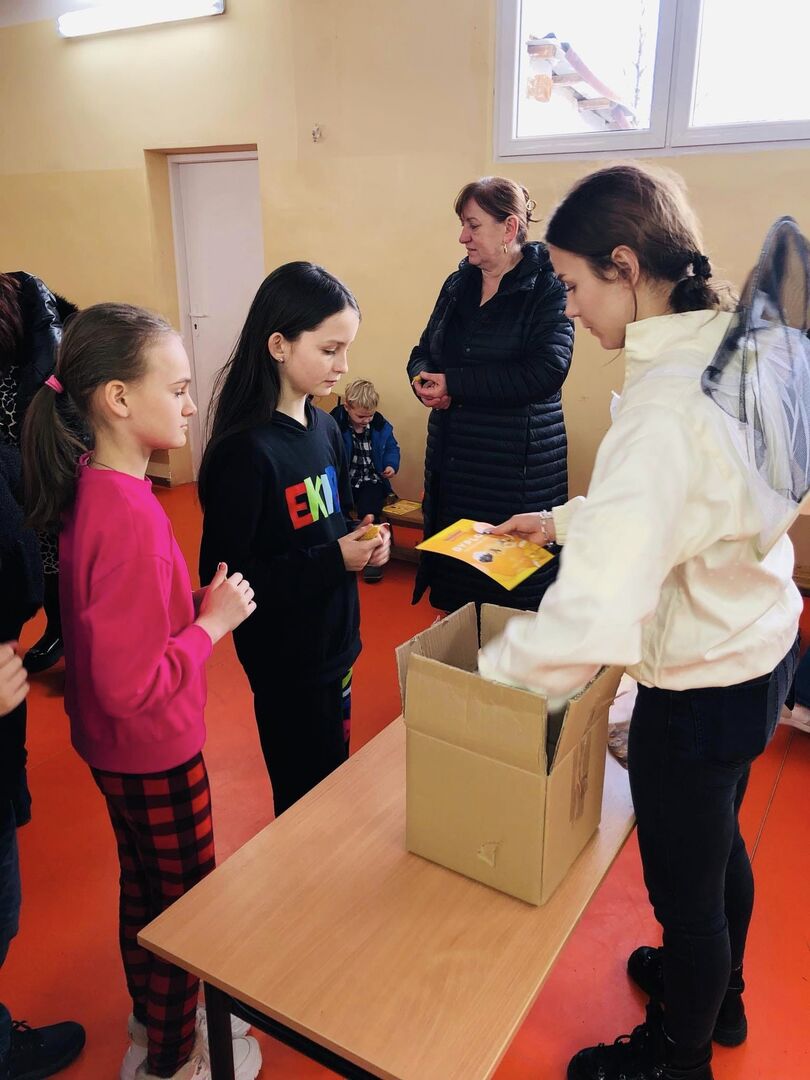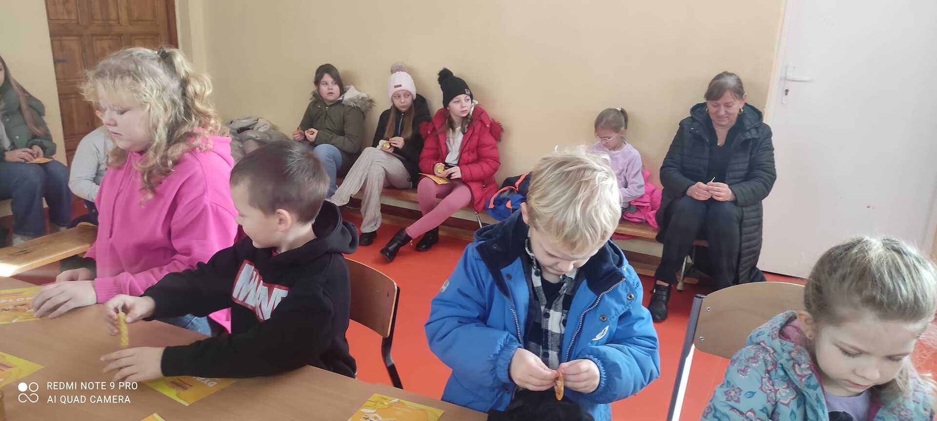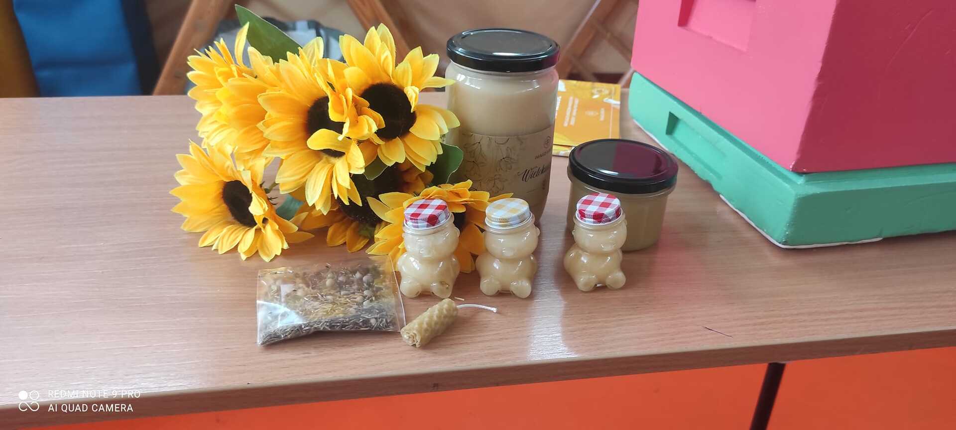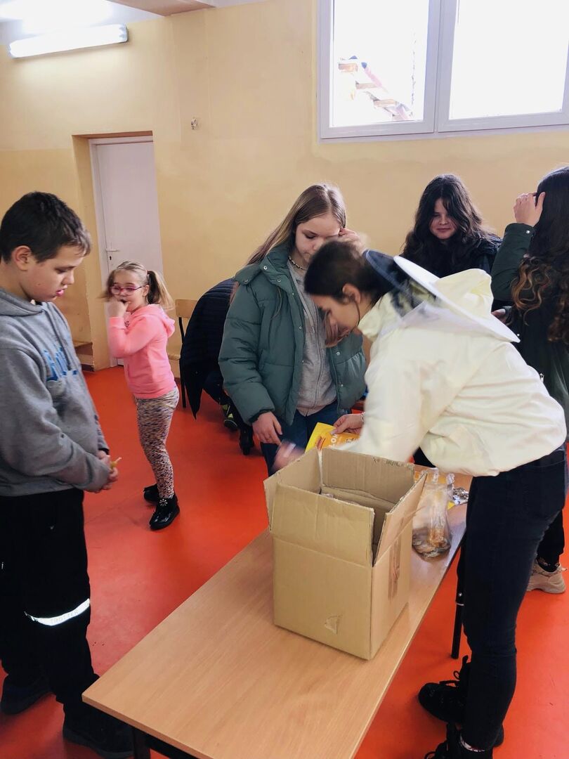 23 stycznia 2024 r. uczniowie naszej szkoły wzięli udział w warsztatach pszczelarskich zorganizowanych przez Grupę IMAGO, rodzinnie od wielu lat związaną z hodowlą pszczół. Prowadząca świetnie przeprowadzila żywą lekcję przyrody. Przybliżyła życie wymienionych owadów i role, jakie pełnią poszczególne osobniki (królowa, robotnice, trutnie). Zapoznała dzieci z procedurą powstawania miodu. Wszyscy mieli okazję obejrzenia żywych pszczół, a wśród nich królowej. Uczestnicy spotkania samodzielnie wykonali świeczki z wosku pszczelego. Na pamiątkę otrzymali dyplomy i odznaki pszczelarza. Był to pożytecznie spędzony czas w miłej atmosferze.