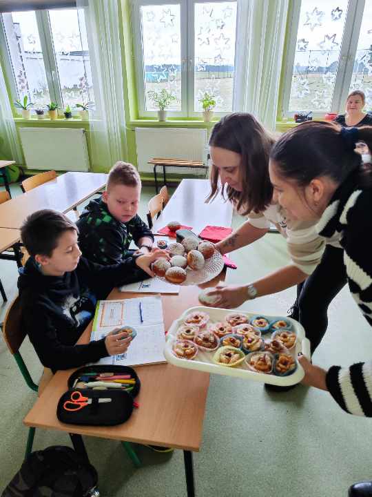 Tłusty czwartek to ostatni czwartek przed wielkim postem (czyli 52 dni przed Wielkanocą). Rozpoczyna on ostatni tydzień karnawału. W tym dniu dozwolone jest objadanie się. Rada Rodziców zadbała o to, by nasi uczniowie kultywowali karnawałowe tradycje. Od samego rana mamy biegały od klasy do klasy i częstowały upieczonymi w domowych warunkach pączkami i różami karnawałowymi. Wypieki były przepyszne 😋. Szkolna społeczność serdecznie dziękuje za miłą niespodziankę.