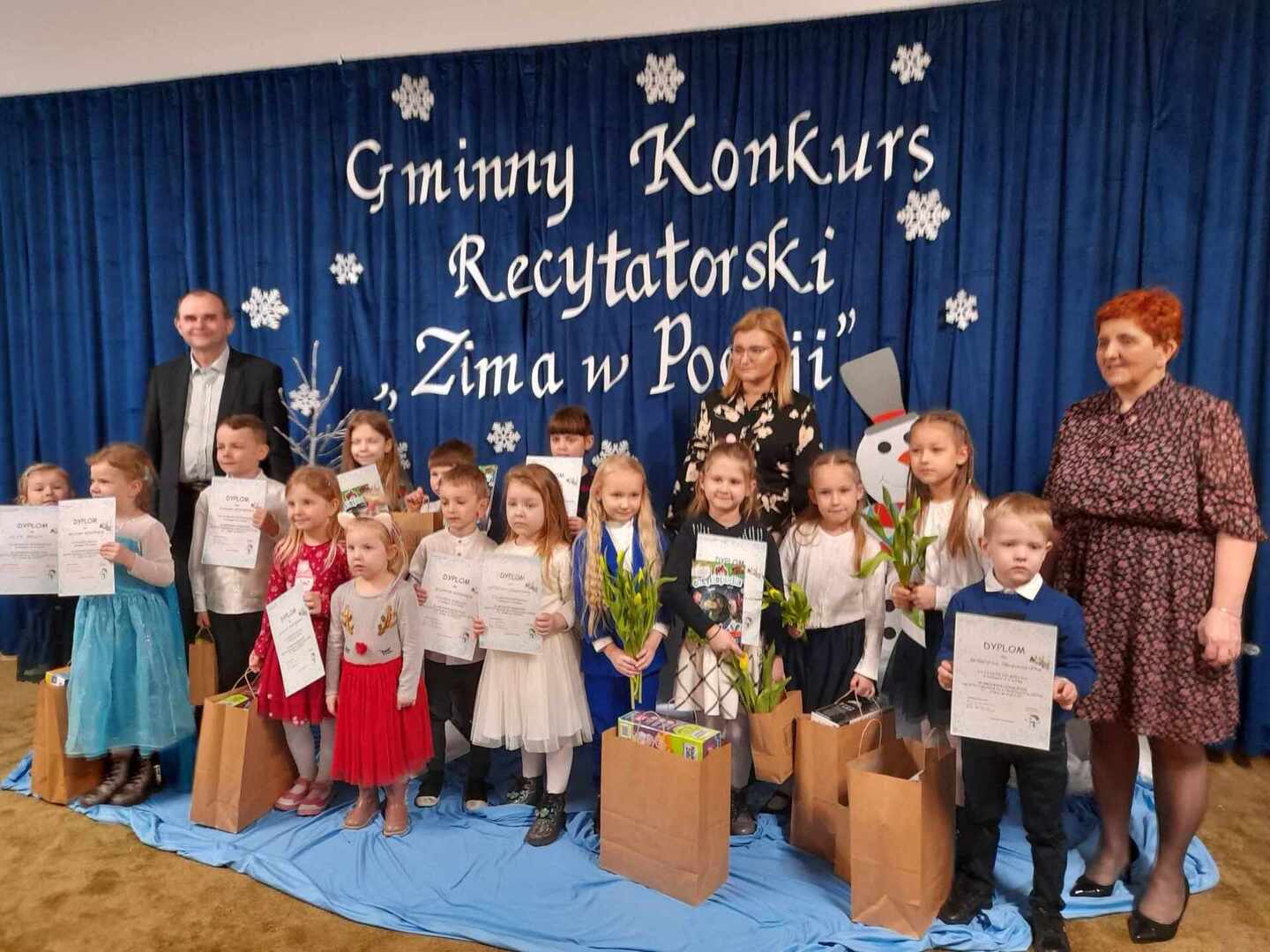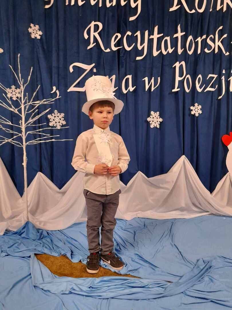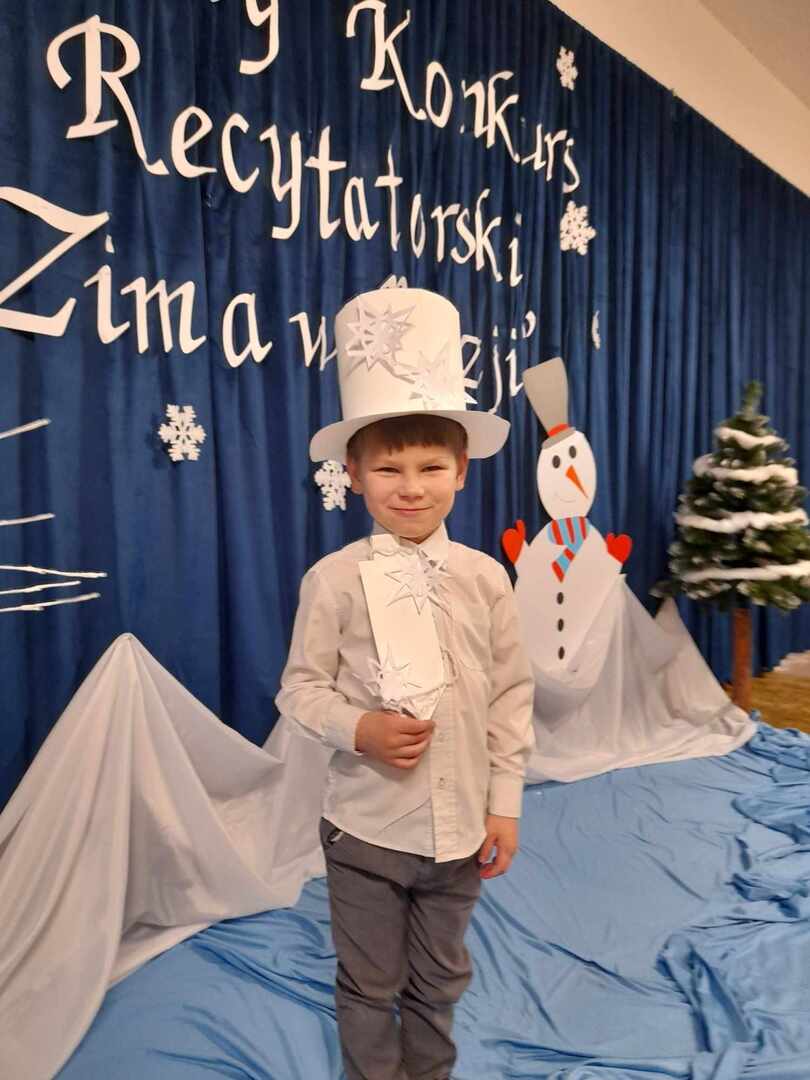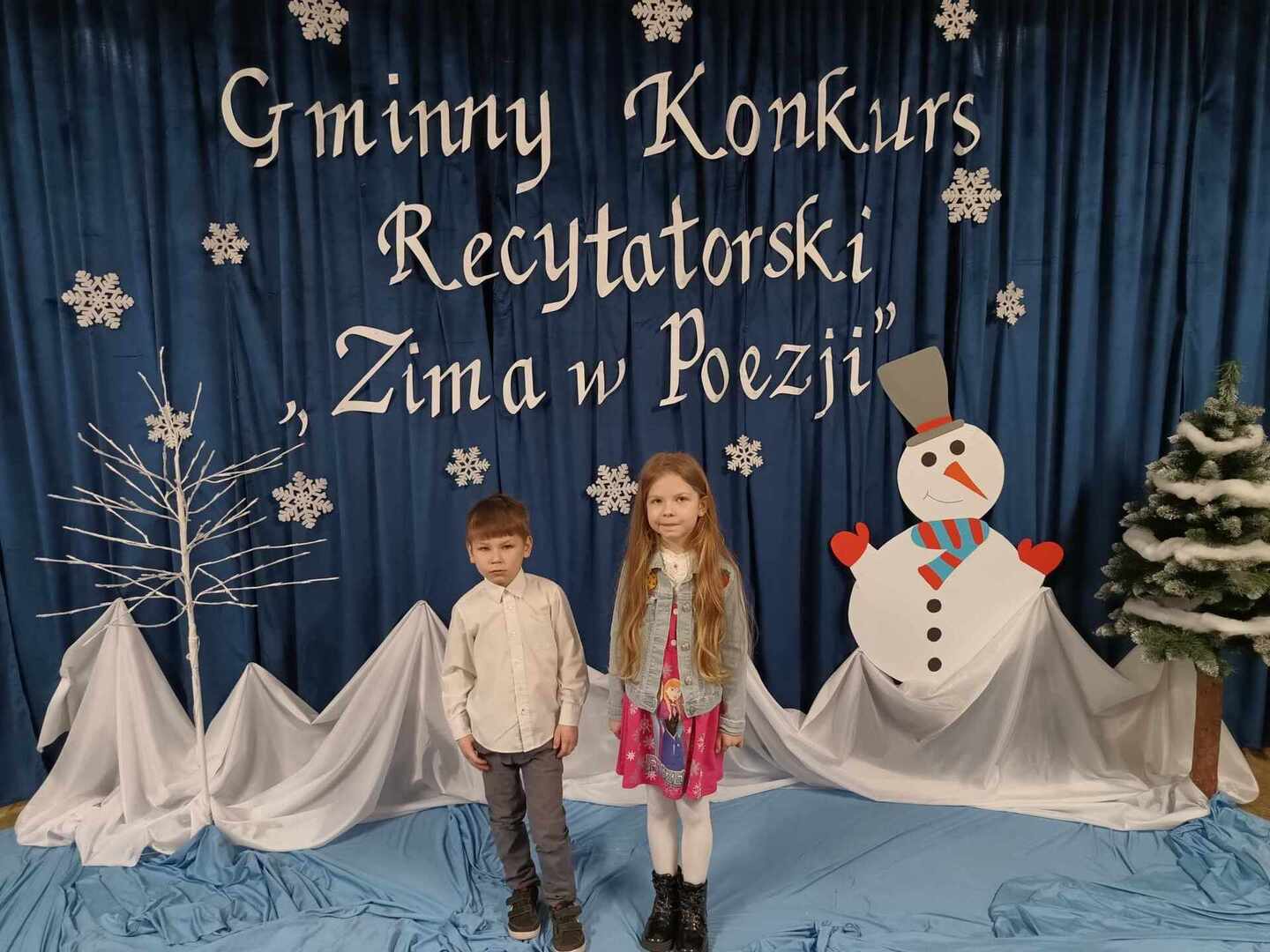 W dniu. 01.03.2024 r w Przedszkolu Publicznym w Kościelcu odbył się Gminny Konkurs Recytatorski pod hasłem: , Zima w poezji " z udziałem dzieci w wieku przedszkolnym. Naszą szkołę reprezentowali - Lena Rossa i Adam Jankiewicz. Nagrody dla wszystkich dzieci ufundował Wójt Gminy Kościelec - pan Dariusz Ostrowski. Dzieci prezentowały wiersze w dwóch kategoriach: młodszej - 3, 4- latki i starszej - 5, 6 - latki. Adaś Jankiewicz otrzymał wyróżnienie za recytację utworu , Przyjechała zima wozem" L. Krzemienieckiej. Lenka prezentowała wiersz Barbary Kossuth ,Bałwan ze śniegu". Gratulujemy naszym przedszkolakom oraz ich rodzicom za zaangażowanie w przygotowanie strojów i rekwizytów!