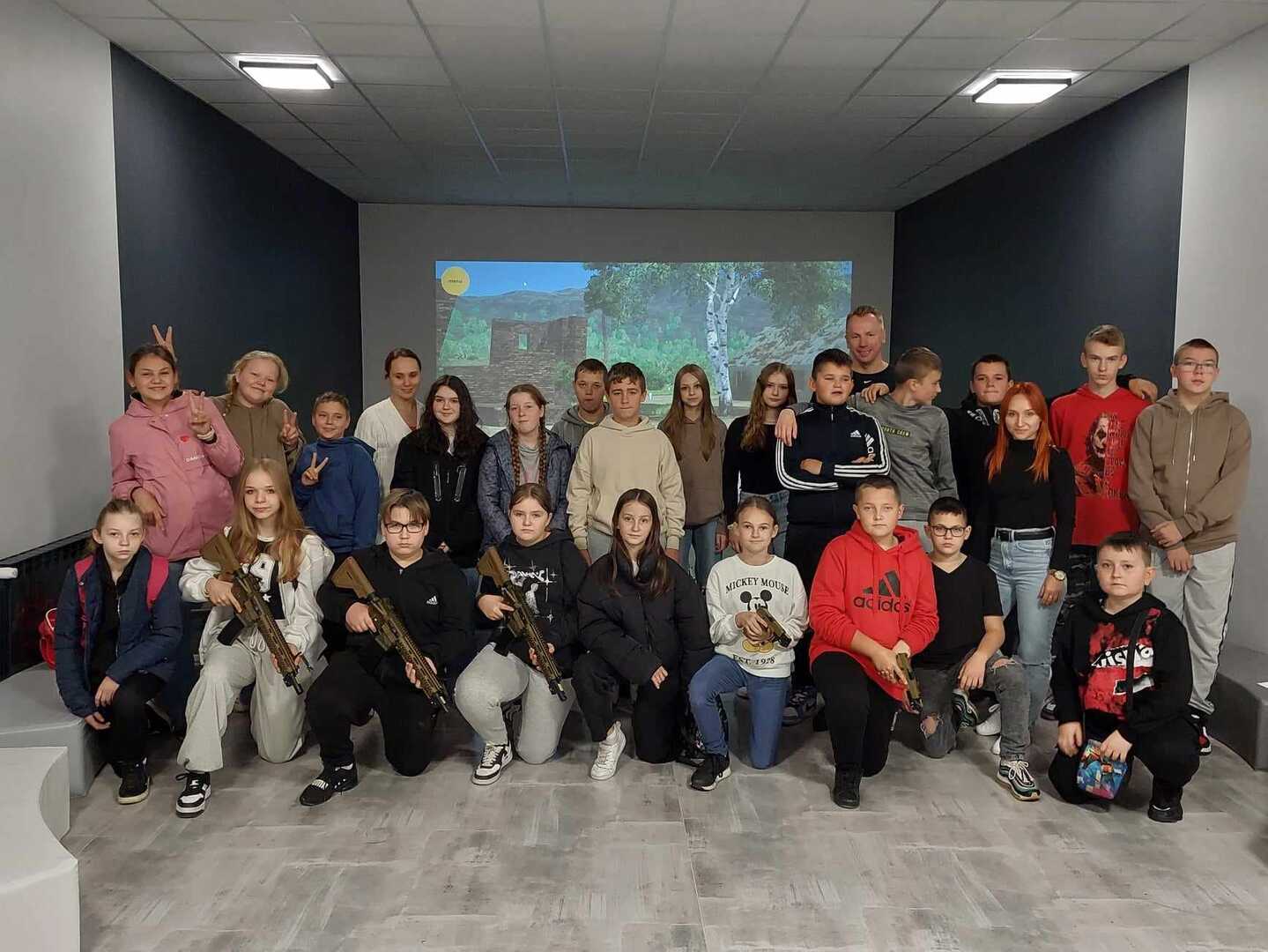 W ramach edukacji proobronnej uczniowie naszej szkoły z klas 5-8 udali się dzisiaj z wizytą do Zespołu Szkół Technicznych w Kole przy ul. Kolejowej, gdzie uczestniczyli w szkoleniu strzeleckim w wirtualnej strzelnicy.