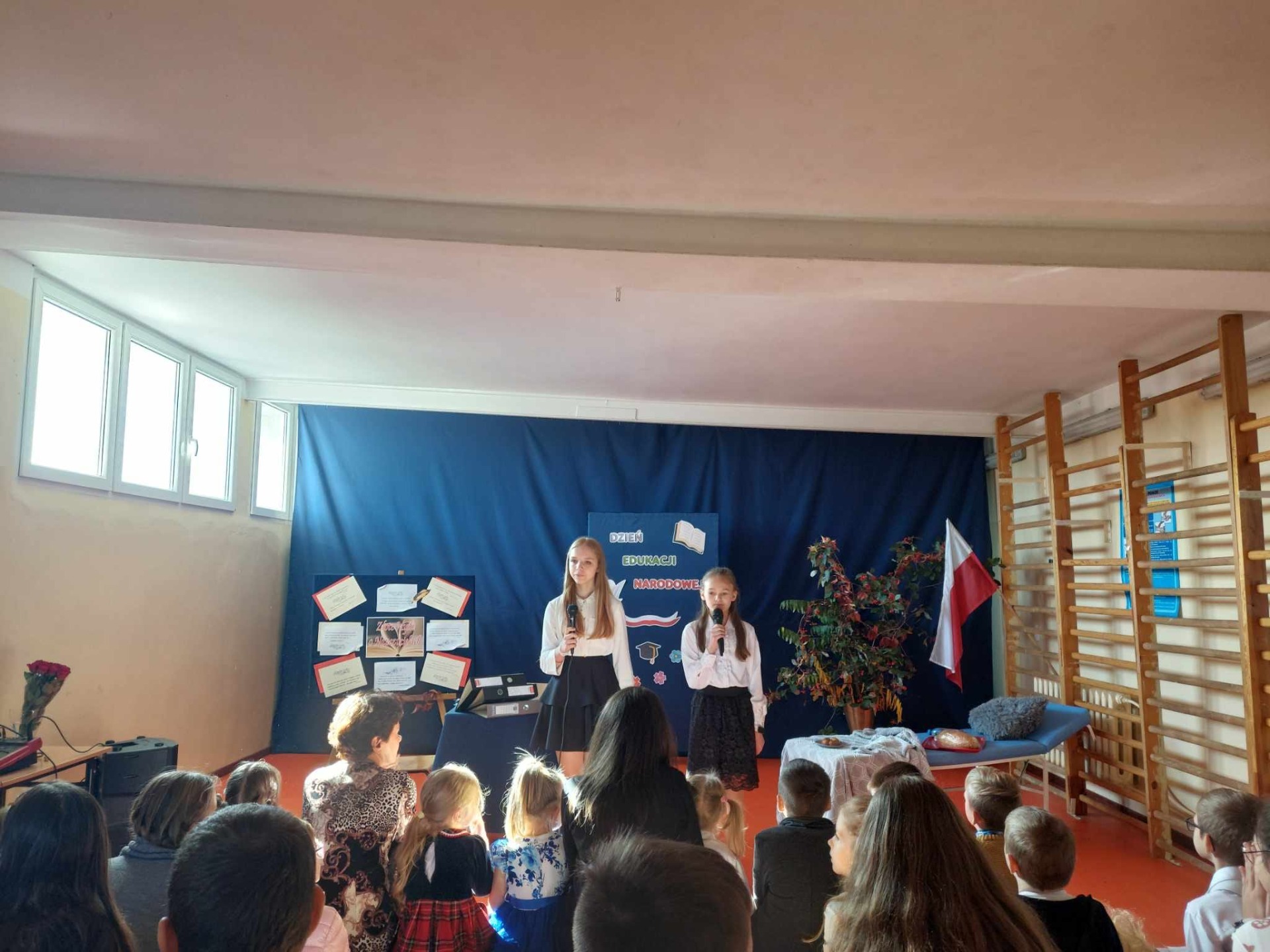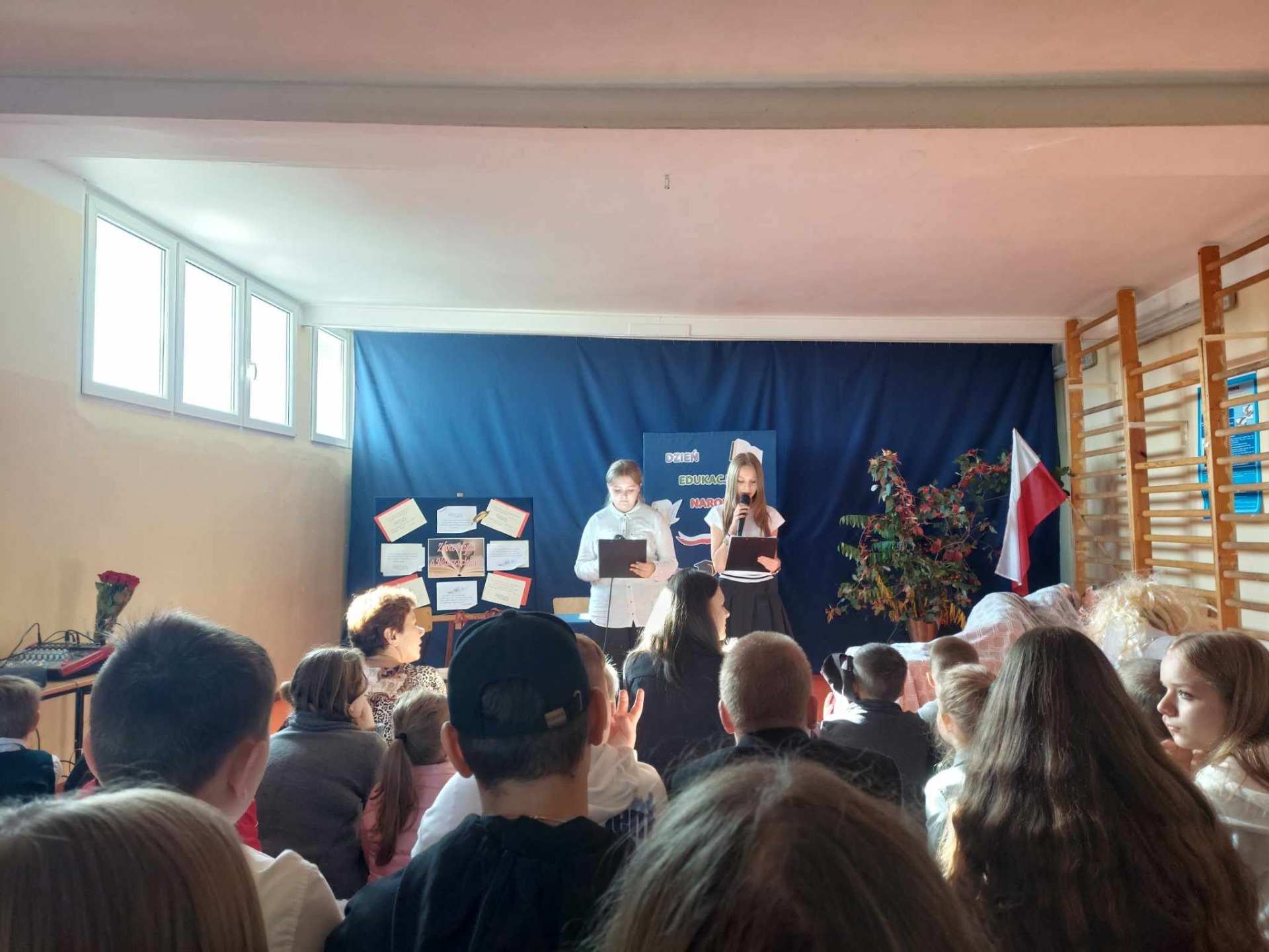 W miniony piątek, zgromadziliśmy się wszyscy w naszej szkole, aby świętować ten dzień. Jako pierwsza głos zabrała pani dyrektor, Katarzyna Czartek, która powitała zebranych oraz podziękowała za przybycie. Swą obecnością zaszczycili nas tego dnia emerytowani nauczyciele. Następnie na scenę wkroczyli nasi uczniowie, którzy podkreślili rolę nauczycieli i potrzebę kształcenia. Młodzi artyści w scenkach z życia szkoły pokazali trudną i mozolną pracę pedagogiczną. Humorystyczne scenki dopełniła wesoła muzyka.
