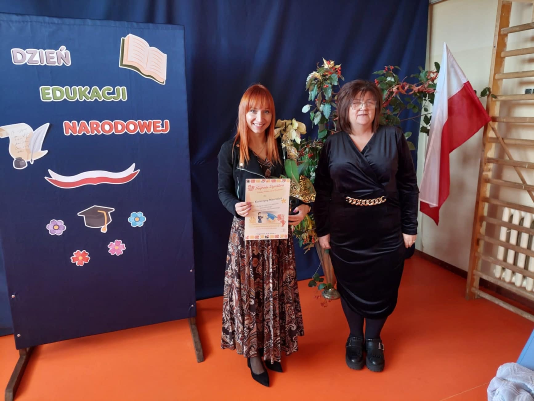 Jak co roku, pani Dyrektor wręczyła Nagrody Dyrektora wybranym nauczycielom i pracownikom obsługi za dotychczasowy wkład pracy w funkcjonowanie naszej placówki. Gratulacje otrzymała pani Katarzyna Marciniak z okazji uzyskania awansu na nauczyciela mianowanego w sesji zimowej roku szkolnego 2023/2024.