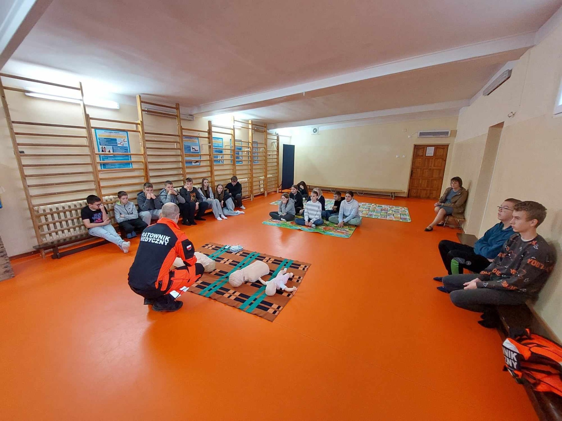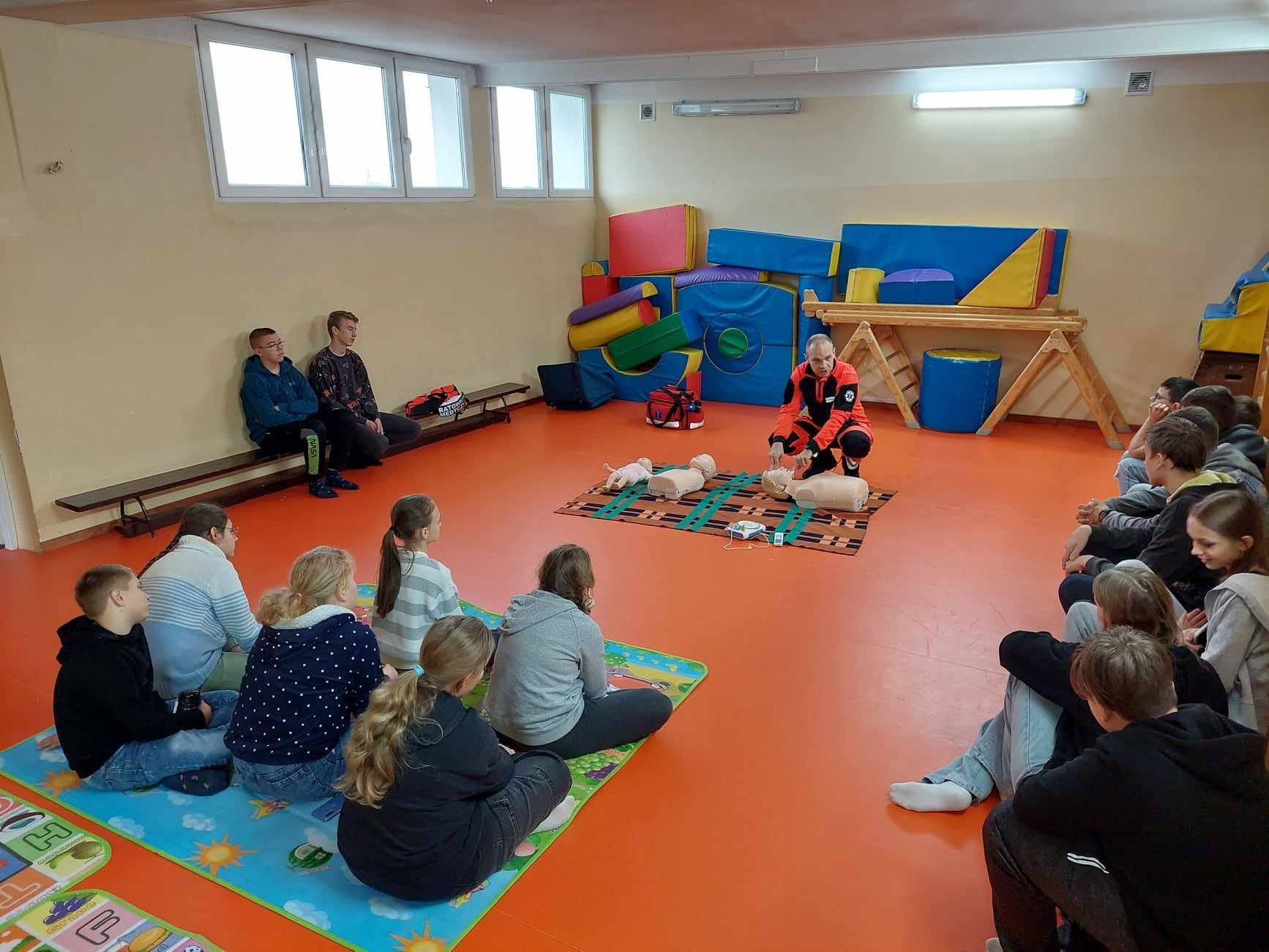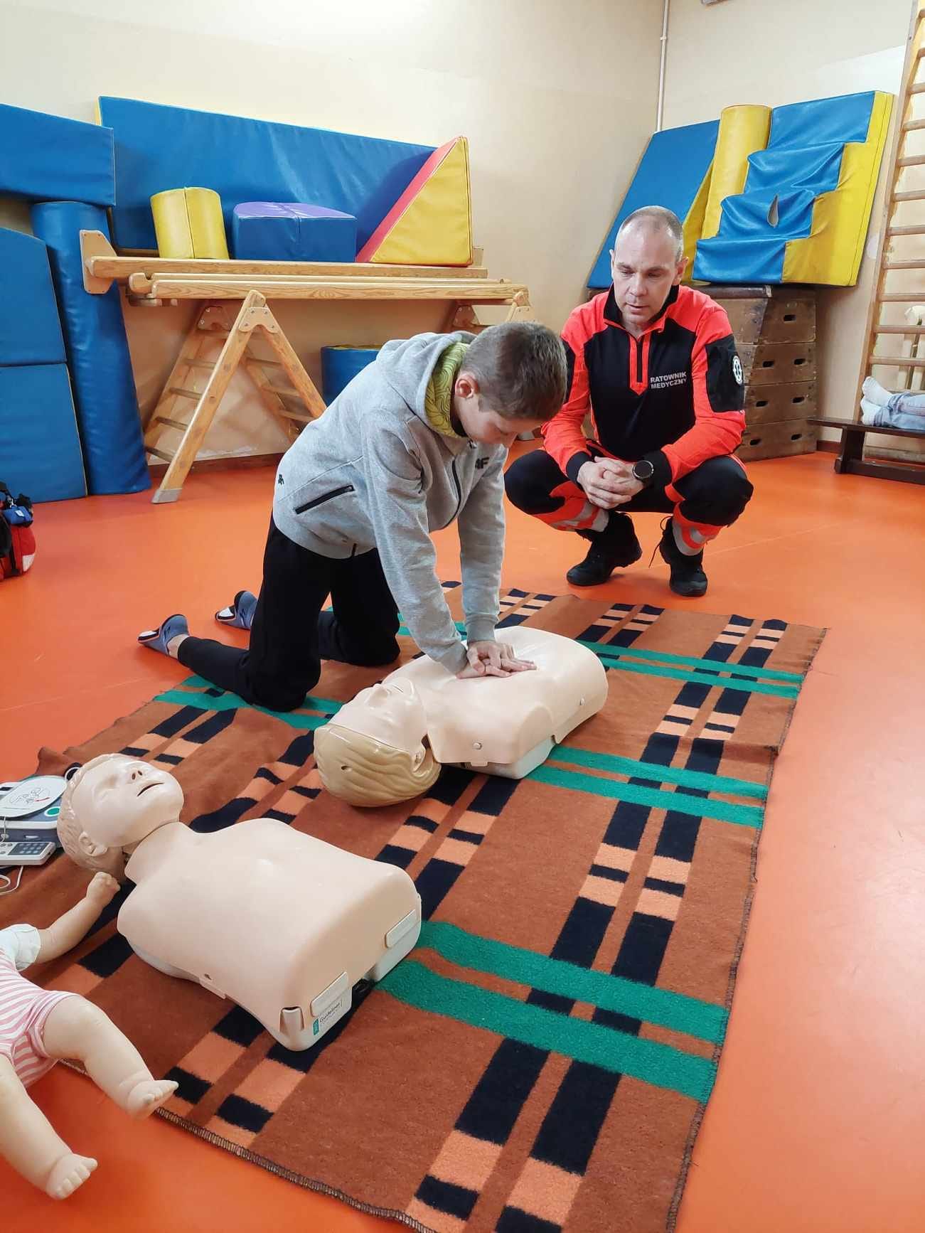 Uczniowie naszej szkoły w czasie szkolenia, które odbyło się 29 października 2024 r. poznali zasady, jak we właściwy sposób reagować na wypadek, jak udzielać i wzywać pomoc. Szkolenie z zakresu udzielania pierwszej pomocy przedmedycznej przeprowadził p. Radosław Rossa, ratownik medyczny i zarazem druh OSP w Trzęśniewie. Spotkanie odbyło się w dwóch grupach wiekowych, klasy 0–V i klasy VI-VIII, obejmowało część teoretyczną oraz praktyczną. W czasie szkolenia uczniowie mieli okazję poćwiczyć na fantomie, jak sprawdzić przytomność osoby poszkodowanej oraz wzywanie pomocy. Dowiedzieli się o niebezpiecznych sytuacjach i zachowaniach w otoczeniu i w życiu codziennym.