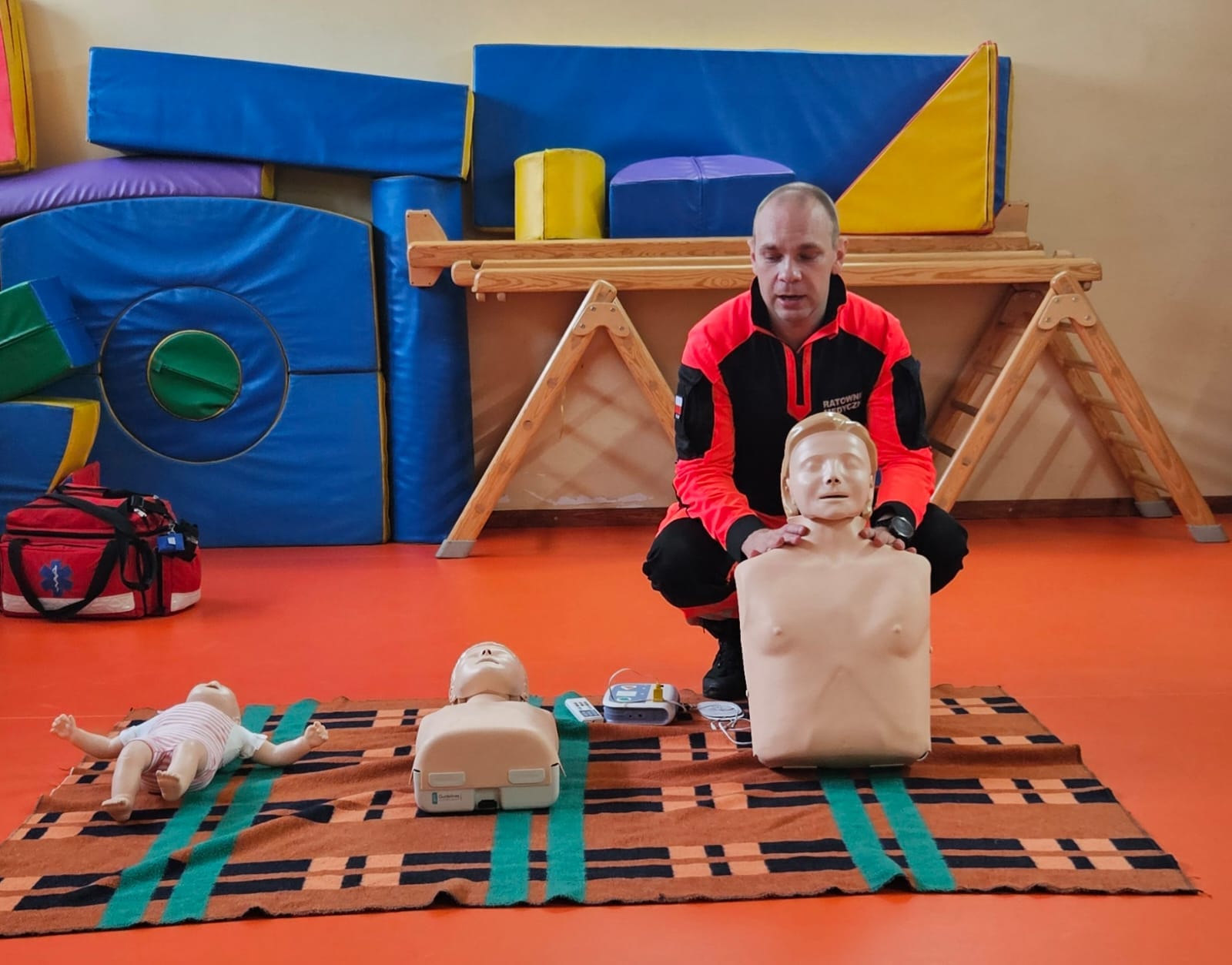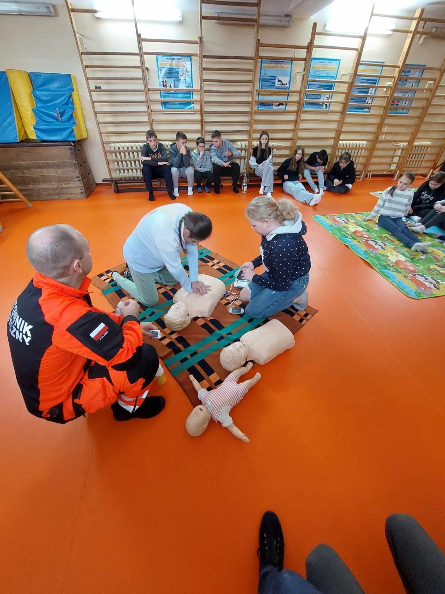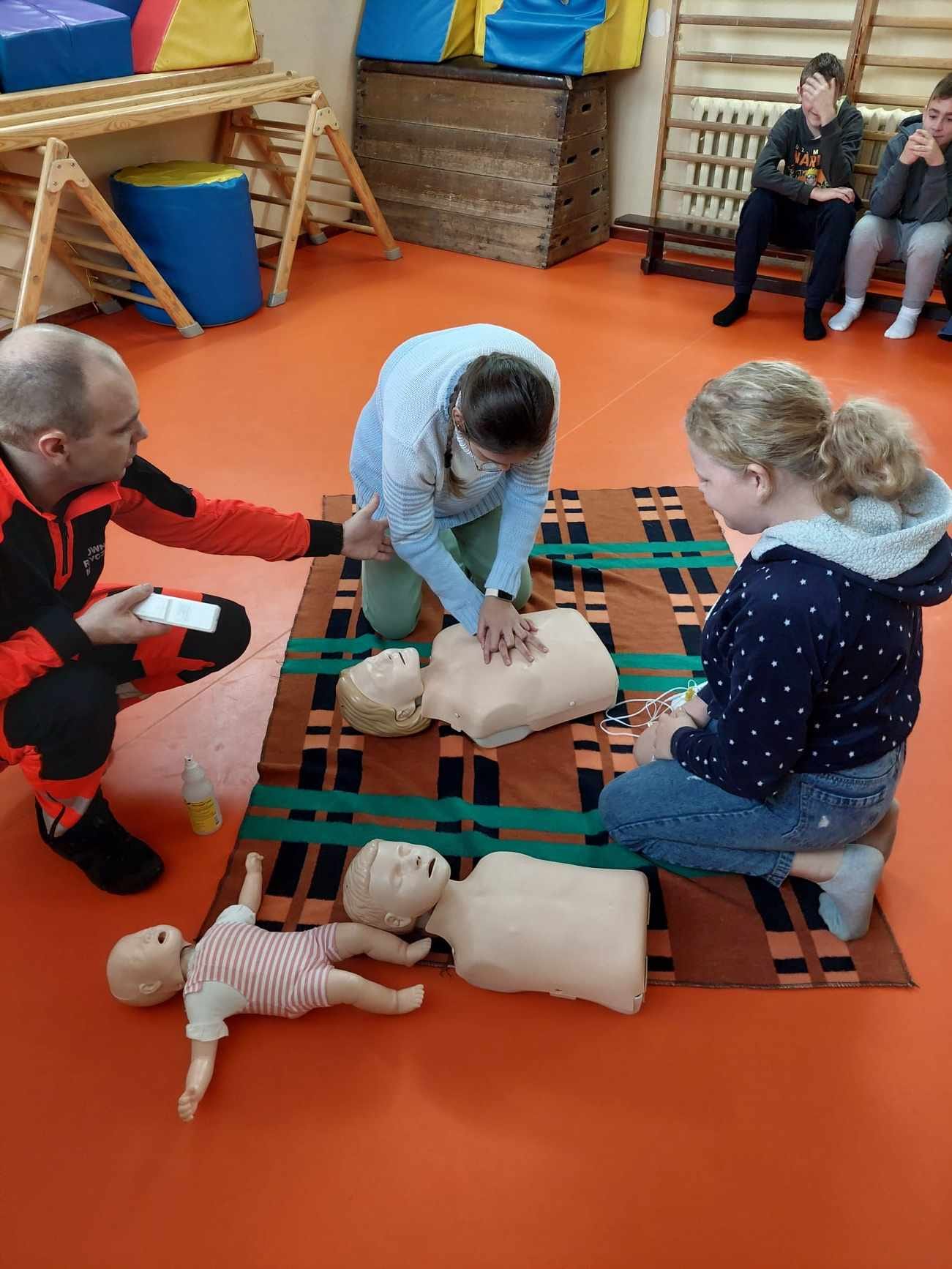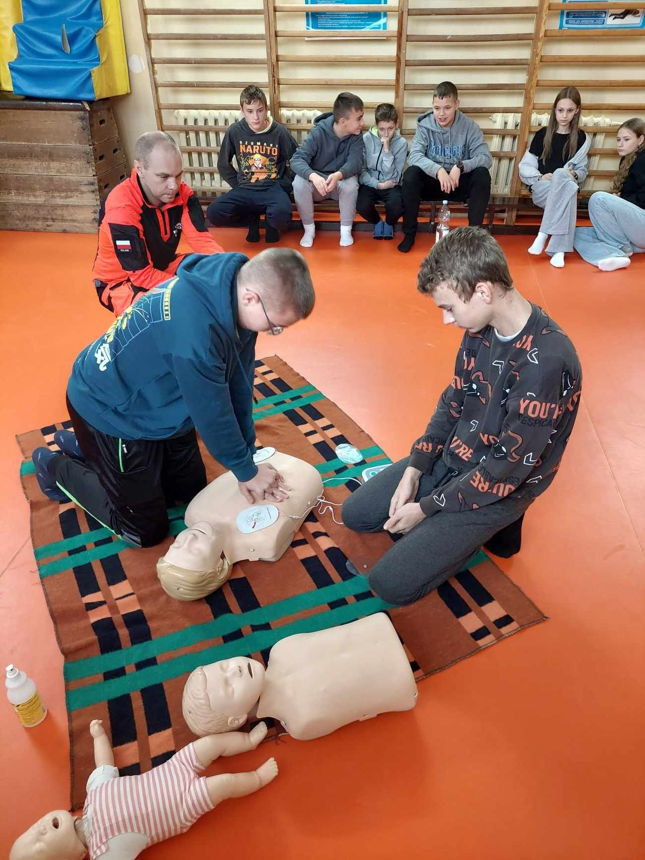 Uczniowie naszej szkoły w czasie szkolenia, które odbyło się 29 października 2024 r. poznali zasady, jak we właściwy sposób reagować na wypadek, jak udzielać i wzywać pomoc. Szkolenie z zakresu udzielania pierwszej pomocy przedmedycznej przeprowadził p. Radosław Rossa, ratownik medyczny i zarazem druh OSP w Trzęśniewie. Spotkanie odbyło się w dwóch grupach wiekowych, klasy 0–V i klasy VI-VIII, obejmowało część teoretyczną oraz praktyczną. W czasie szkolenia uczniowie mieli okazję poćwiczyć na fantomie, jak sprawdzić przytomność osoby poszkodowanej oraz wzywanie pomocy. Dowiedzieli się o niebezpiecznych sytuacjach i zachowaniach w otoczeniu i w życiu codziennym.