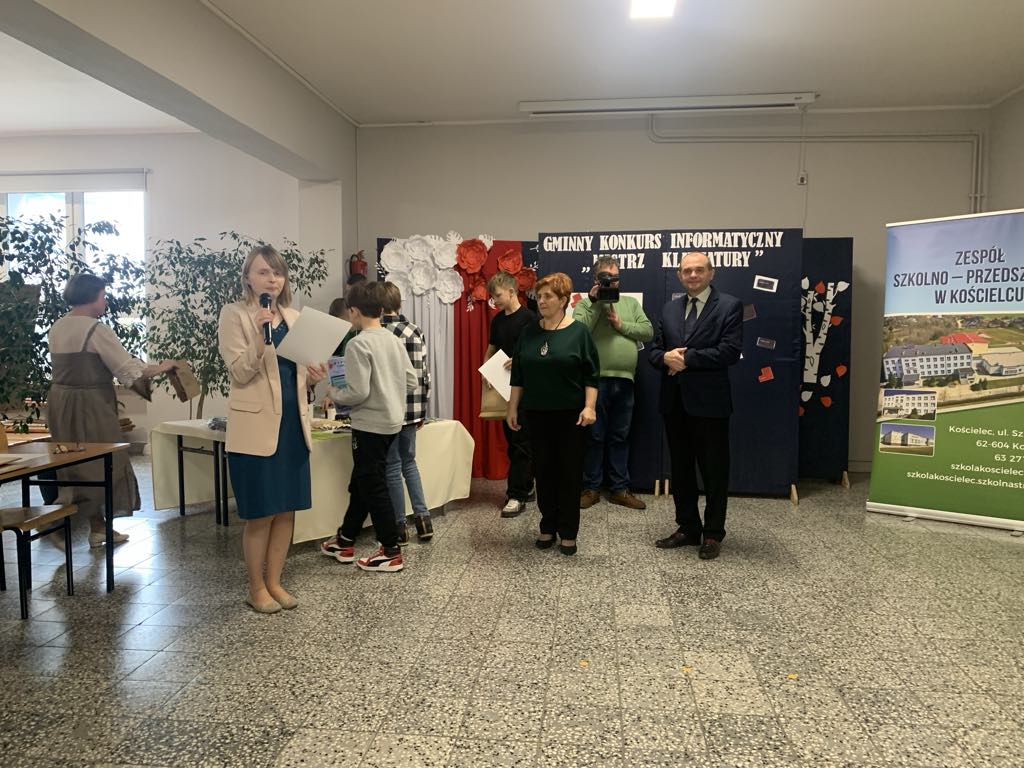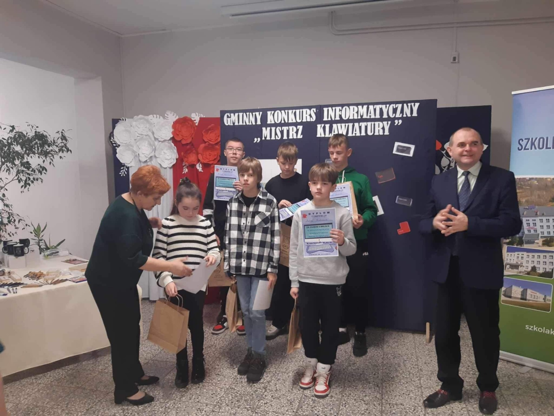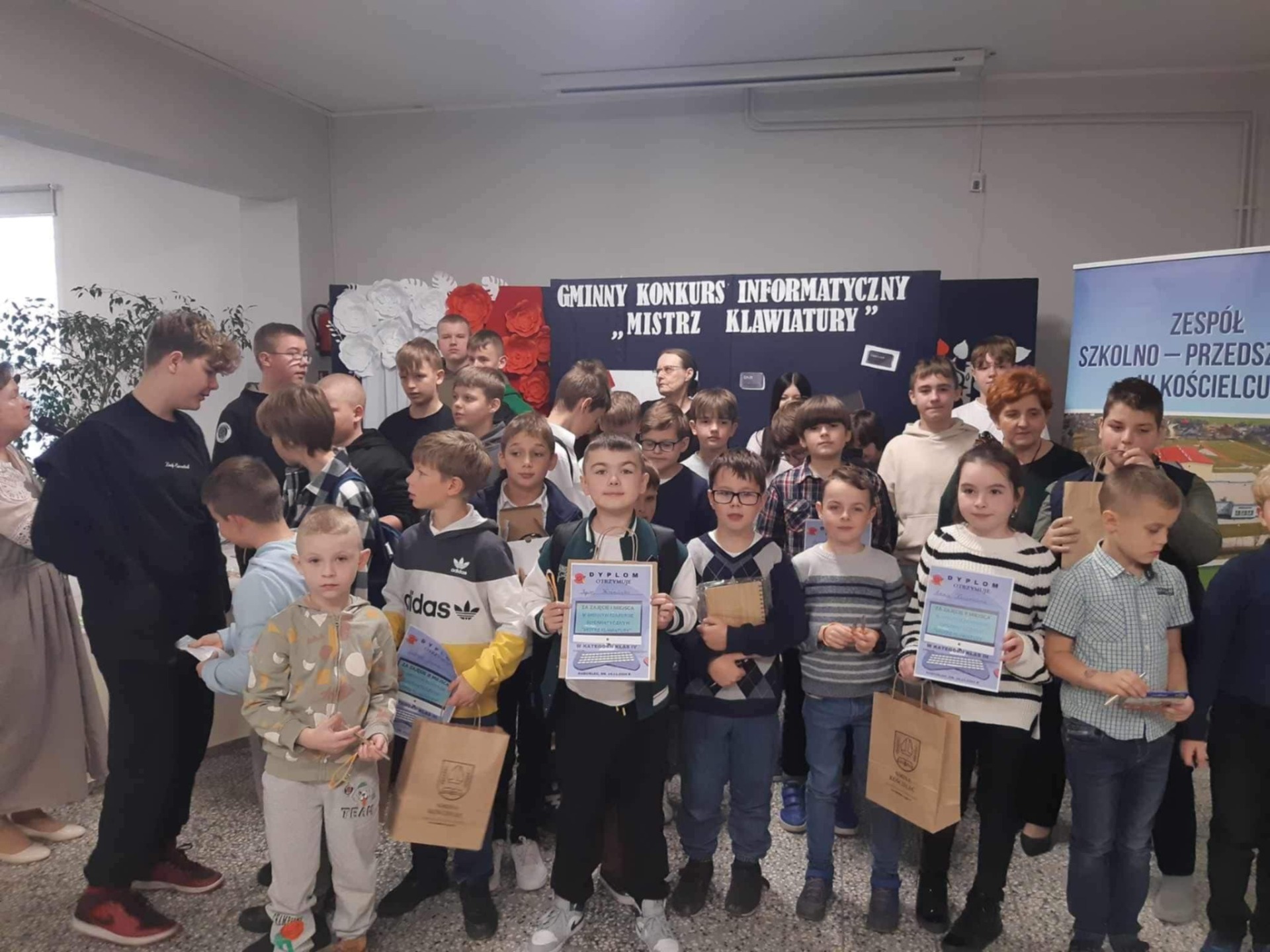14 listopada 2024 r.w Zespole Szkolno- Przedszkolnym w Kościelcu odbył się Gminny Konkurs Informatyczny "Mistrz Klawiatury " . Naszą szkołę reprezentowało siedmioro uczniów: Michał Kałużny (kl. II), Gabriel Jankiewicz (kl. III), Wiktor Pacholski (kl. IV), Szymon Mrozowski (kl. V), Nikola Pawlak (kl. VI), Oskar Pasternak (kl. VII), Hubert Szkudlarek (kl. VIII). Konkurs odbywał się w dwóch grupach wiekowych. W grupie klas I - III Gabriel Jankiewicz zajął III miejsce. W grupie klas IV - VIII Hubert Szkudlarek zajął II miejsce.