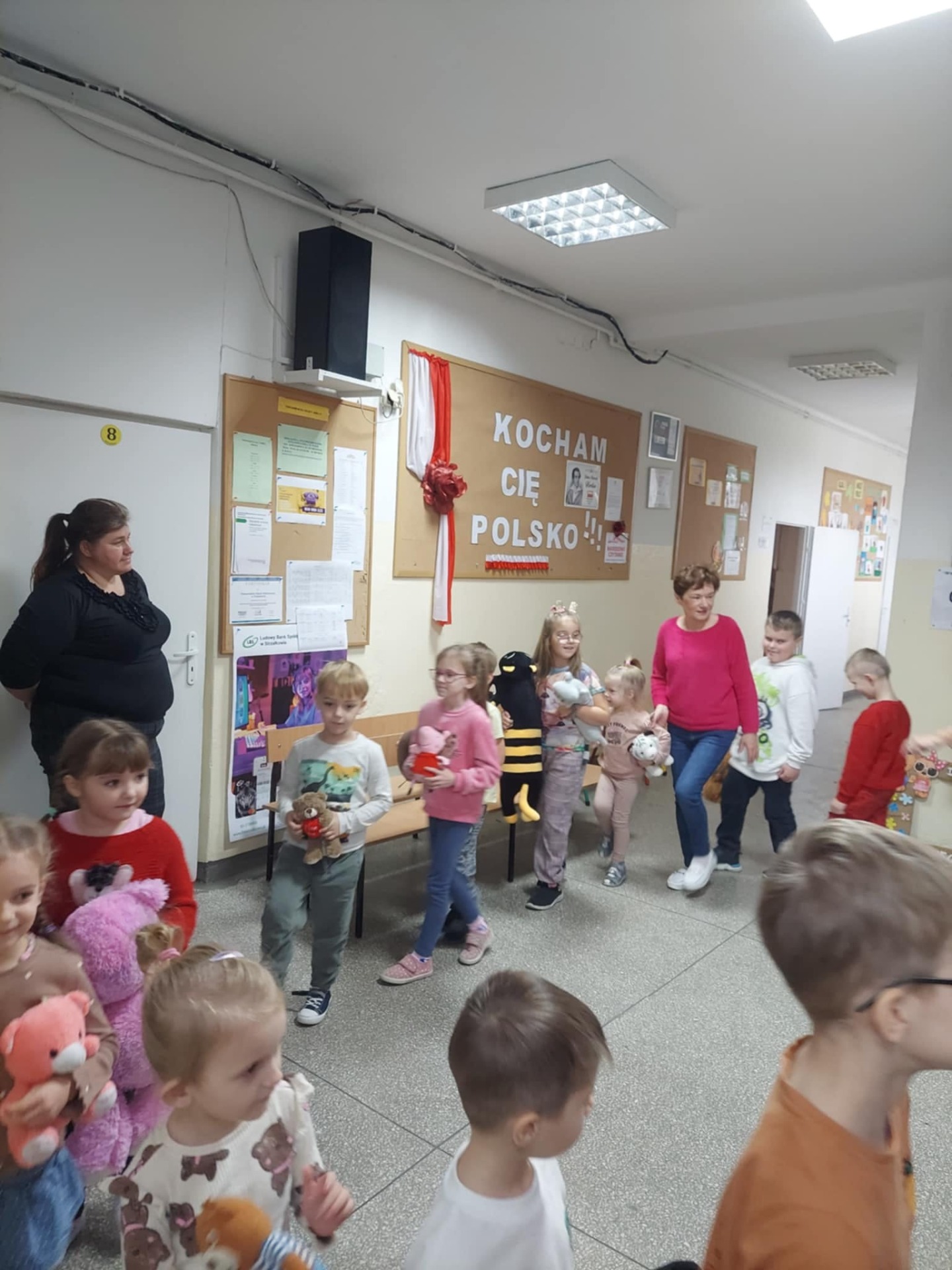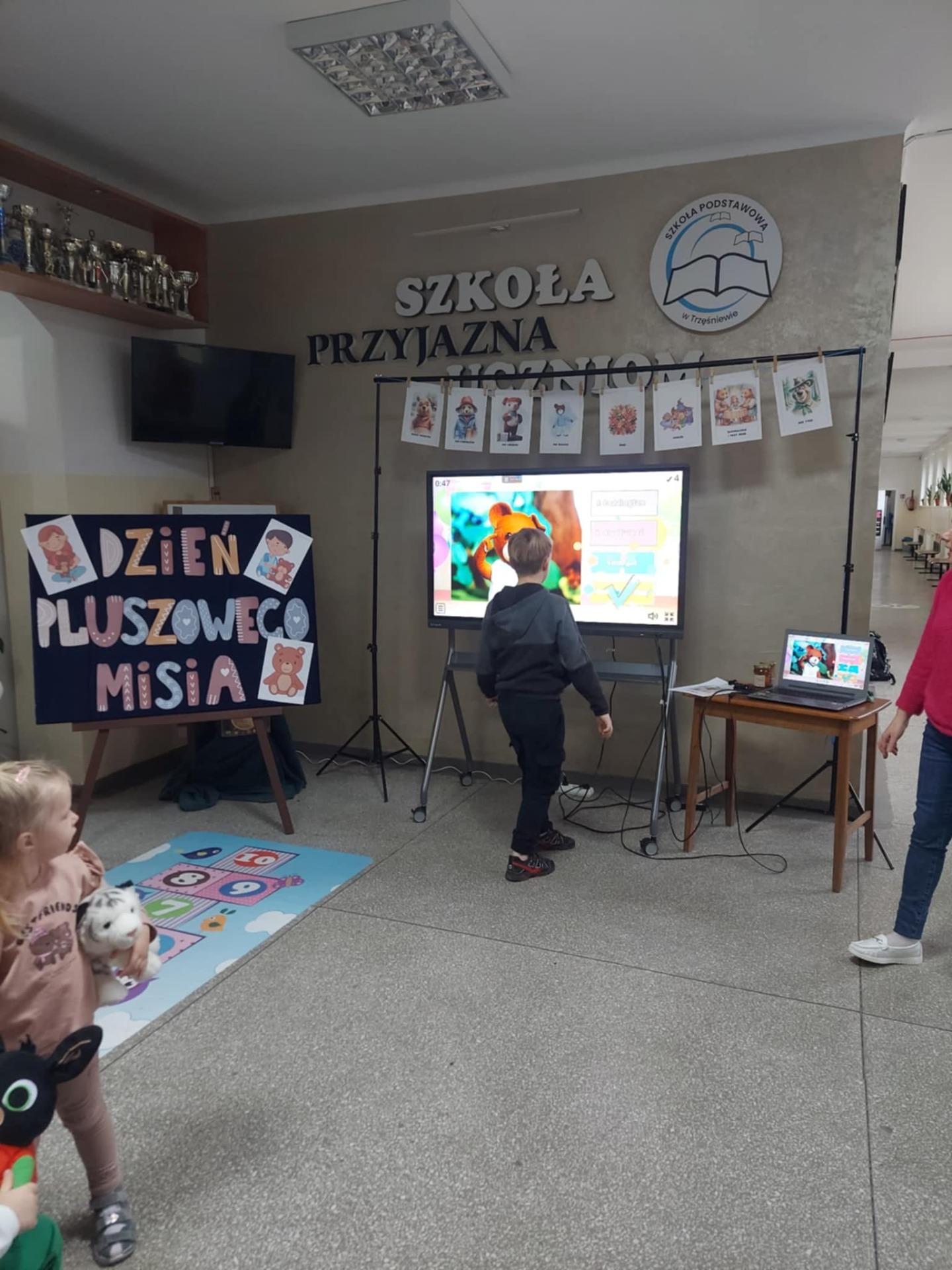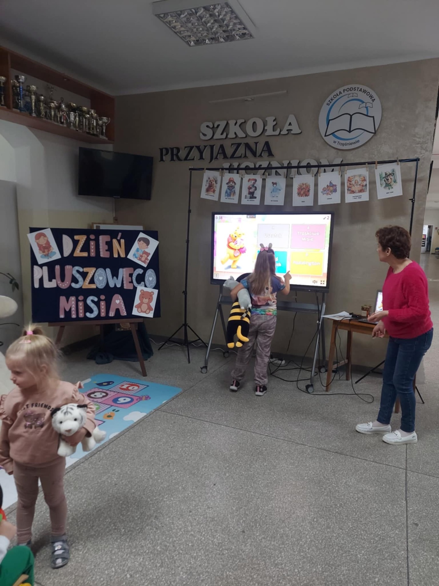 26 listopada 2024 r. w naszej szkole odbył się Dzień Pluszowego Misia. Uczniowie klas 0- III w tym dniu przyniesli do szkoły swoje ulubione misie. Dzieci z uwagą wysłuchały historii powstania pierwszego pluszowego misia, świetnie poradziły sobie z rozpoznawaniem wielu sławnych misiów, np. Kubusia Puchatka, Misia Uszatka, Colargola, Misia Yogi . Znakomicie rozwiązywały zagadki i quizy dotyczące szczegółowych cech misiów z ekranu. Po prezentacji pluszowych przytulanek wspólnie brały udział w zabawach ruchowych i muzycznych. Zwieńczeniem dnia były wykonane przez dzieci prace plastyczne z wizerunkiem pluszowych przyjaciół. Wszystkie dzieci otrzymały dyplomy przyjaciela pluszowego misia. To był wspaniały dzień pełen wrażeń i dobrej zabawy w towarzystwie misiowym!