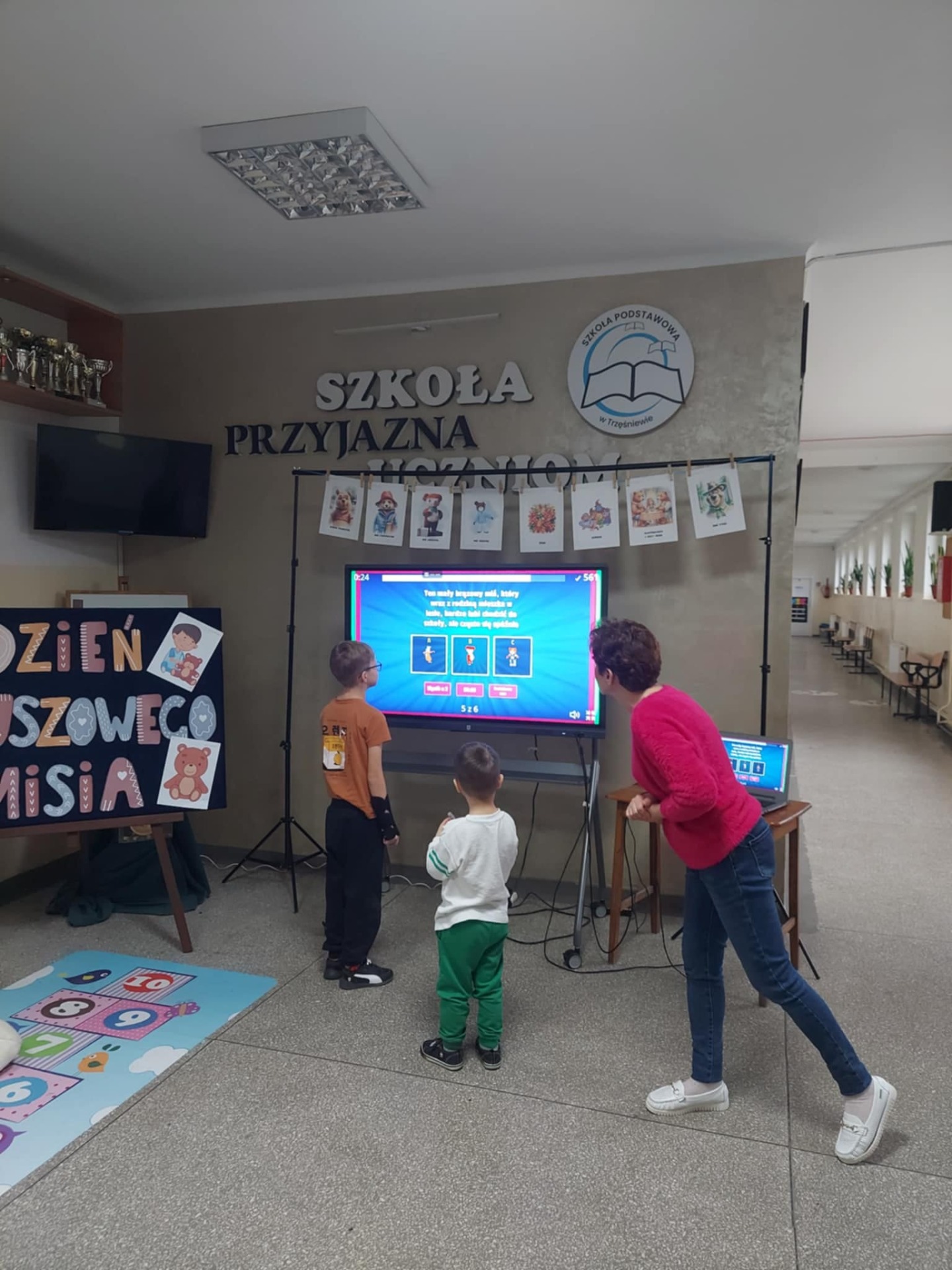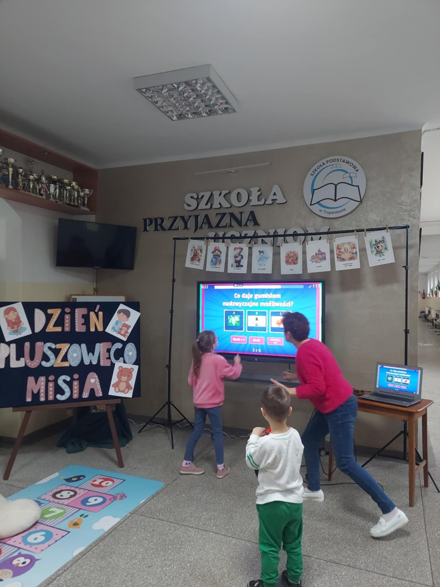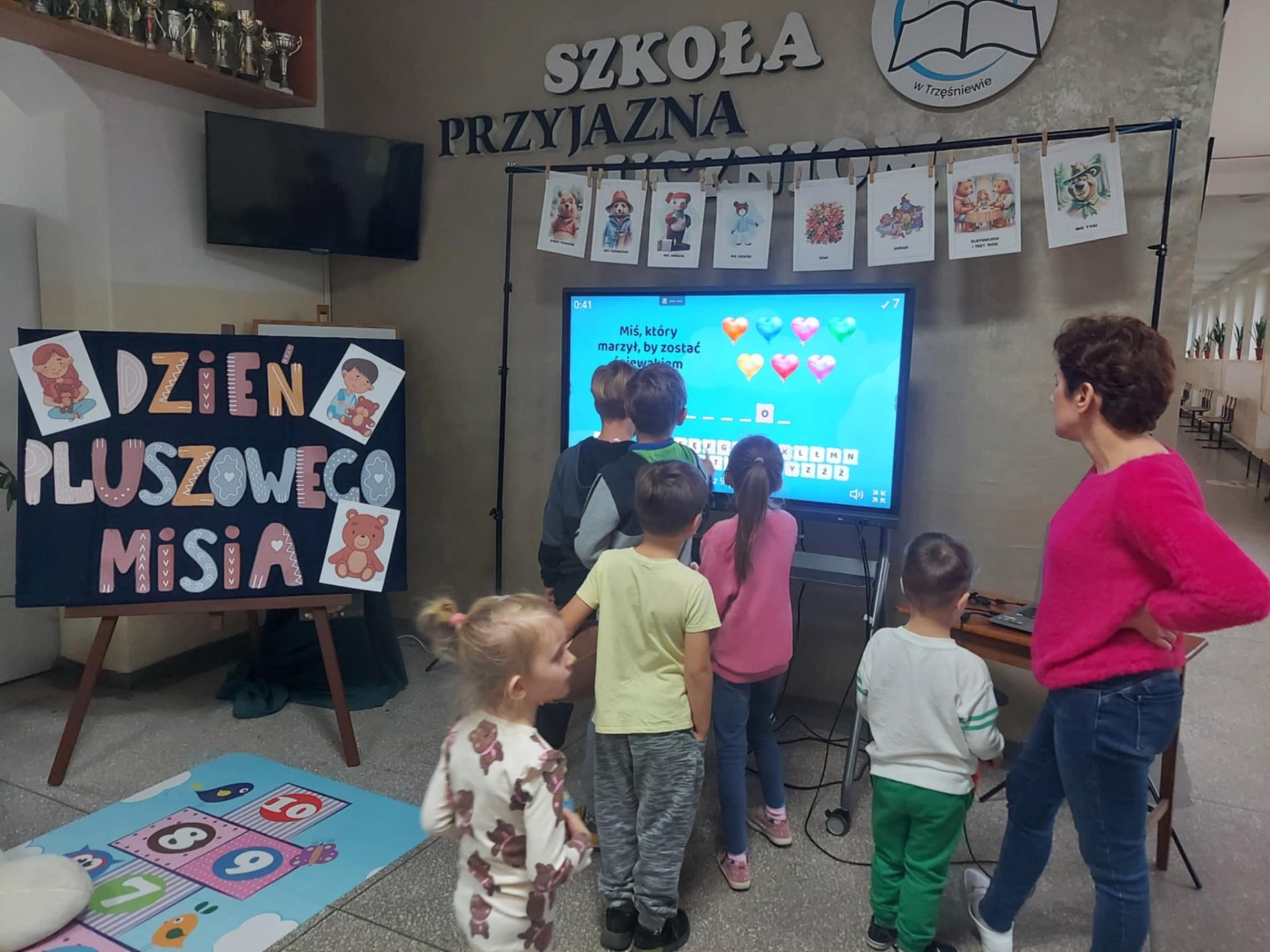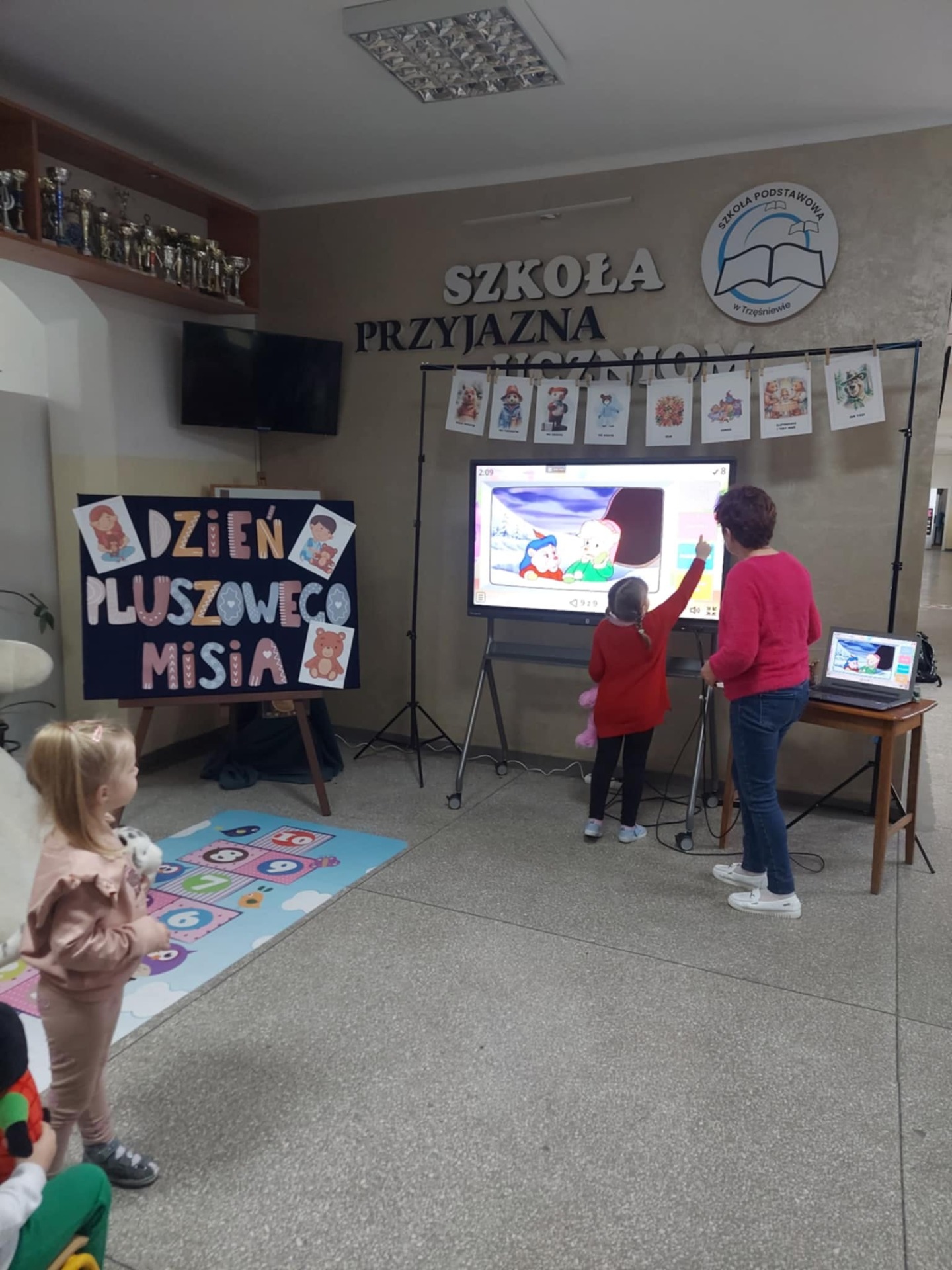 26 listopada 2024 r. w naszej szkole odbył się Dzień Pluszowego Misia. Uczniowie klas 0- III w tym dniu przyniesli do szkoły swoje ulubione misie. Dzieci z uwagą wysłuchały historii powstania pierwszego pluszowego misia, świetnie poradziły sobie z rozpoznawaniem wielu sławnych misiów, np. Kubusia Puchatka, Misia Uszatka, Colargola, Misia Yogi . Znakomicie rozwiązywały zagadki i quizy dotyczące szczegółowych cech misiów z ekranu. Po prezentacji pluszowych przytulanek wspólnie brały udział w zabawach ruchowych i muzycznych. Zwieńczeniem dnia były wykonane przez dzieci prace plastyczne z wizerunkiem pluszowych przyjaciół. Wszystkie dzieci otrzymały dyplomy przyjaciela pluszowego misia. To był wspaniały dzień pełen wrażeń i dobrej zabawy w towarzystwie misiowym!