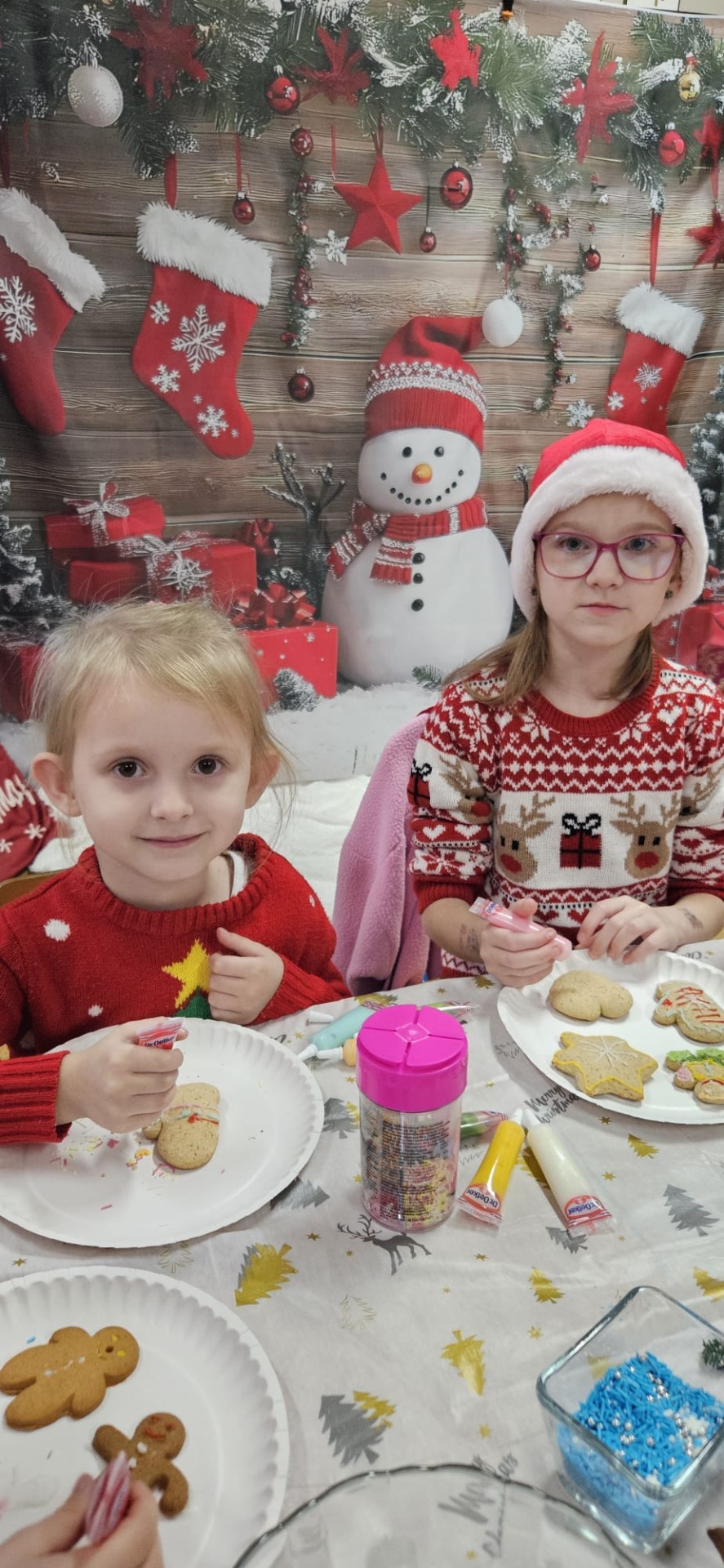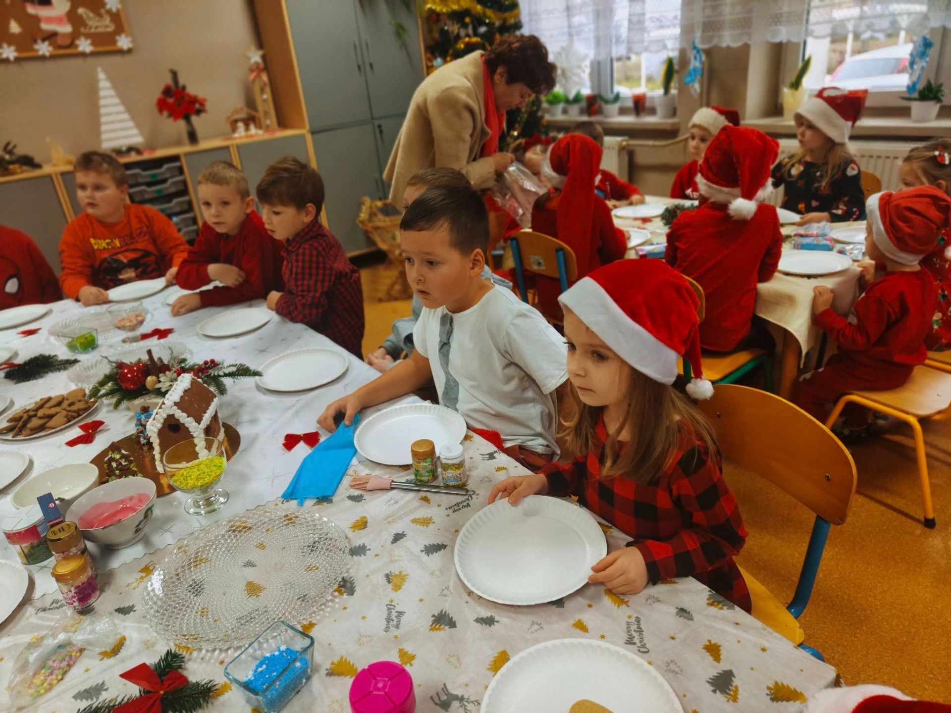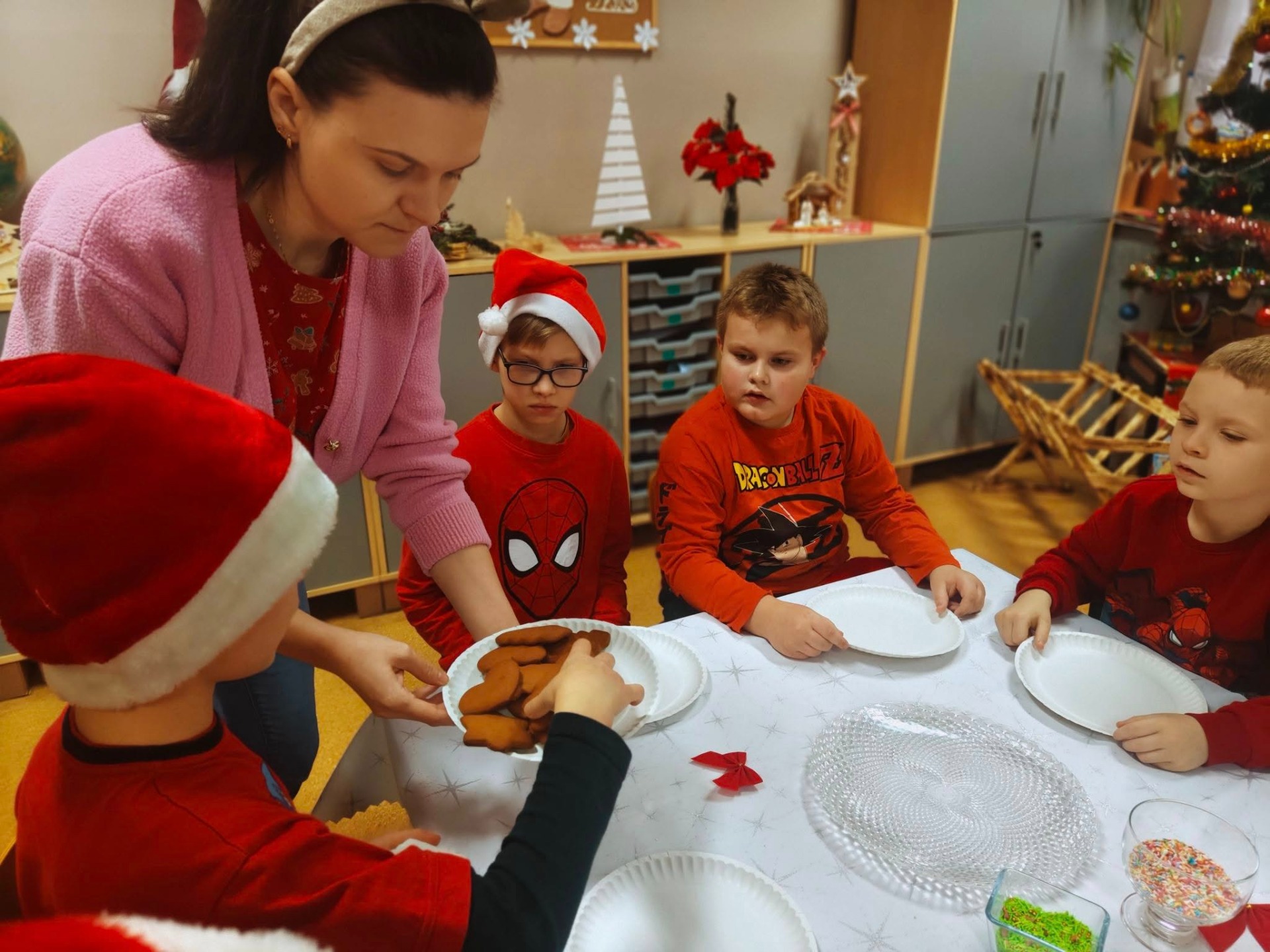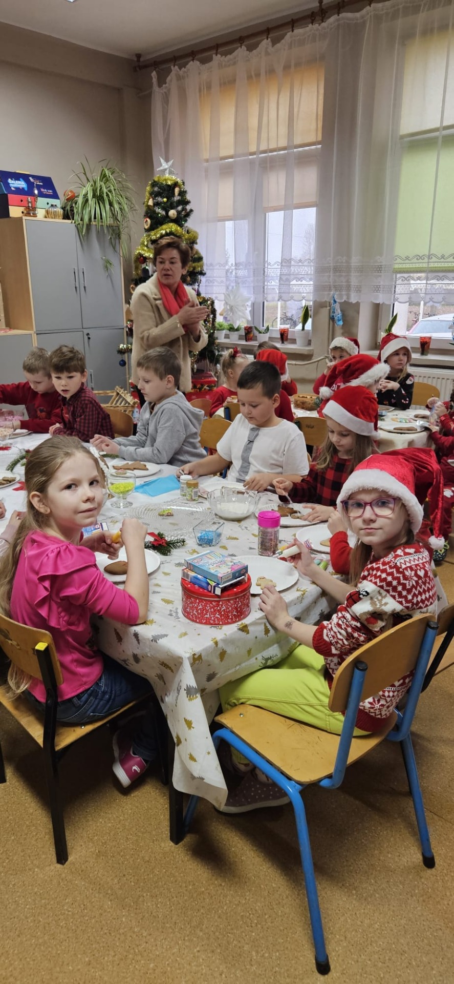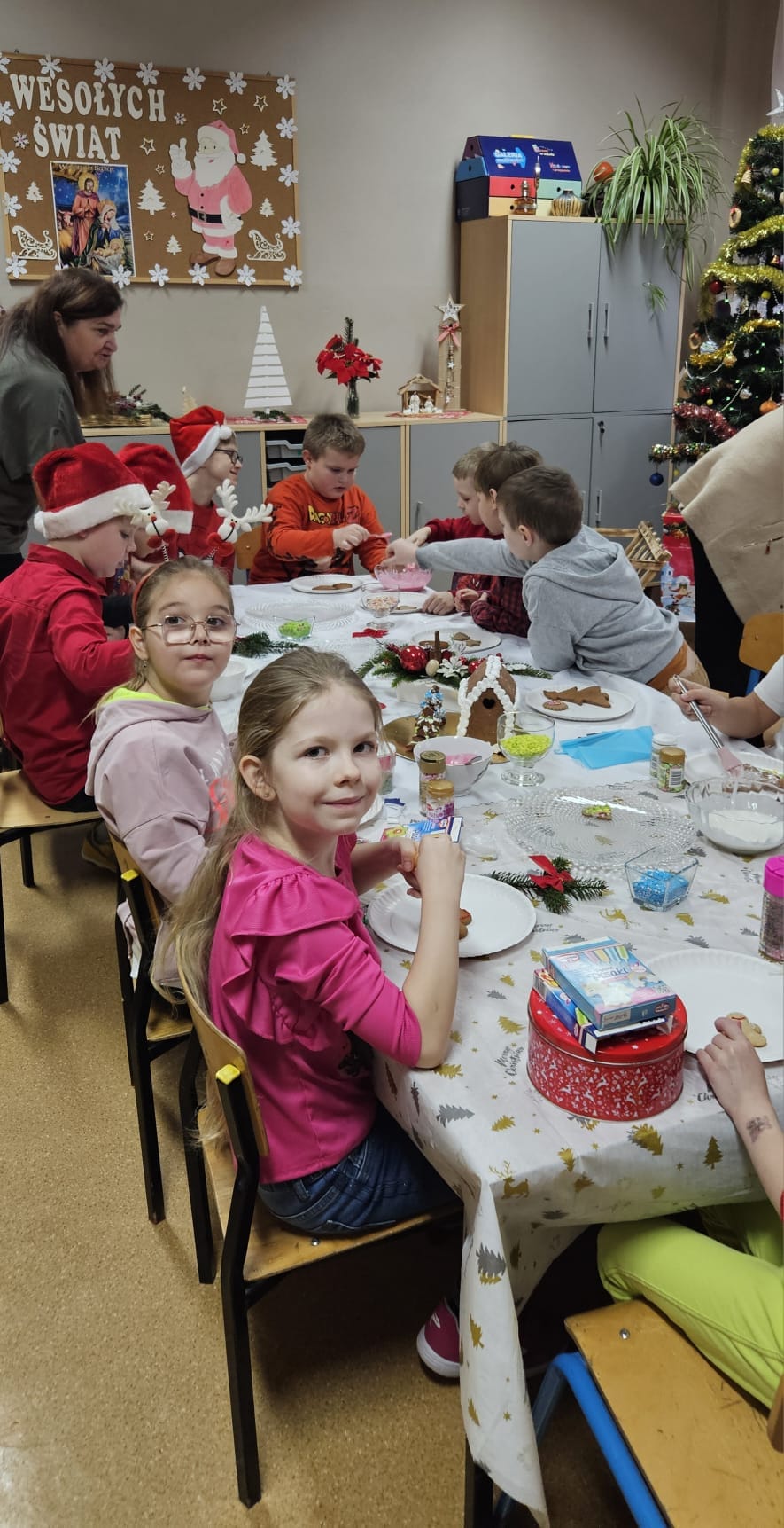 Święta tuż, tuż…Już od początku grudnia w naszej szkole uczniowie wyczuwają świąteczną atmosferę. Na korytarzu szkolnym i w każdej klasie pojawiły się przepięknie ubrane choinki oraz dekoracje świąteczne. Była wizyta Mikołaja. Przyszedł również czas na warsztaty dekorowania pierników. Dzieci z oddziału przedszkolnego i uczniowie z klas I-III nie mogły doczekać się tego dnia. Pierniki zostały wcześniej upieczone przez Mamy naszych uczniów, którym serdecznie dziękujemy. Dzieci z zapałem zabrały się do pracy. Słuchając świątecznej muzyki, dekorowały pierniczki różnokolorowymi lukrami, kolorowymi pisakami i barwnymi posypkami. Efekty pracy były przepiękne i oczywiście przepyszne. Piernikowy zawrót głowy sprawił naszym uczniom wiele radości i satysfakcji.