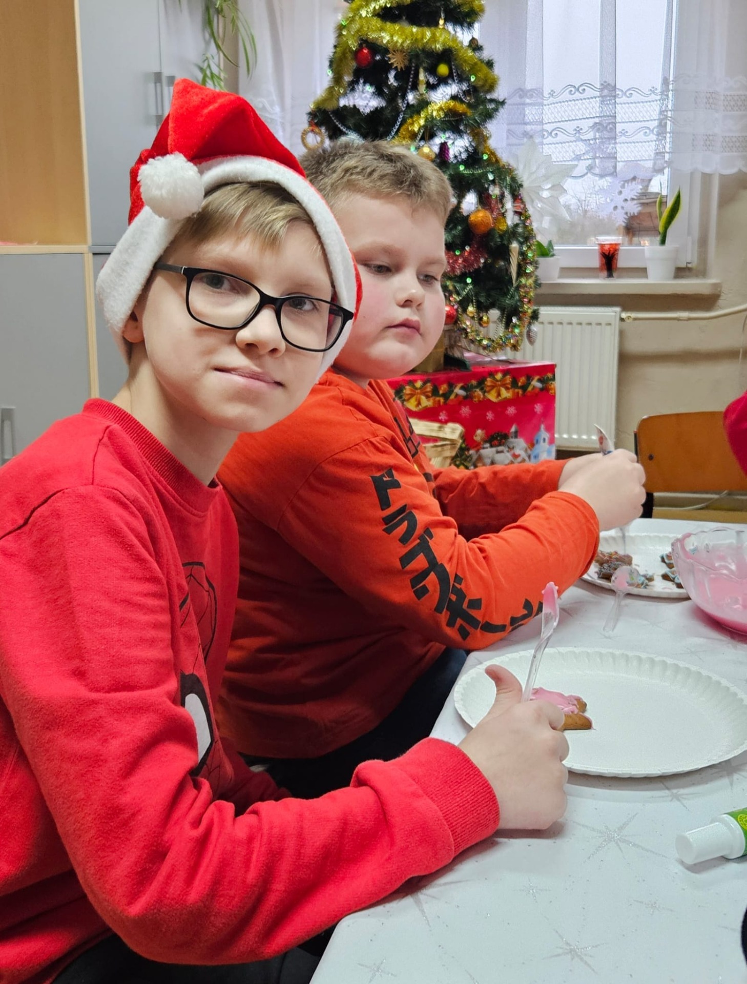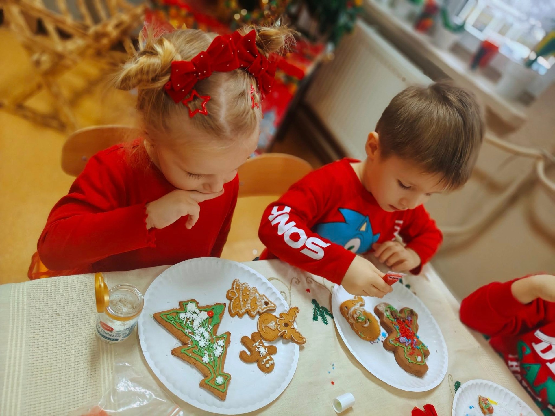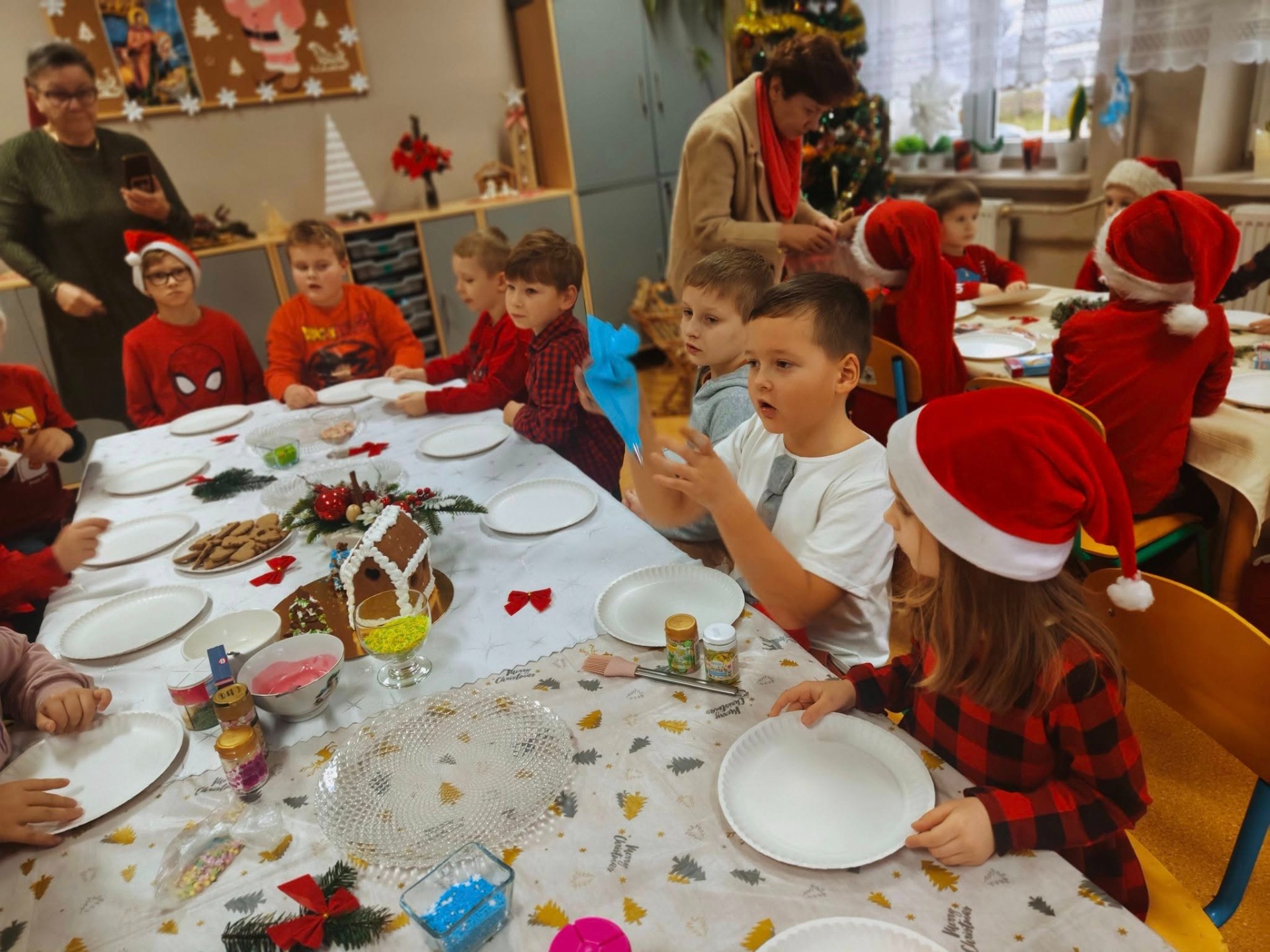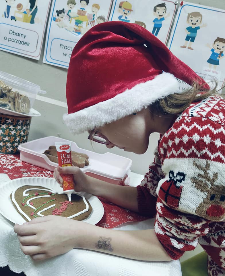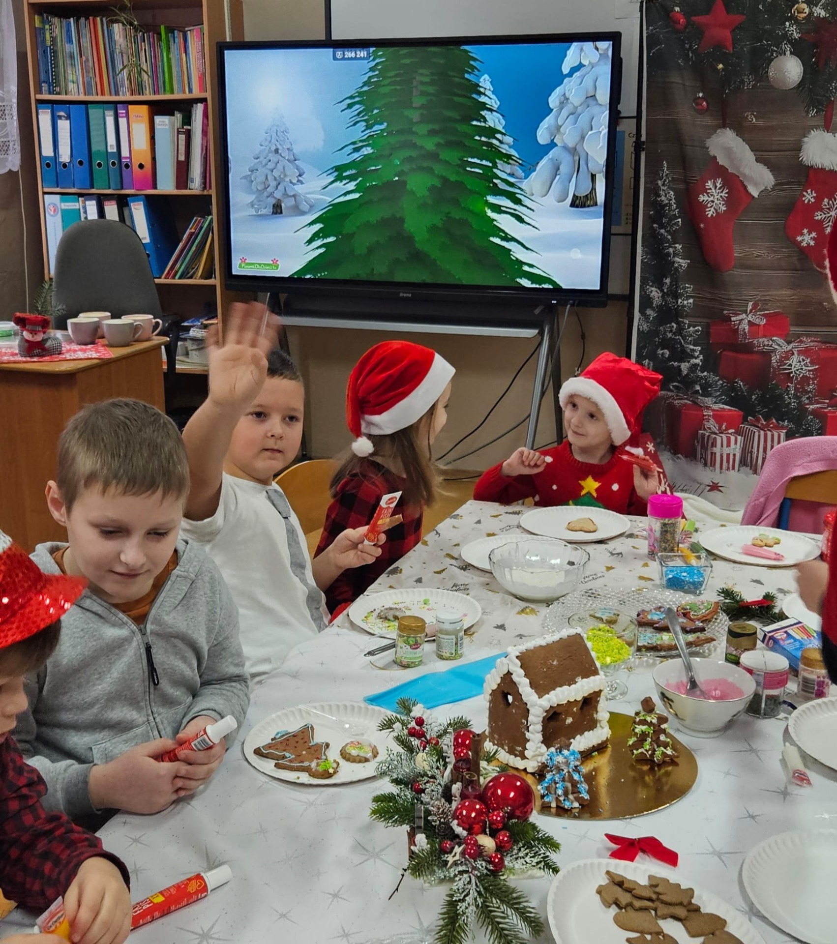 Święta tuż, tuż…Już od początku grudnia w naszej szkole uczniowie wyczuwają świąteczną atmosferę. Na korytarzu szkolnym i w każdej klasie pojawiły się przepięknie ubrane choinki oraz dekoracje świąteczne. Była wizyta Mikołaja. Przyszedł również czas na warsztaty dekorowania pierników. Dzieci z oddziału przedszkolnego i uczniowie z klas I-III nie mogły doczekać się tego dnia. Pierniki zostały wcześniej upieczone przez Mamy naszych uczniów, którym serdecznie dziękujemy. Dzieci z zapałem zabrały się do pracy. Słuchając świątecznej muzyki, dekorowały pierniczki różnokolorowymi lukrami, kolorowymi pisakami i barwnymi posypkami. Efekty pracy były przepiękne i oczywiście przepyszne. Piernikowy zawrót głowy sprawił naszym uczniom wiele radości i satysfakcji.
