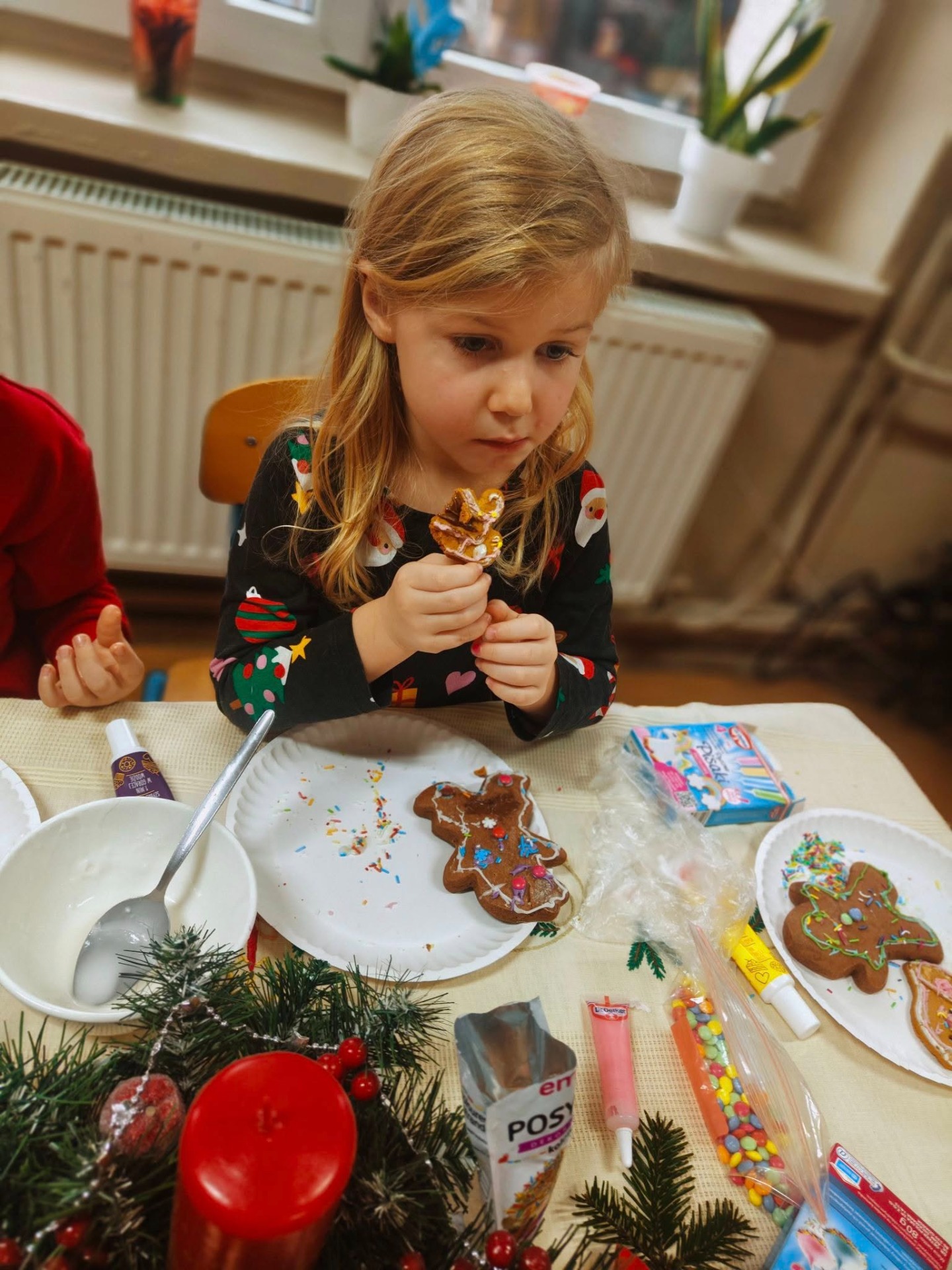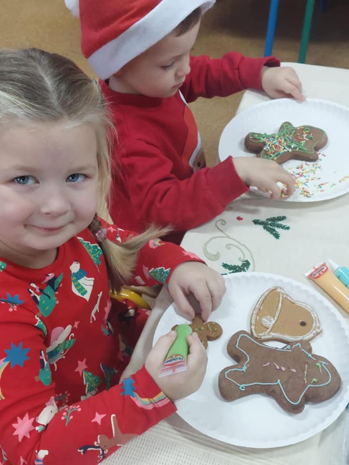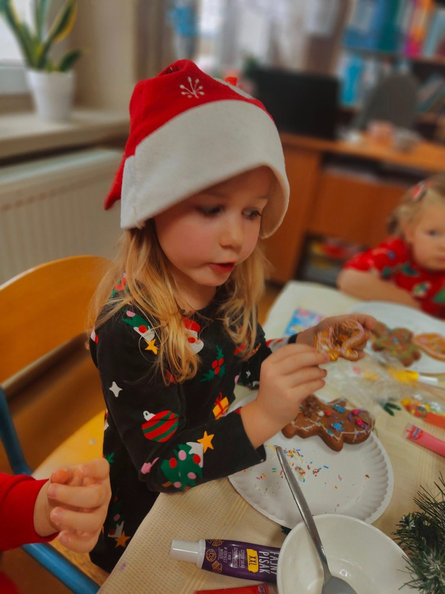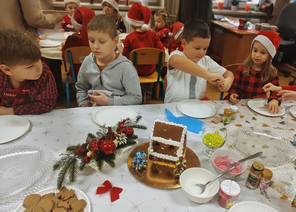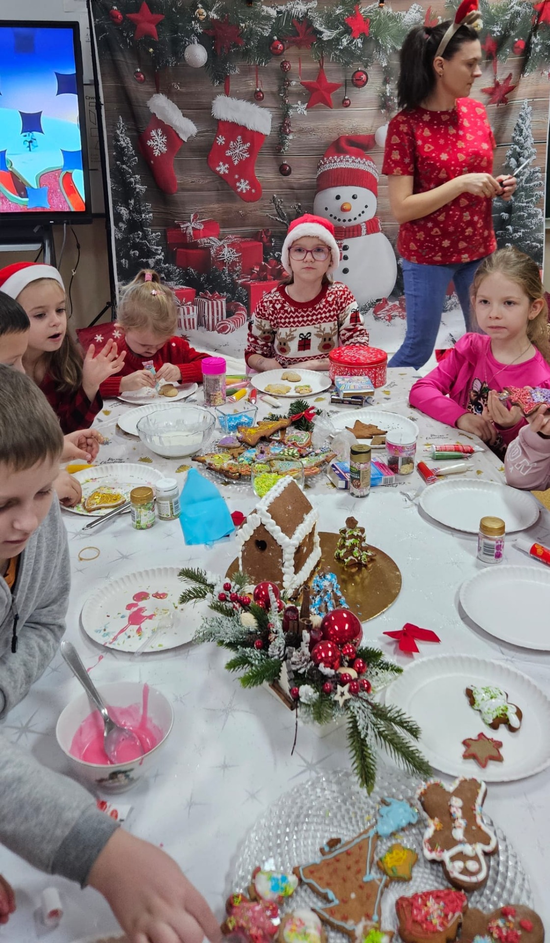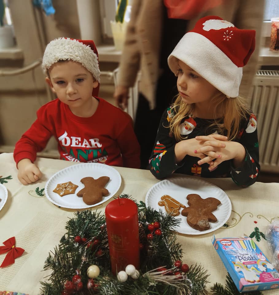 Święta tuż, tuż…Już od początku grudnia w naszej szkole uczniowie wyczuwają świąteczną atmosferę. Na korytarzu szkolnym i w każdej klasie pojawiły się przepięknie ubrane choinki oraz dekoracje świąteczne. Była wizyta Mikołaja. Przyszedł również czas na warsztaty dekorowania pierników. Dzieci z oddziału przedszkolnego i uczniowie z klas I-III nie mogły doczekać się tego dnia. Pierniki zostały wcześniej upieczone przez Mamy naszych uczniów, którym serdecznie dziękujemy. Dzieci z zapałem zabrały się do pracy. Słuchając świątecznej muzyki, dekorowały pierniczki różnokolorowymi lukrami, kolorowymi pisakami i barwnymi posypkami. Efekty pracy były przepiękne i oczywiście przepyszne. Piernikowy zawrót głowy sprawił naszym uczniom wiele radości i satysfakcji.