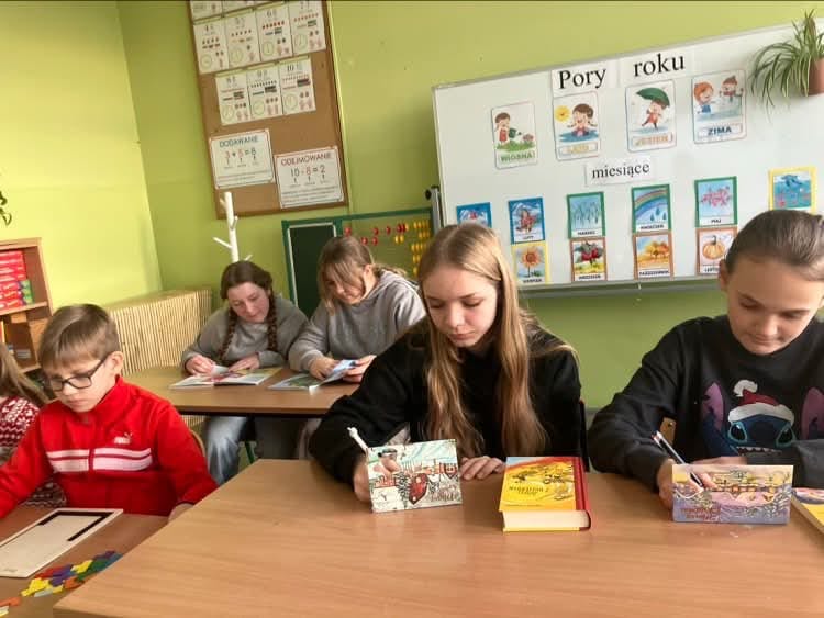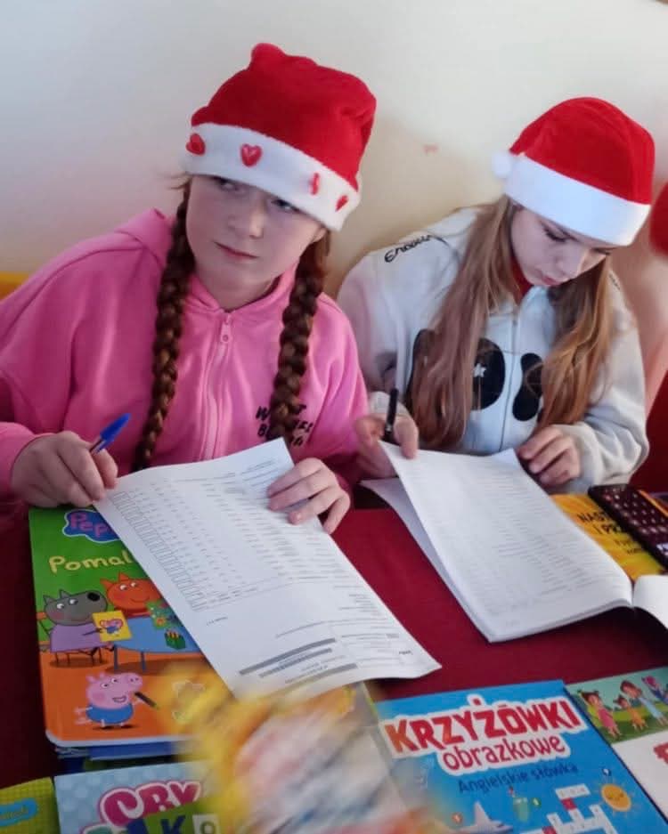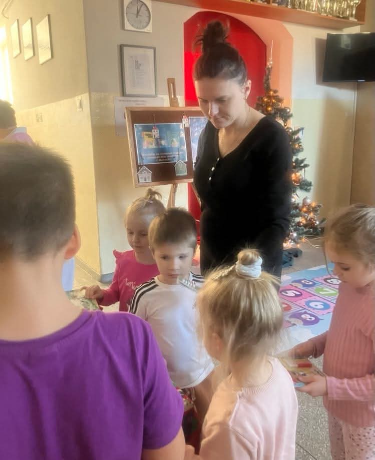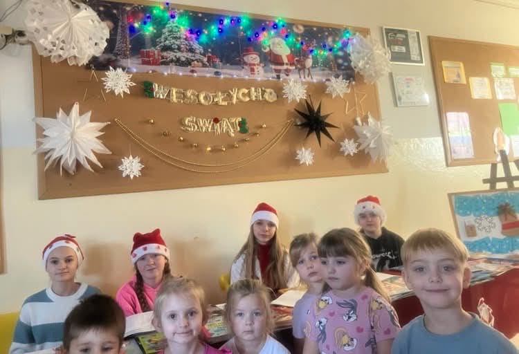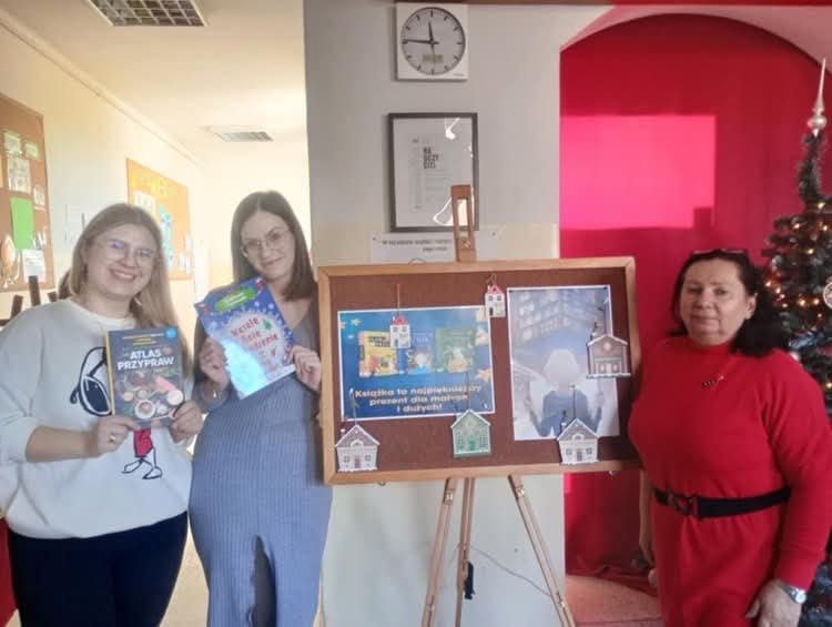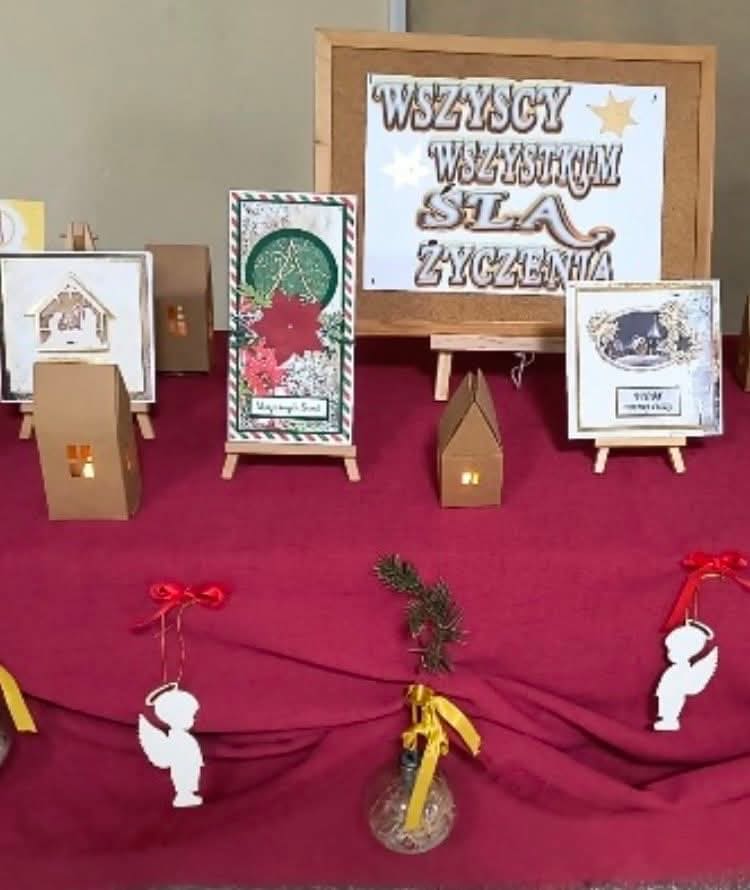 Dzięki wolontariuszkom: Natalii z klasy VII oraz Zuzi, Mai i Julki z klasy VI ze sprzedaży książek uzyskaliśmy rabat i zakupimy prezent dla Jacusia. W związku z tym, że Święta tuż ,tuż - dziewczyny zadbały o odpowiedni przedświąteczny nastrój. Zredagowały życzenia świąteczne, a następnie wpisały do wcześniej wykonanych kartek, prezentując je na szkolnym korytarzu. Hasło wystawy to ,,WSZYSCY WSZYSTKIM ŚLĄ ŻYCZENIA ".