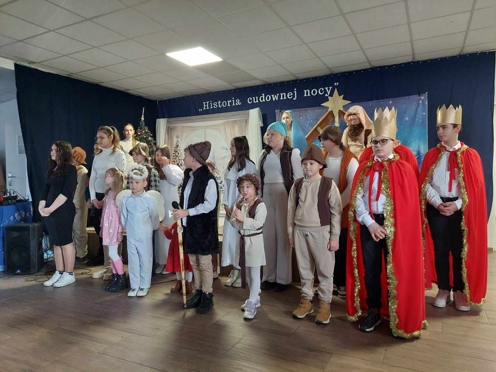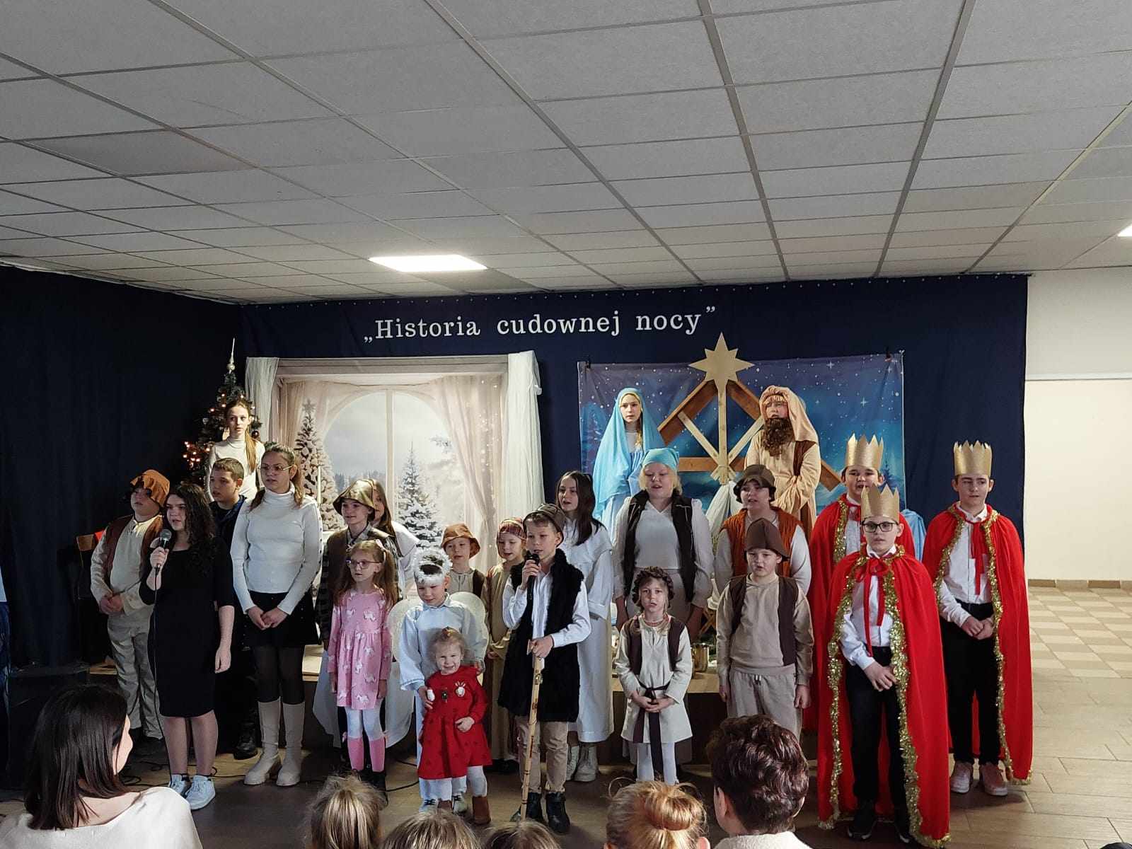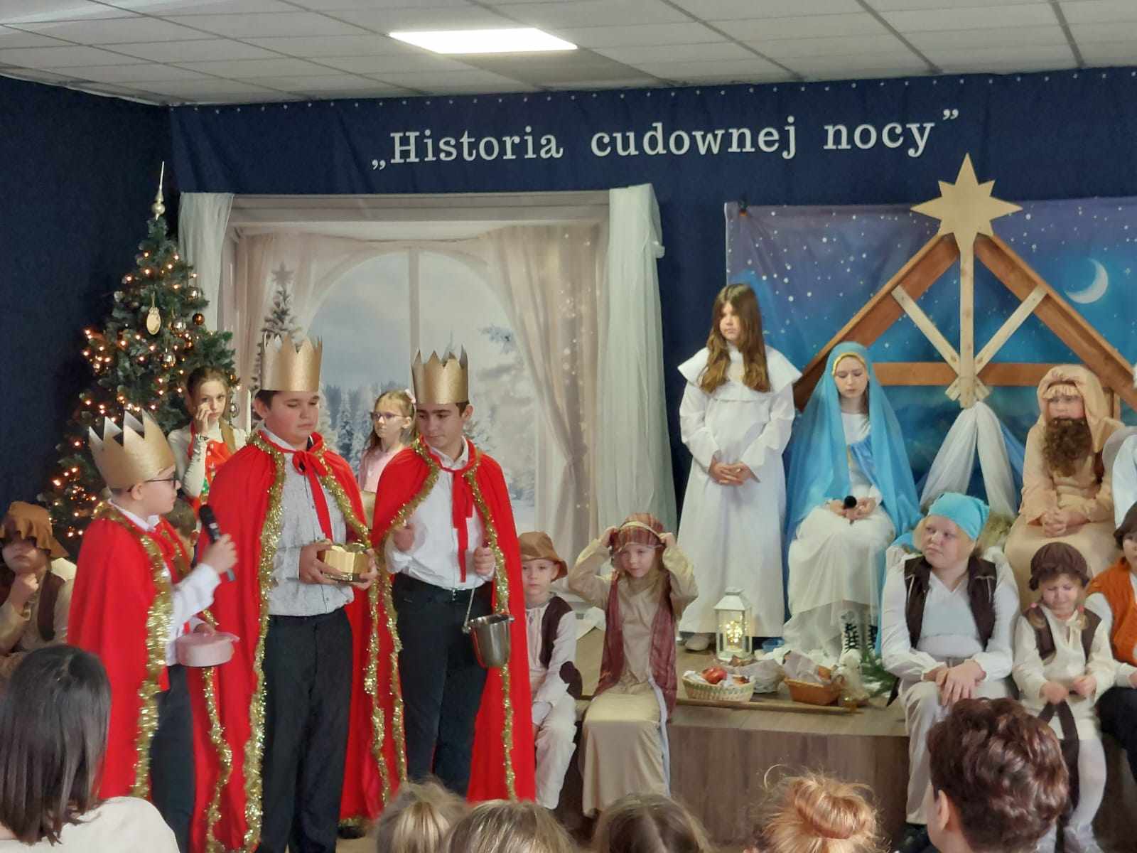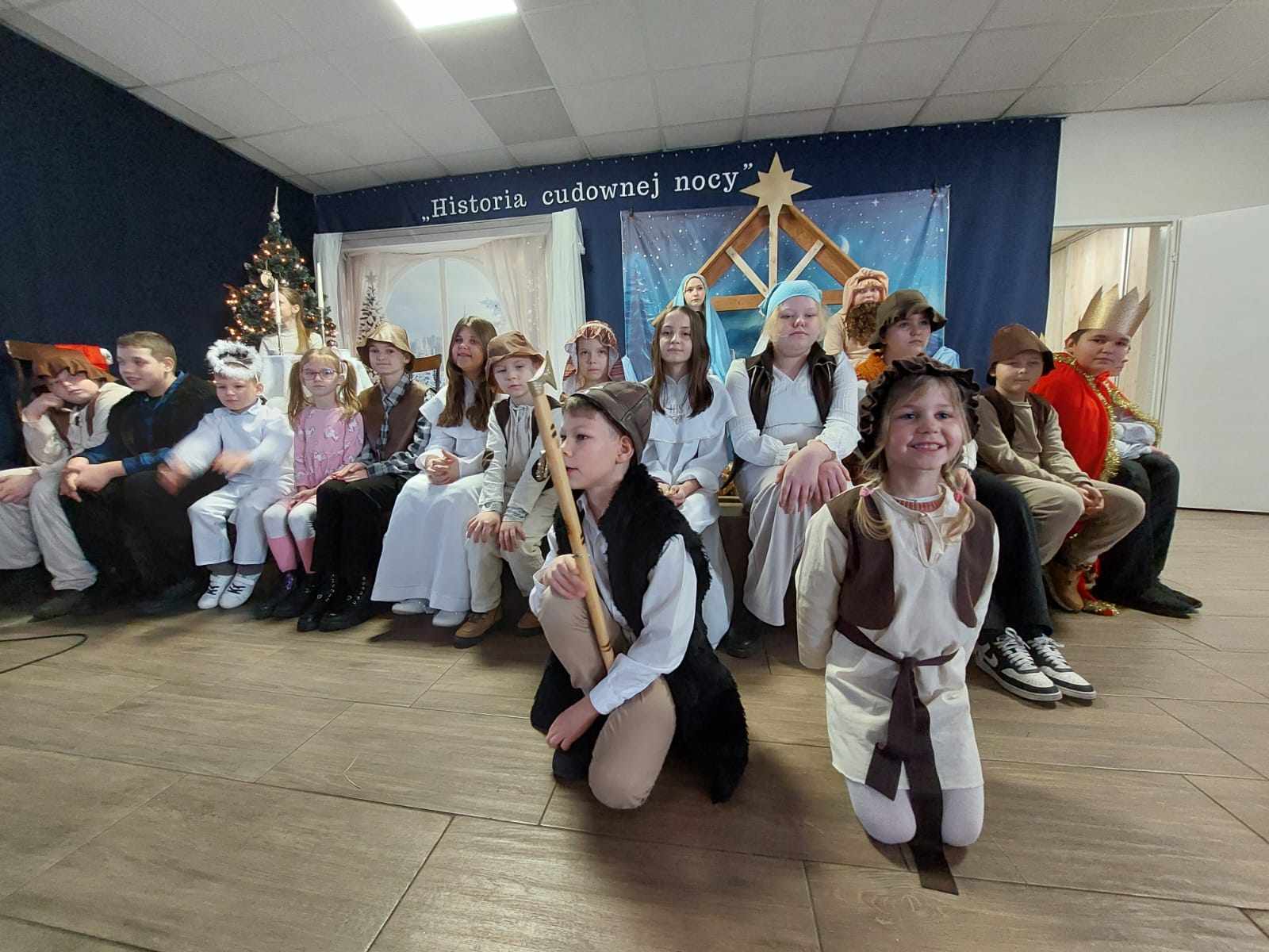 W dniu 20.12.2024 r. uczniowie naszej szkoły mieli okazję zaprezentować swoje umiejętności, zarówno wokalne jak i aktorskie, w pięknym przedstawieniu opowiadającym o pochodzeniu święta, jakim jest Boże Narodzenie. Jasełka zatytułowane „Historia cudownej nocy” i pojawiające się w nich pastorałki wprowadziły nas w niepowtarzalny klimat nadchodzących świąt. W remizie OSP w Wakach zebrali się zaproszeni goście, rodzice i dziadkowie uczniów, a także wszyscy nauczyciele wraz z panią Dyrektor, aby wspólnie cieszyć się zaprezentowanym widowiskiem. Towarzyszył nam cały wachlarz emocji – od uśmiechu po nostalgię i wzruszenie. Serdeczne podziękowania składamy wszystkim, którzy przybyli na jasełka i pomogli w organizacji tego przedsięwzięcia oraz uczniom tak starannie i z oddaniem odgrywającym swoje role. Życzymy wszystkim Wesołych Świąt Bożego Narodzenia oraz Szczęśliwego Nowego 2025 Roku!