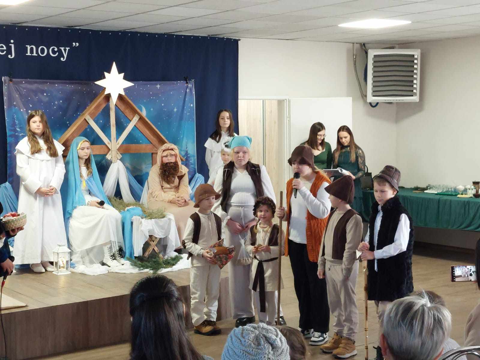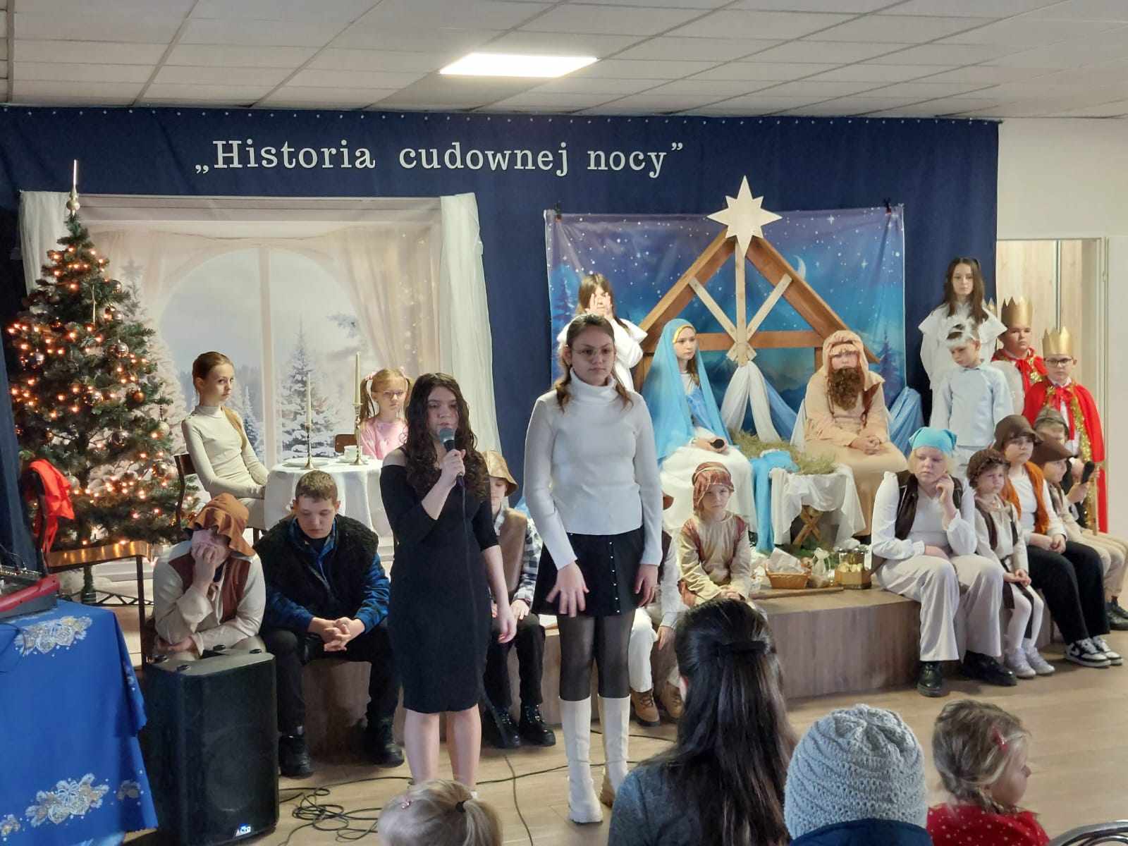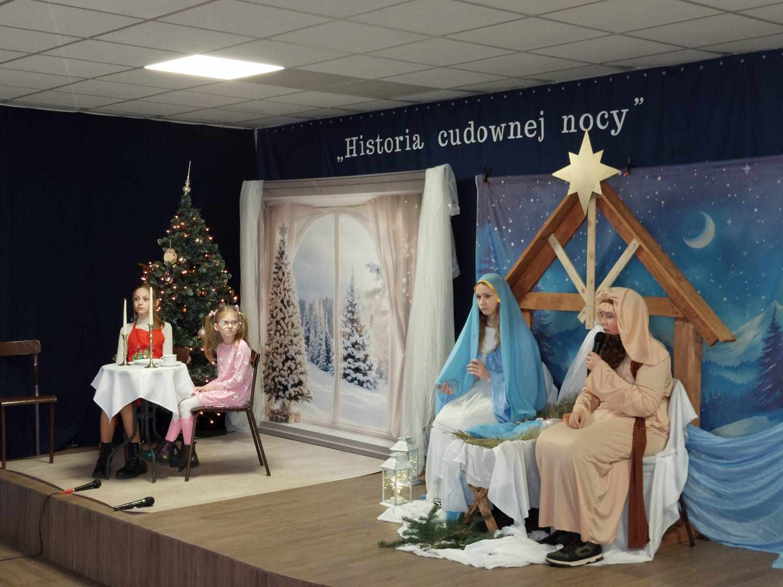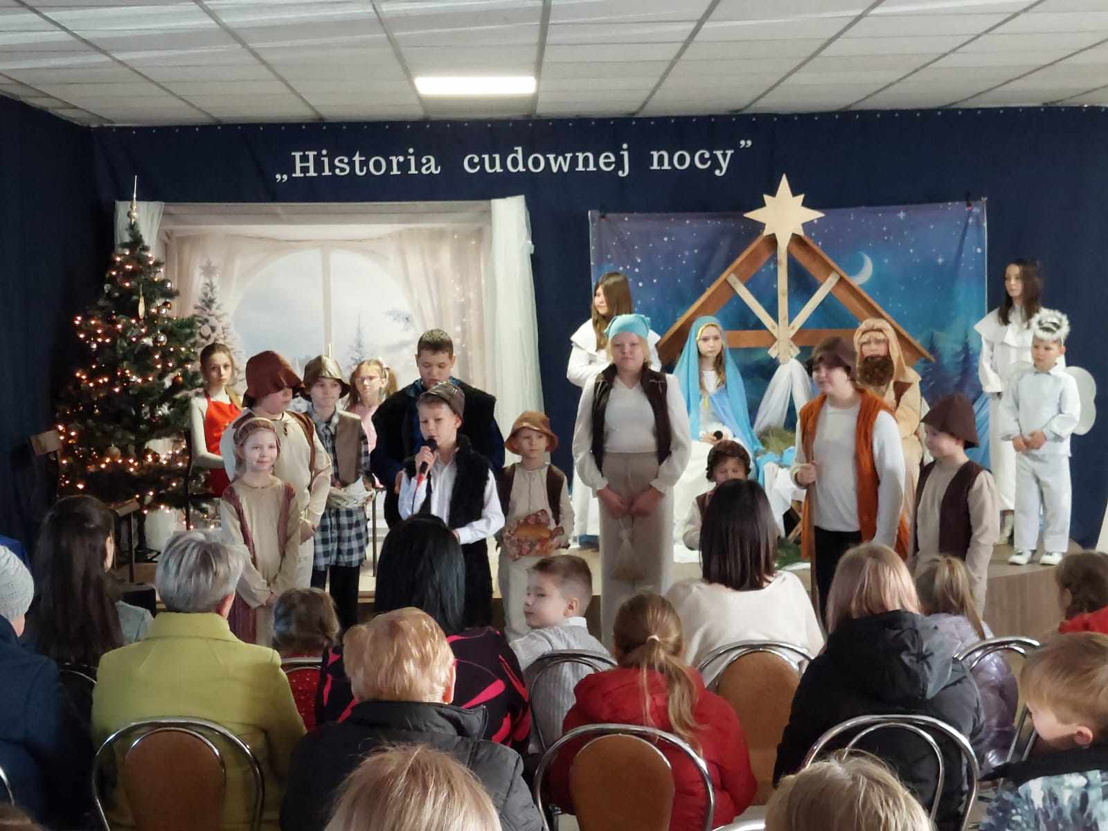 W dniu 20.12.2024 r. uczniowie naszej szkoły mieli okazję zaprezentować swoje umiejętności, zarówno wokalne jak i aktorskie, w pięknym przedstawieniu opowiadającym o pochodzeniu święta, jakim jest Boże Narodzenie. Jasełka zatytułowane „Historia cudownej nocy” i pojawiające się w nich pastorałki wprowadziły nas w niepowtarzalny klimat nadchodzących świąt. W remizie OSP w Wakach zebrali się zaproszeni goście, rodzice i dziadkowie uczniów, a także wszyscy nauczyciele wraz z panią Dyrektor, aby wspólnie cieszyć się zaprezentowanym widowiskiem. Towarzyszył nam cały wachlarz emocji – od uśmiechu po nostalgię i wzruszenie. Serdeczne podziękowania składamy wszystkim, którzy przybyli na jasełka i pomogli w organizacji tego przedsięwzięcia oraz uczniom tak starannie i z oddaniem odgrywającym swoje role. Życzymy wszystkim Wesołych Świąt Bożego Narodzenia oraz Szczęśliwego Nowego 2025 Roku!