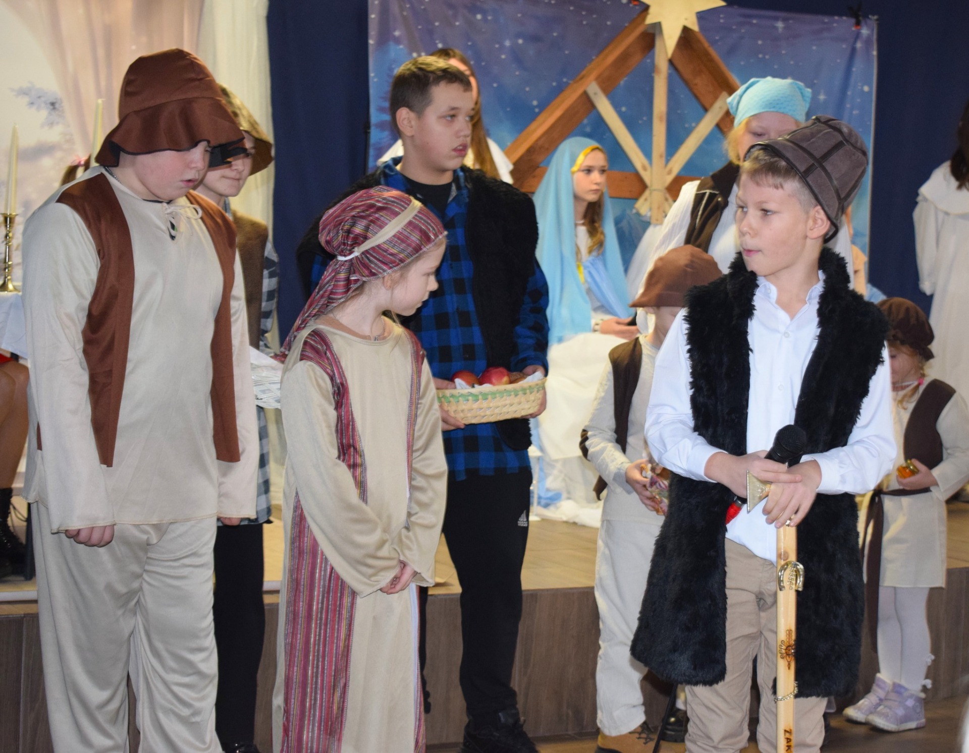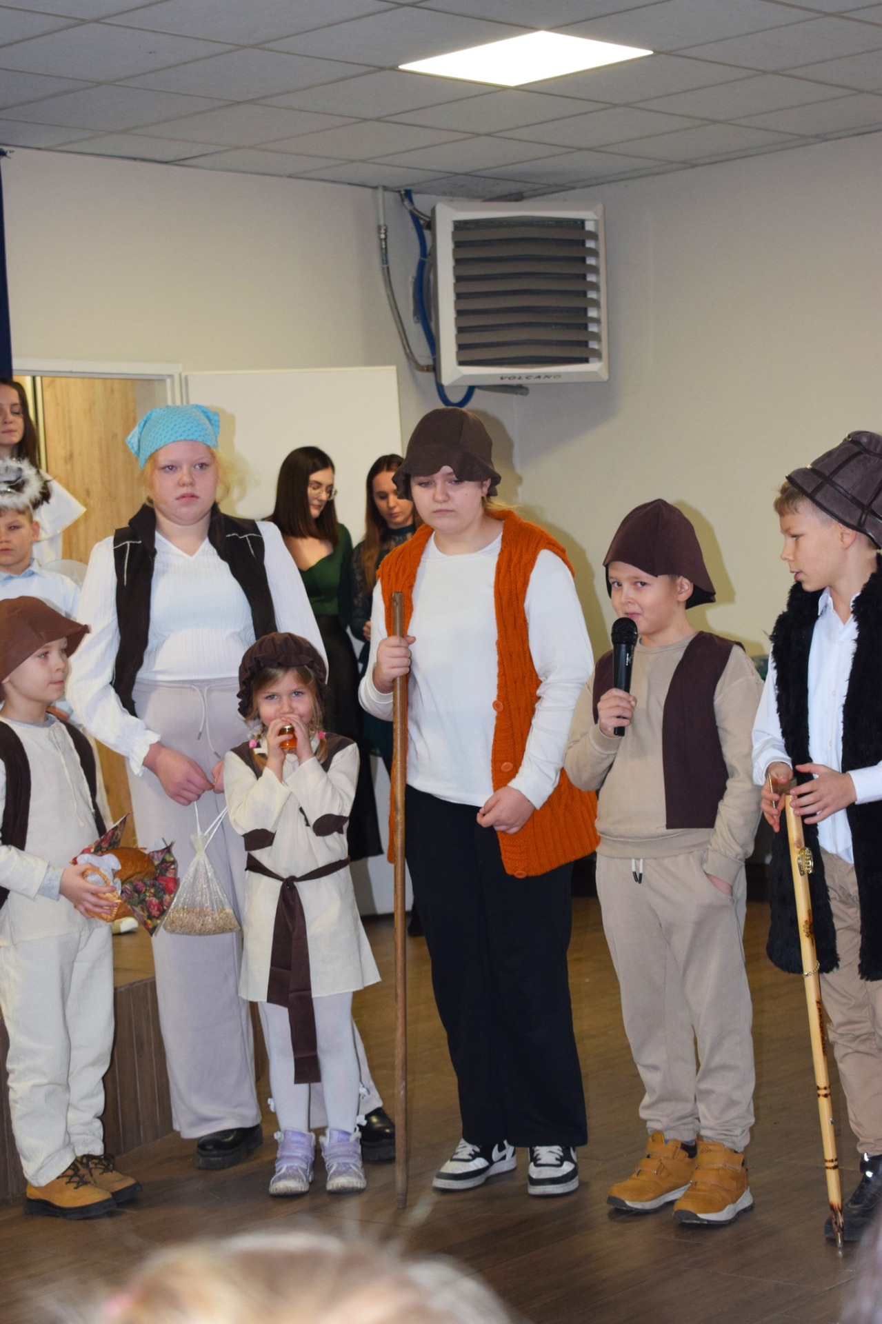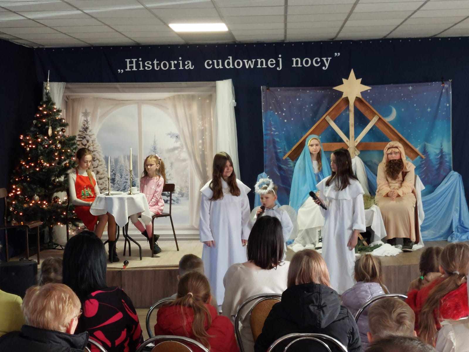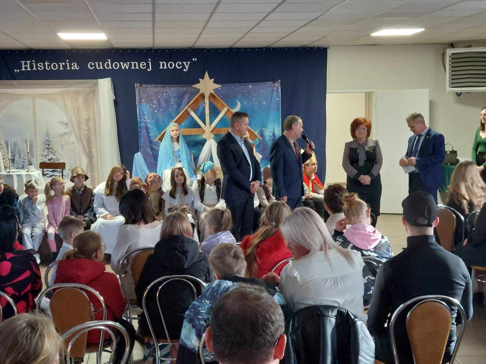 W dniu 20.12.2024 r. uczniowie naszej szkoły mieli okazję zaprezentować swoje umiejętności, zarówno wokalne jak i aktorskie, w pięknym przedstawieniu opowiadającym o pochodzeniu święta, jakim jest Boże Narodzenie. Jasełka zatytułowane „Historia cudownej nocy” i pojawiające się w nich pastorałki wprowadziły nas w niepowtarzalny klimat nadchodzących świąt. W remizie OSP w Wakach zebrali się zaproszeni goście, rodzice i dziadkowie uczniów, a także wszyscy nauczyciele wraz z panią Dyrektor, aby wspólnie cieszyć się zaprezentowanym widowiskiem. Towarzyszył nam cały wachlarz emocji – od uśmiechu po nostalgię i wzruszenie. Serdeczne podziękowania składamy wszystkim, którzy przybyli na jasełka i pomogli w organizacji tego przedsięwzięcia oraz uczniom tak starannie i z oddaniem odgrywającym swoje role. Życzymy wszystkim Wesołych Świąt Bożego Narodzenia oraz Szczęśliwego Nowego 2025 Roku!
