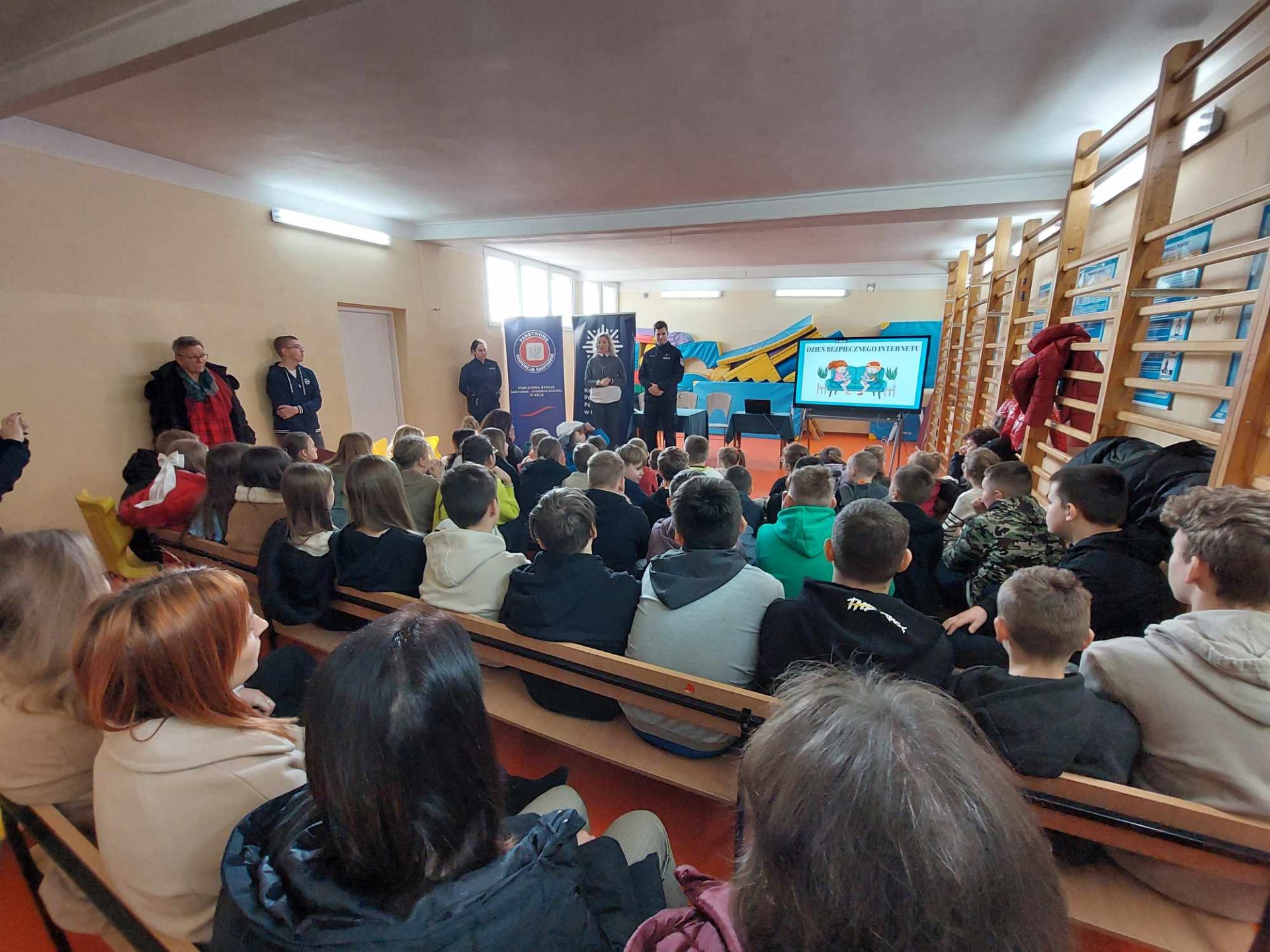 Zaproszeni goście przybliżyli uczniom zasady bezpiecznego „poruszania się w sieci”, przestrzegając przed zagrożeniami czyhającymi w wirtualnym świecie, takimi jak: kradzież danych osobowych, oszustwa internetowe, hejt czy mowa nienawiści.