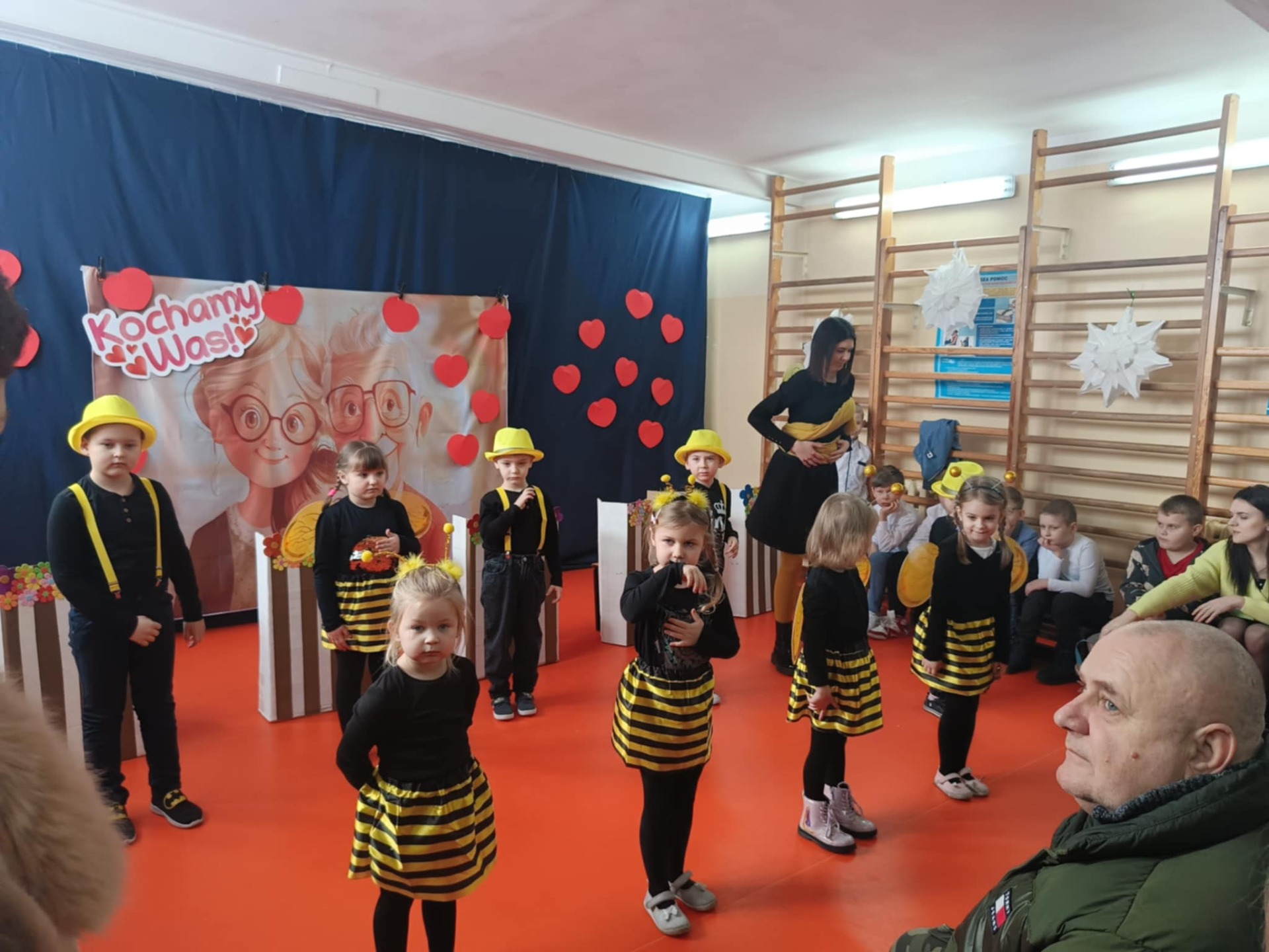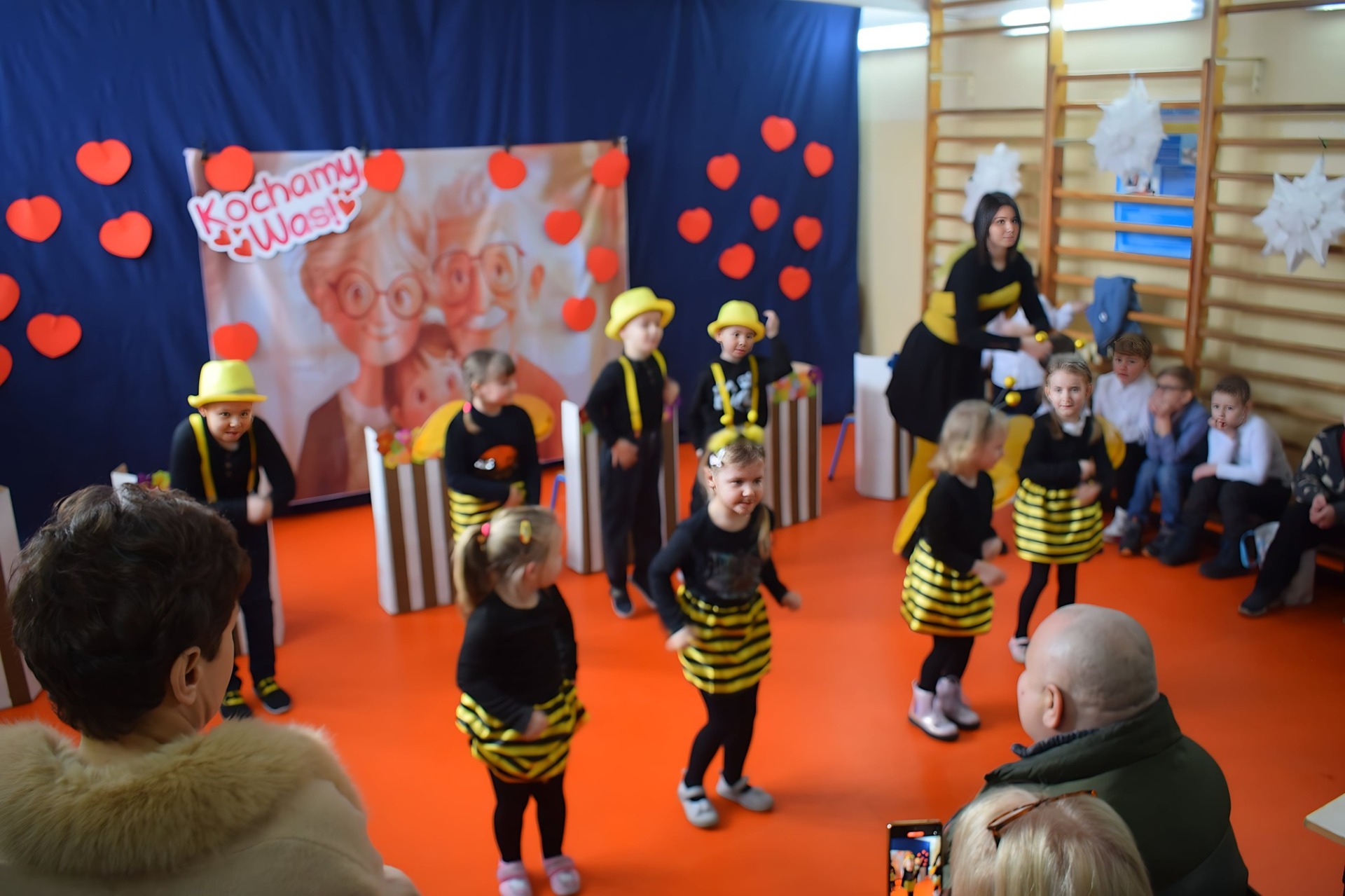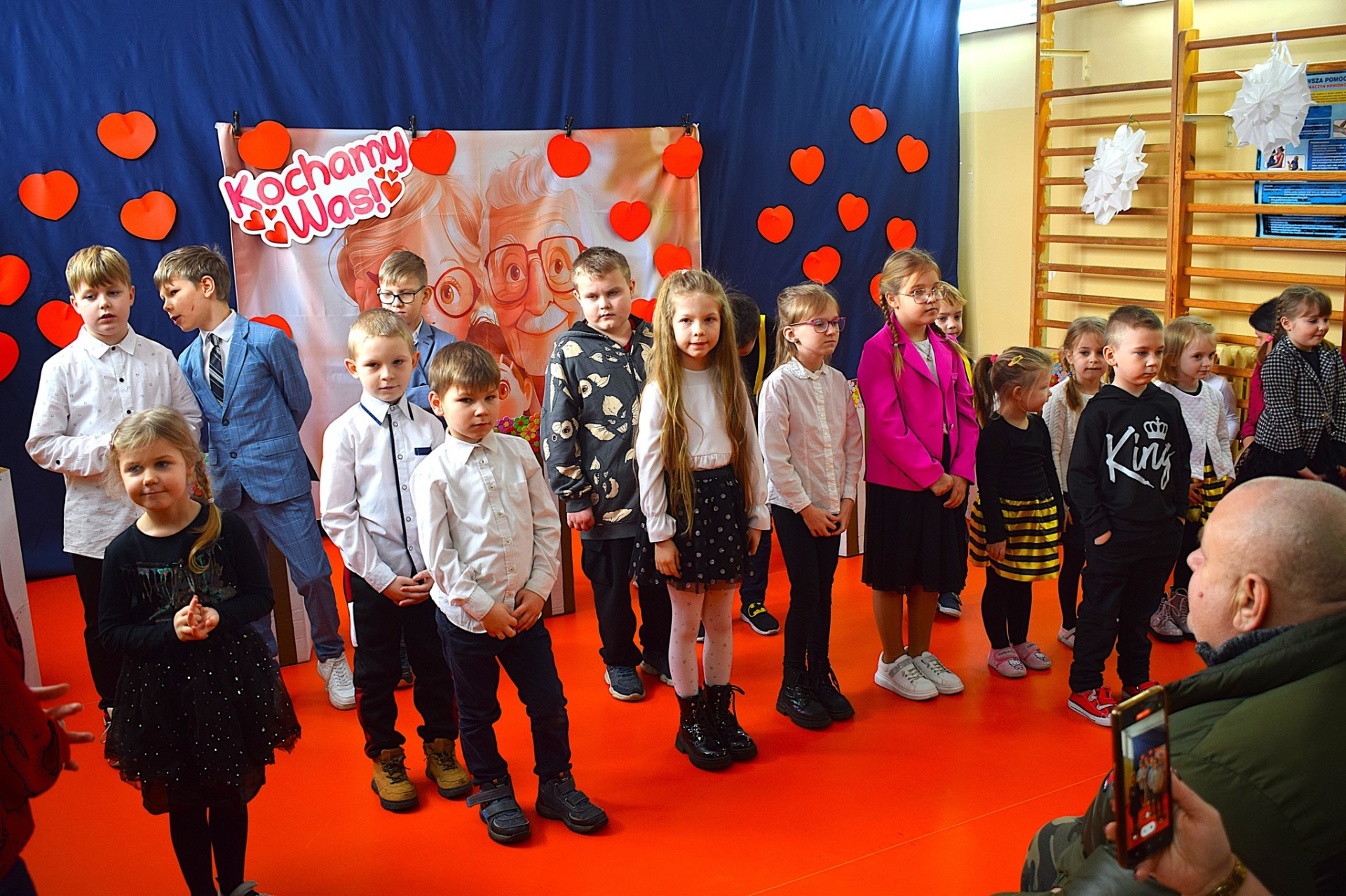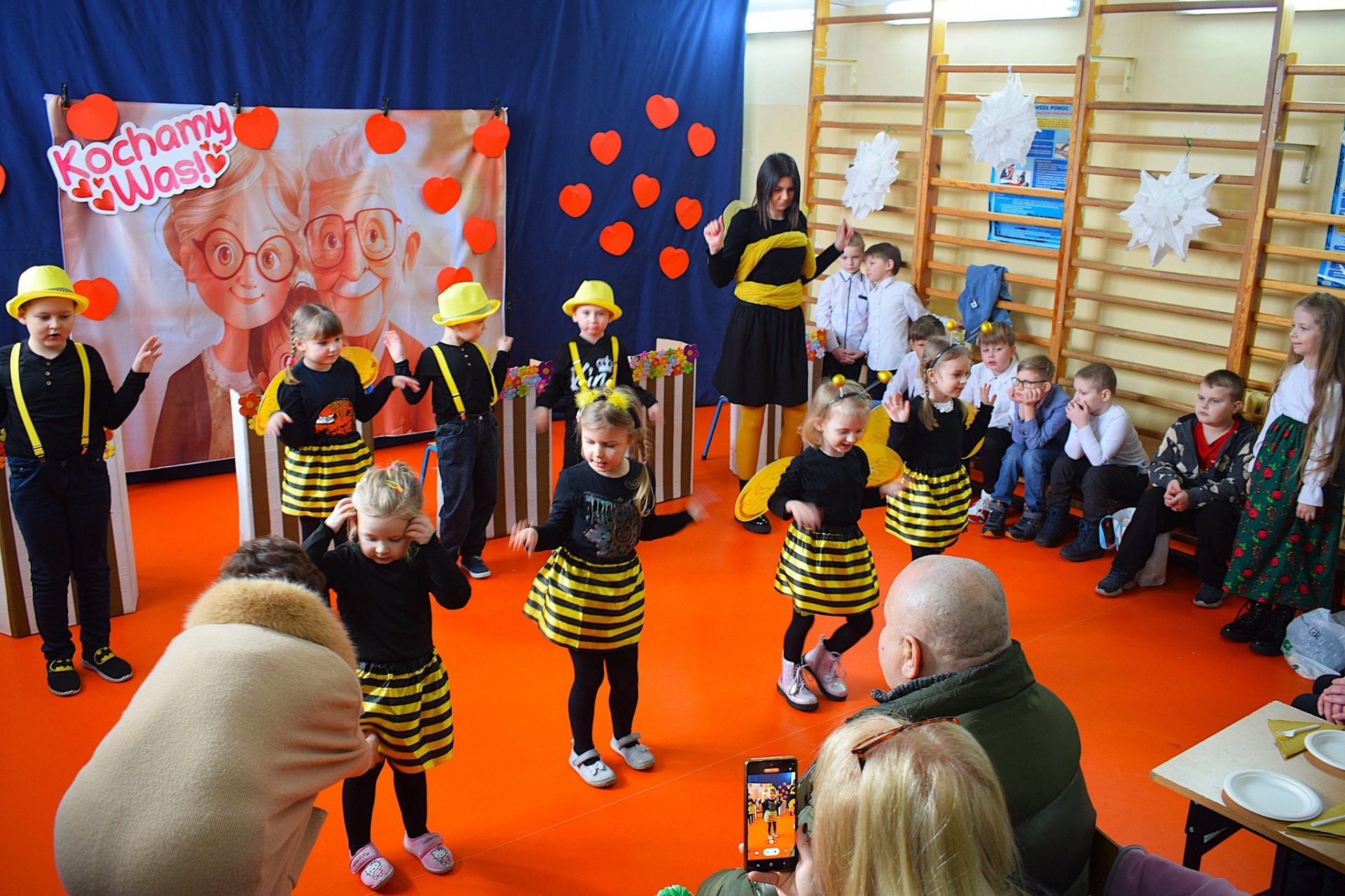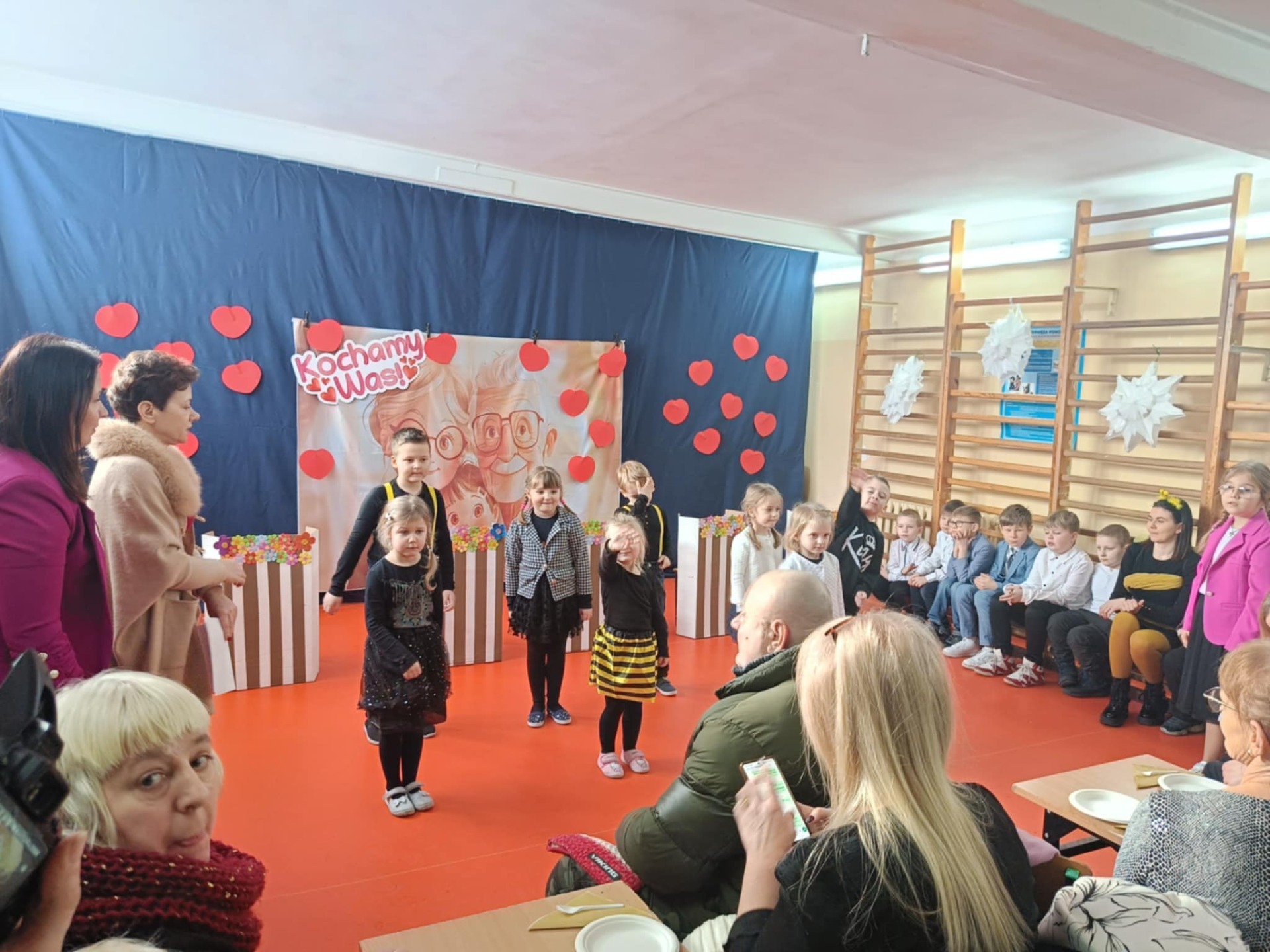 Nasi najmłodsi uczniowie przygotowali część artystyczną złożoną z piosenek i tańców. Szczęśliwi Dziadkowie z radością przyglądali się swoim wnuczętom. Uśmiechom nie było końca. Zebrani goście nagrodzili gromkimi brawami występy swoich pociech. Na zakończenie wnuki obdarowały Dziadków i Babcie drobnymi upominkami oraz zaprosiły na słodki poczęstunek.
