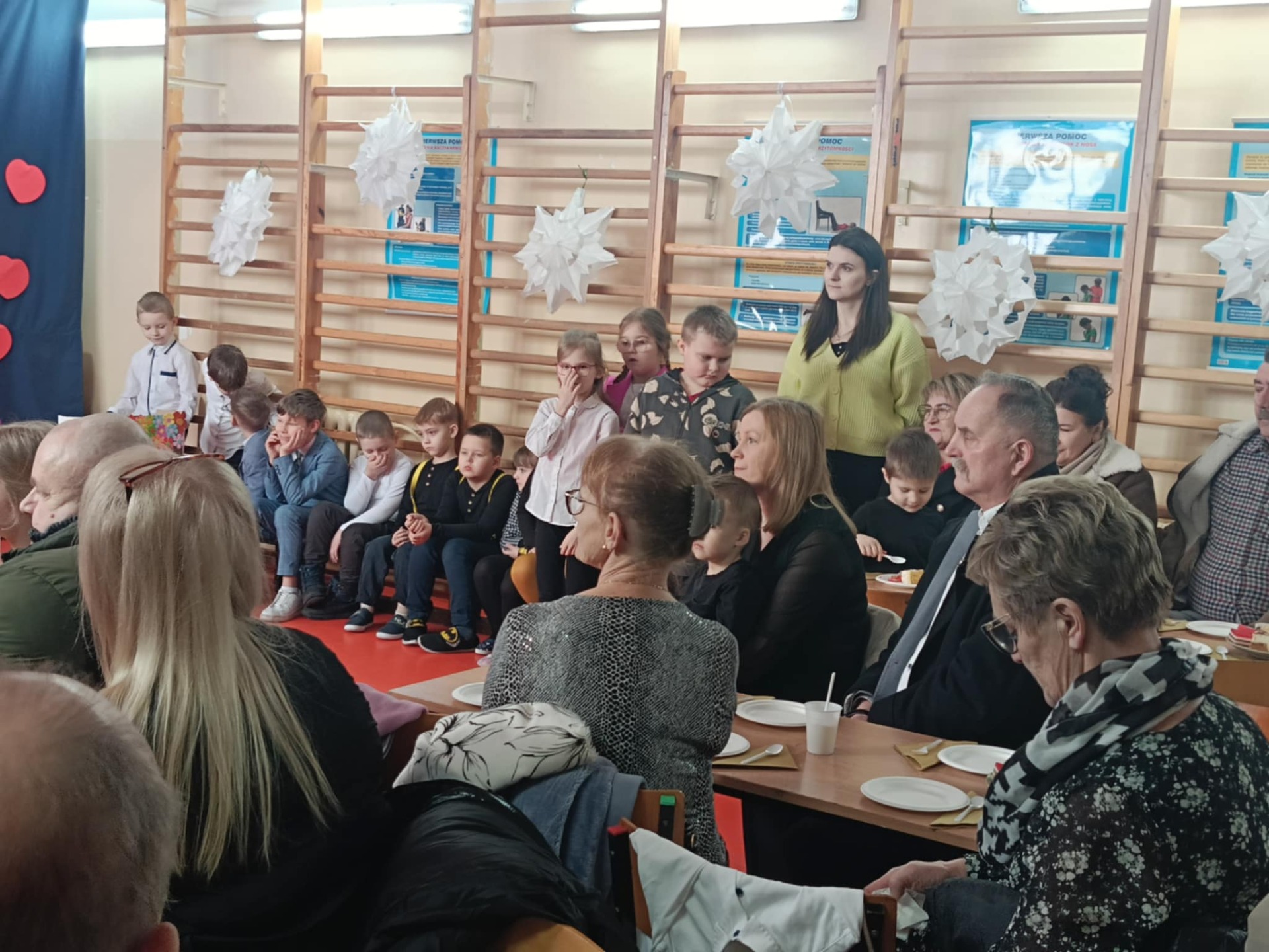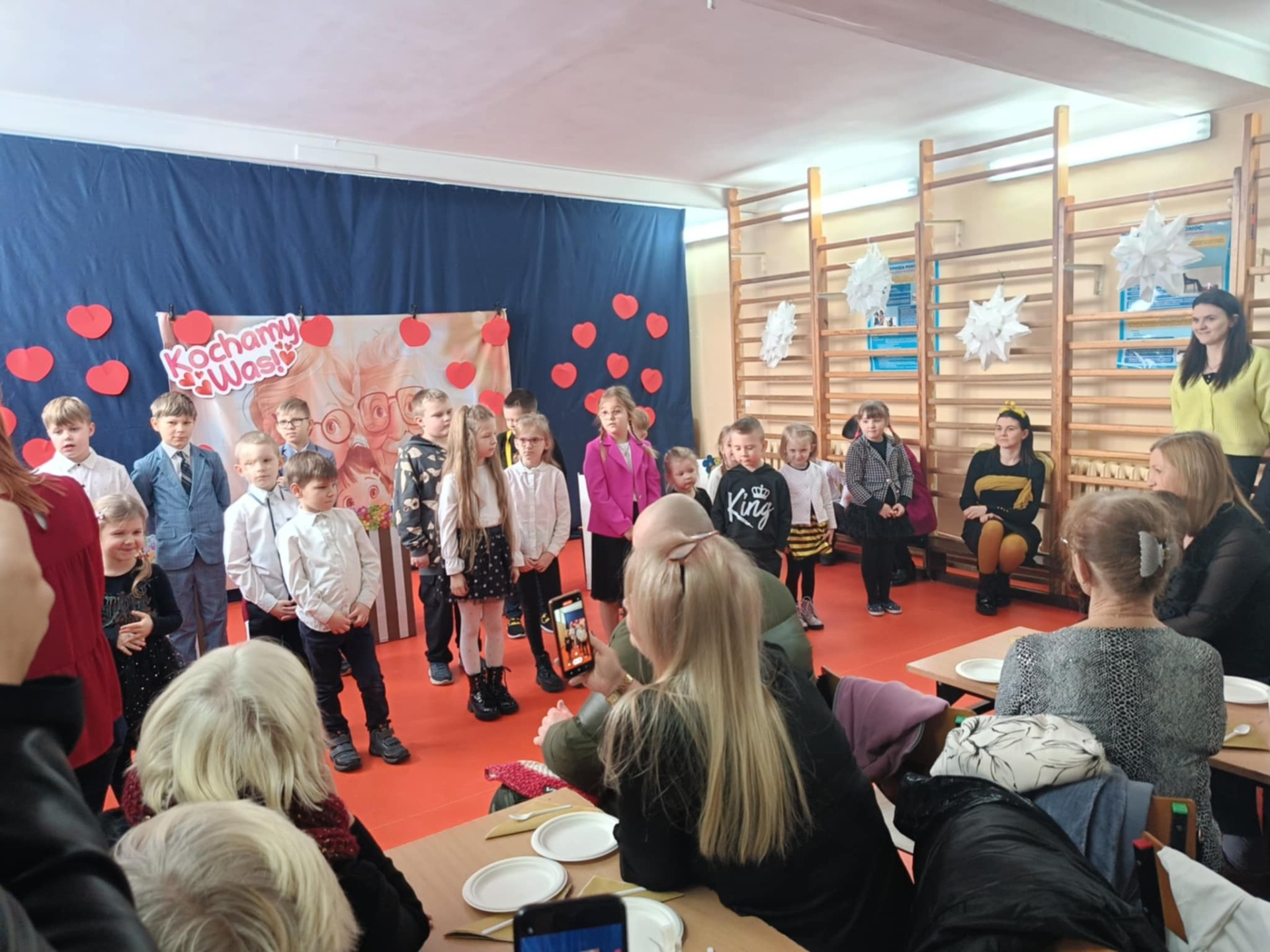 14 lutego 2025 r w naszej szkole odbyło się spotkanie z okazji Dnia Babci i Dziadka pod hasłem "Kochamy Was".