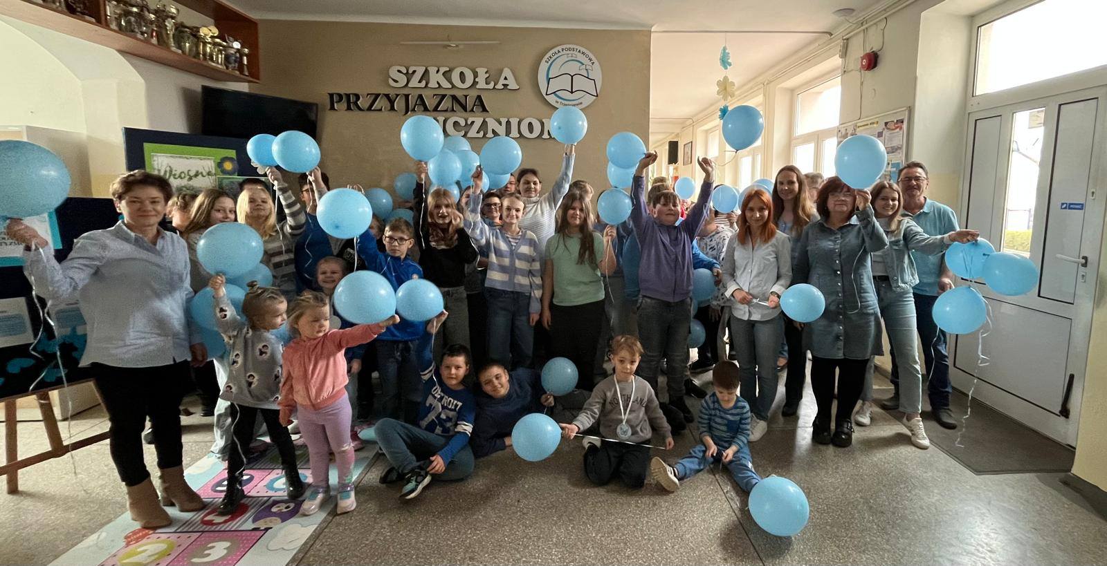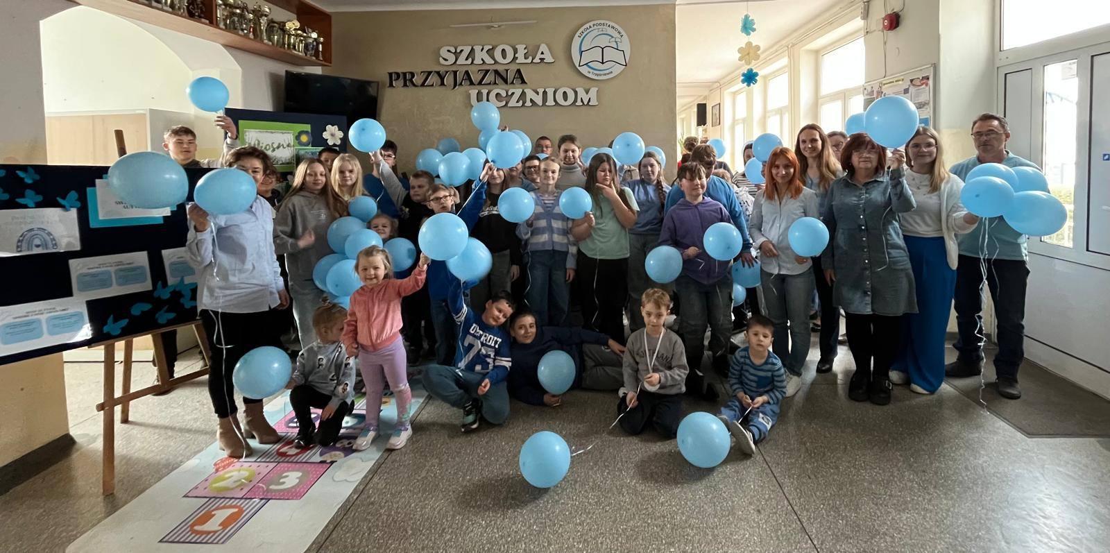 W naszej szkole obchodziliśmy Dzień Świadomości Autyzmu w wyjątkowy sposób. Dzieci z oddziału przedszkolnego oraz klasy 1-3 obejrzały film edukacyjny, kolorowały tematyczne obrazki i otrzymały ordery uczestnictwa. Starsi uczniowie z klas 4-8 również obejrzeli film, a następnie wzięli udział w quizie wiedzy o autyzmie oraz prowadzili na ten temat dyskusję. Cała społeczność szkolna – uczniowie i nauczyciele – uczestniczyła we wspólnym przemarszu z niebieskimi balonami, symbolizującymi solidarność z osobami w spektrum autyzmu. Dodatkowo powstał film edukacyjny, który pomaga poszerzyć świadomość na temat tego zaburzenia.